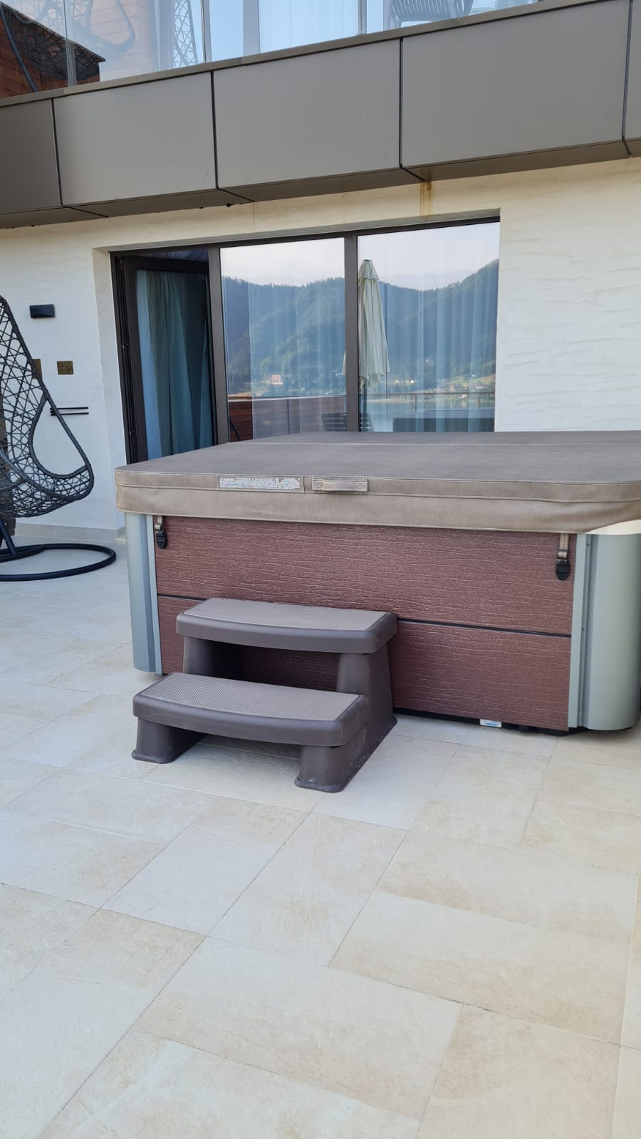 La ultimul etaj sunt amenajate două apartamente. Oriunde v-ați caza, priveliștea de-a dreptul magică vă este garantată. Chiar și când faceți sport puteți admira lacul Colibița, aparatele de fitness find amplasate și ele afară.