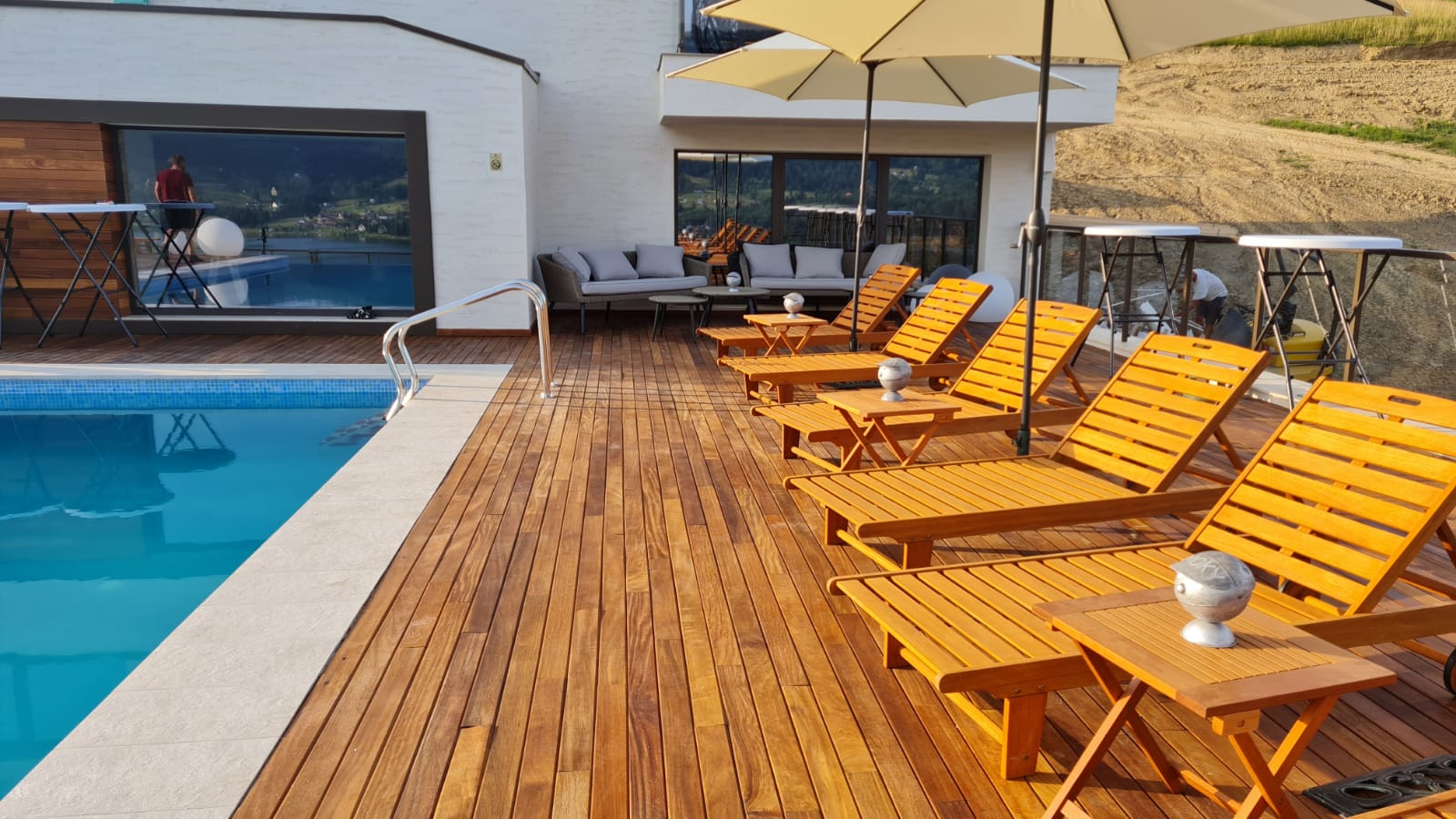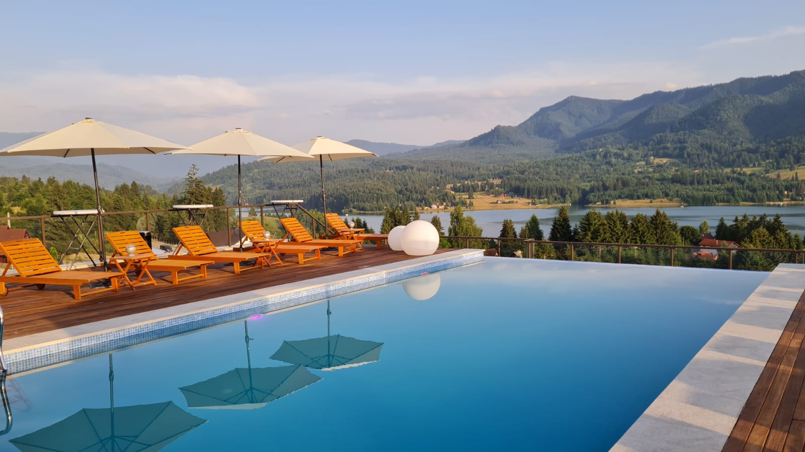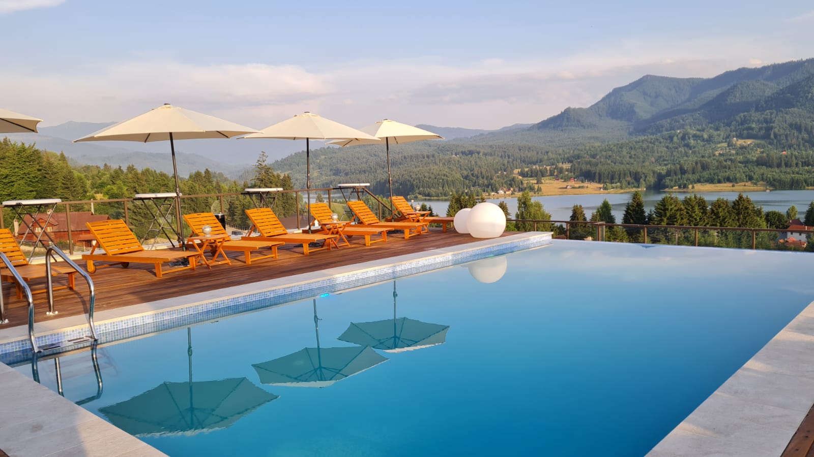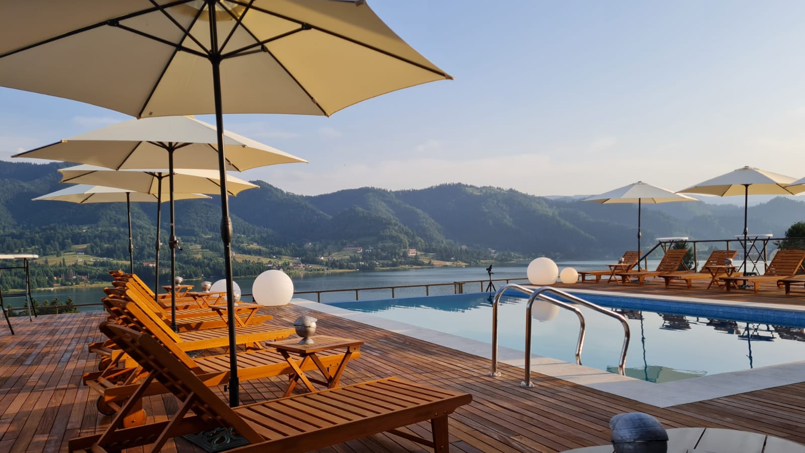 Cel mai spectaculos este etajul V, unde este una dintre cele mai spectaculoase pisicine în aer liber întâlnite în județul nostru. Poziționarea acesteia îți permite să admiri lacul fie din apă, fie de pe șezlonguri. Piscina tip Infinity Pool este una dintre atracțiile resortului, fiind astfel concepută încât să poată fi utilizată tot timpul anului.