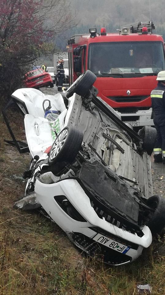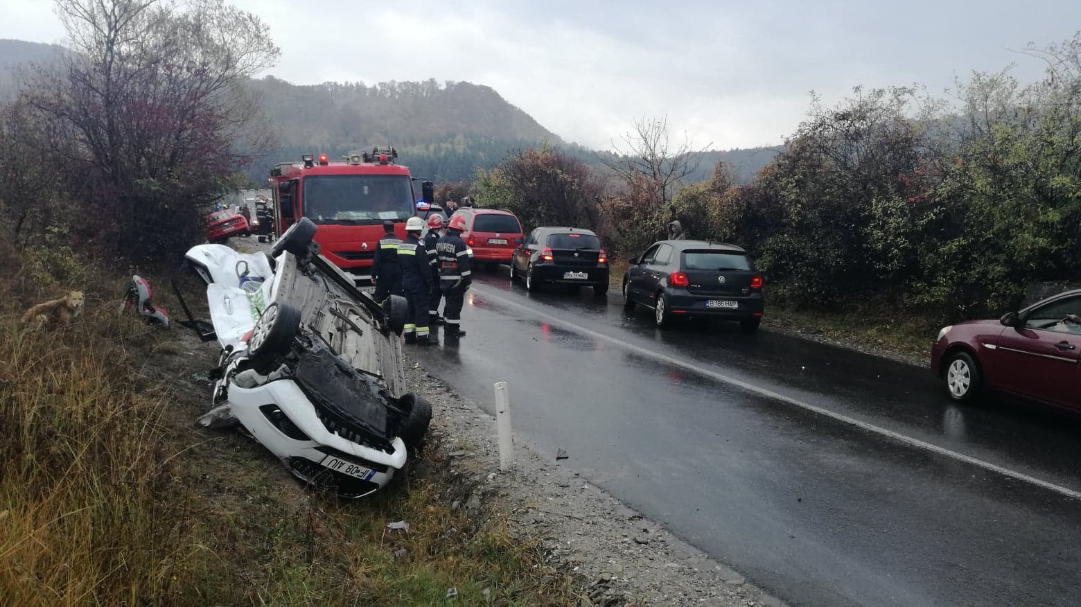 În urma impactului, autoturismul care circula regulamentar a fost aruncat în șanțul de pe marginea drumului, unde s-a răsturnat. Șoferul Mustangului era singur, în timp ce în cealaltă mașină se aflau conducătorul auto, soția sa și cei doi copii mici ai cuplului.