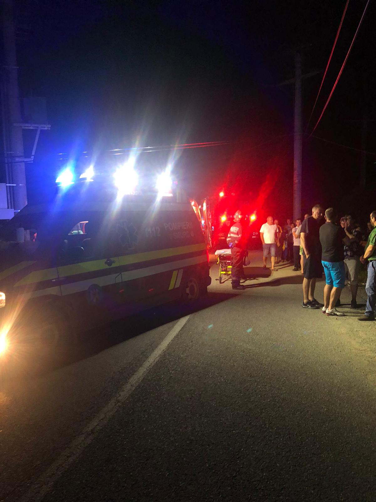 La evenimentul rutier intervin două echipaje de pompieri și trei de la SAJ BN, în total patru ambulanțe.