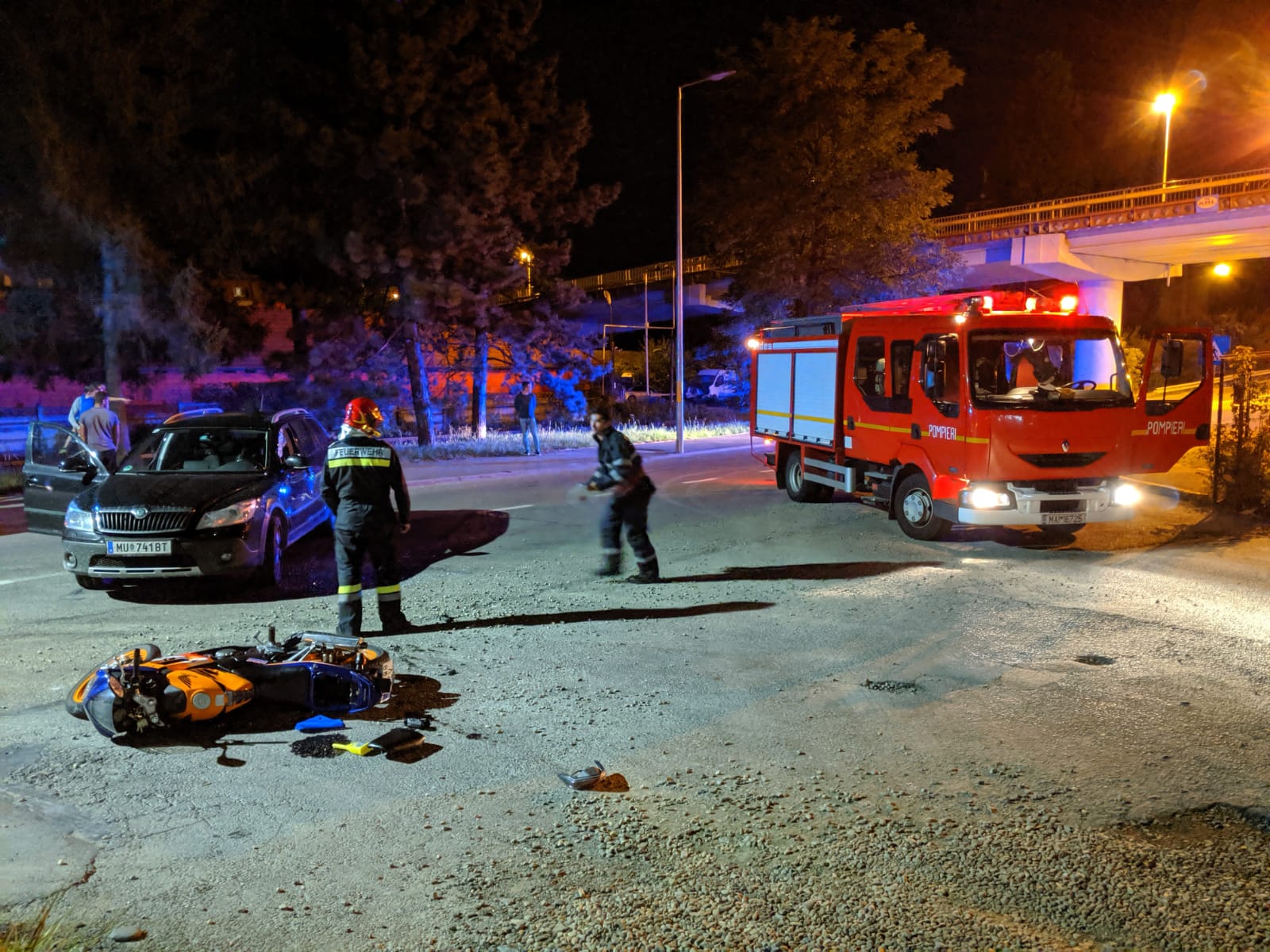 Atât motociclistul cât și mașina coborau pasarela. Motociclistul ar fi intrat în depășire exact în momentul în care mașina vira stânga spre Dedeman.