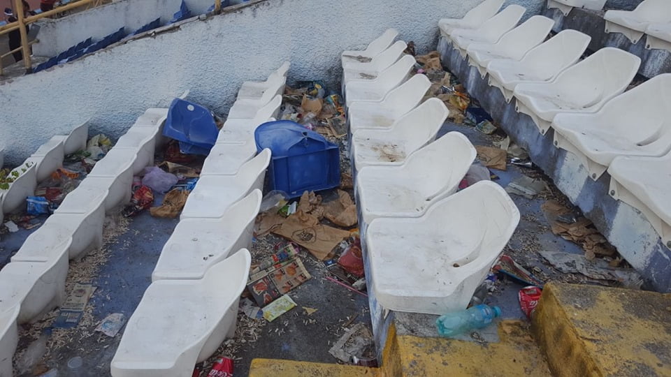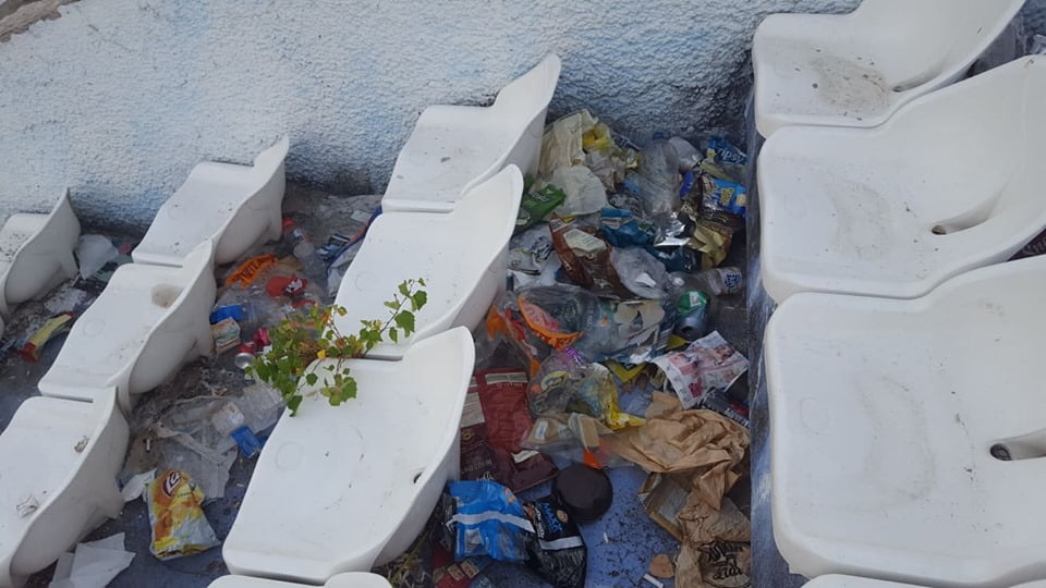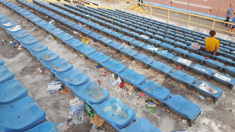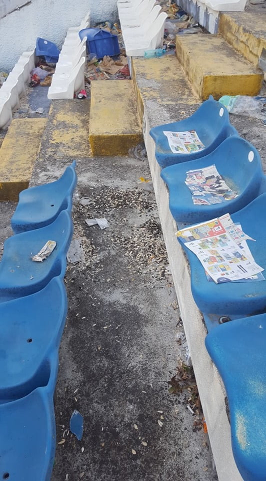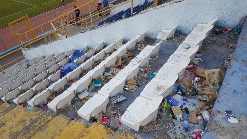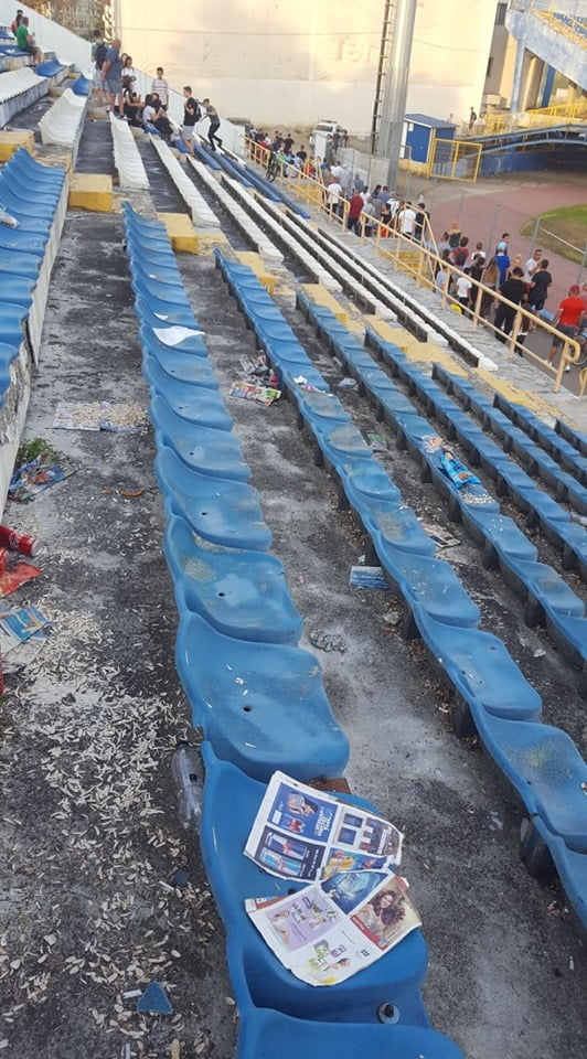 Cine știe, poate administratorul stadionului a lăsat gunoaiele acolo cu un scop! Dacă la intrarea pe arenă ești controlat și ți se iau obiecte care sunt considerate periculoase, măcar să ai la îndemână gunoiul dintre scaune cu care să arunci în echipa adversă!