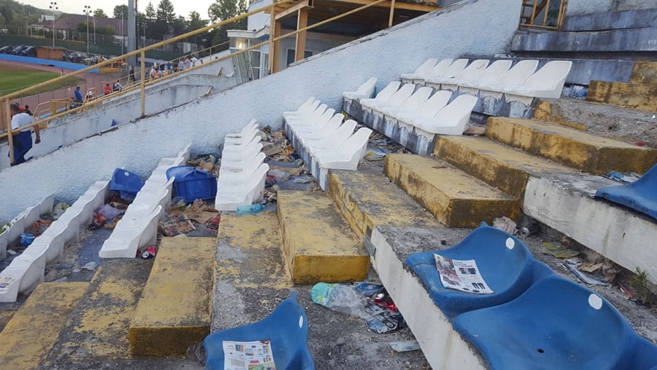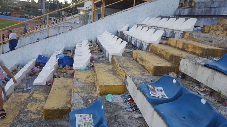 Cei prezenți la meci au avut de suferit din cauza nesimțirii bistrițenilor care transformă orice în groapă de gunoi. „Administrația orașului ar face curățenie și ar reîmprospăta aerul de pe stadion, dar nu poate cheltui bani pe ceva ce nu îi aparține”, spune viceprimarul Cristian Niculae. Până să se așeze în tribune, cei care au vrut să se bucure de meci au avut de trecut prin mormane de gunoi.