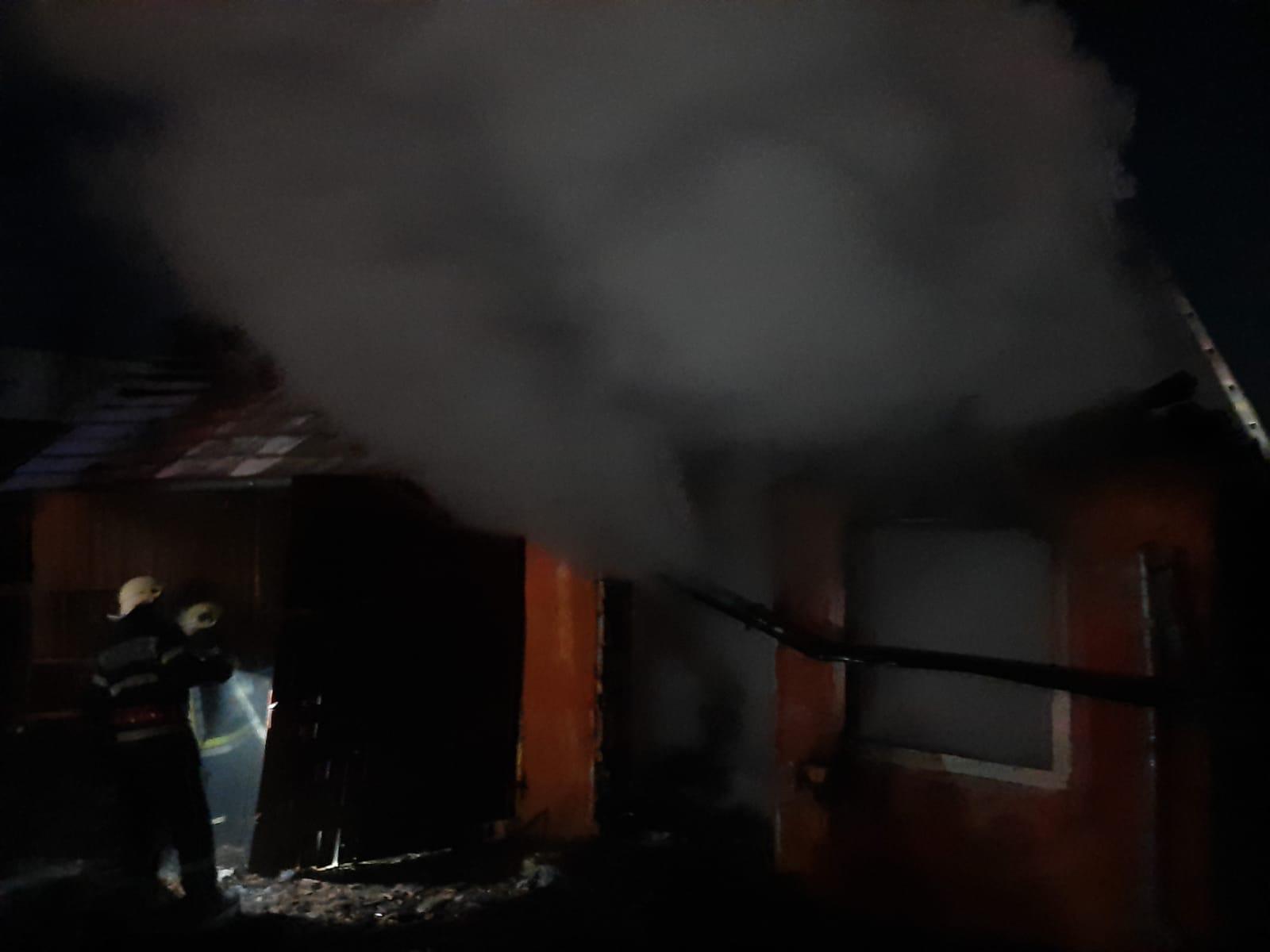 Din fericire incendiul s-a manifestat doar la anexa gospodărească, iar pompierii lucrează pentru lichidare.