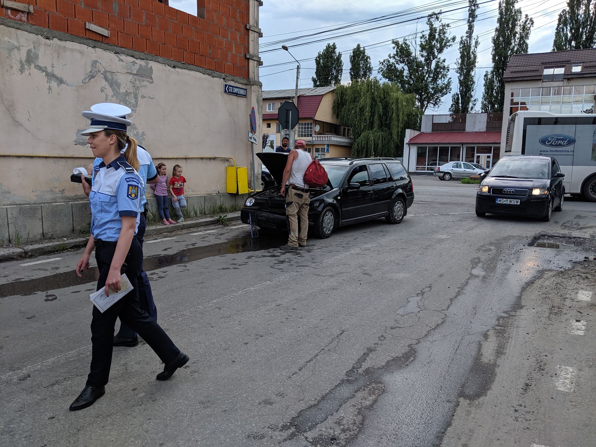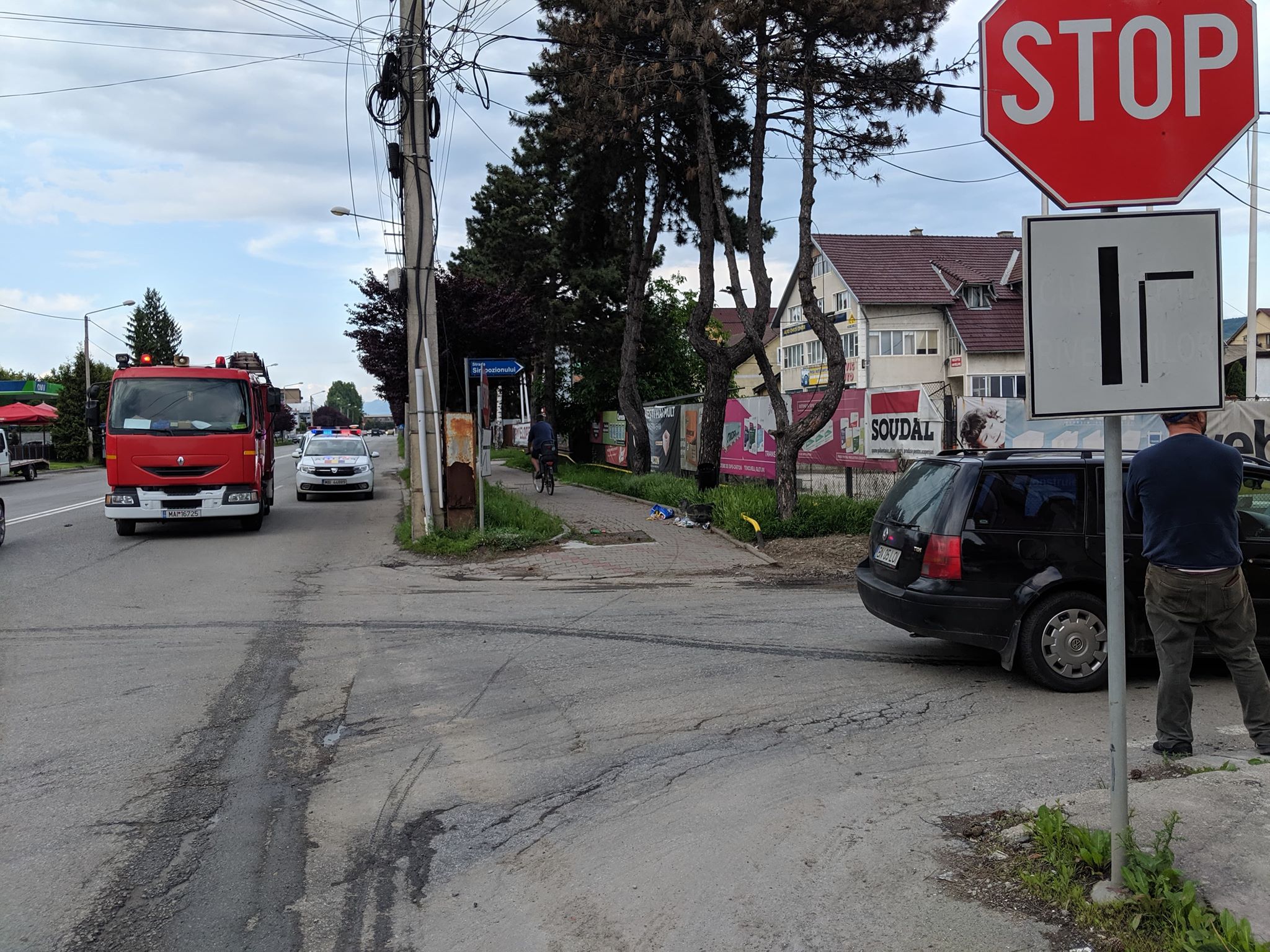 Echipaje ale ISU BN și ale poliției au fost solicitate să intervină la un accident rutier petrecut pe raza municipiului Bistrița.