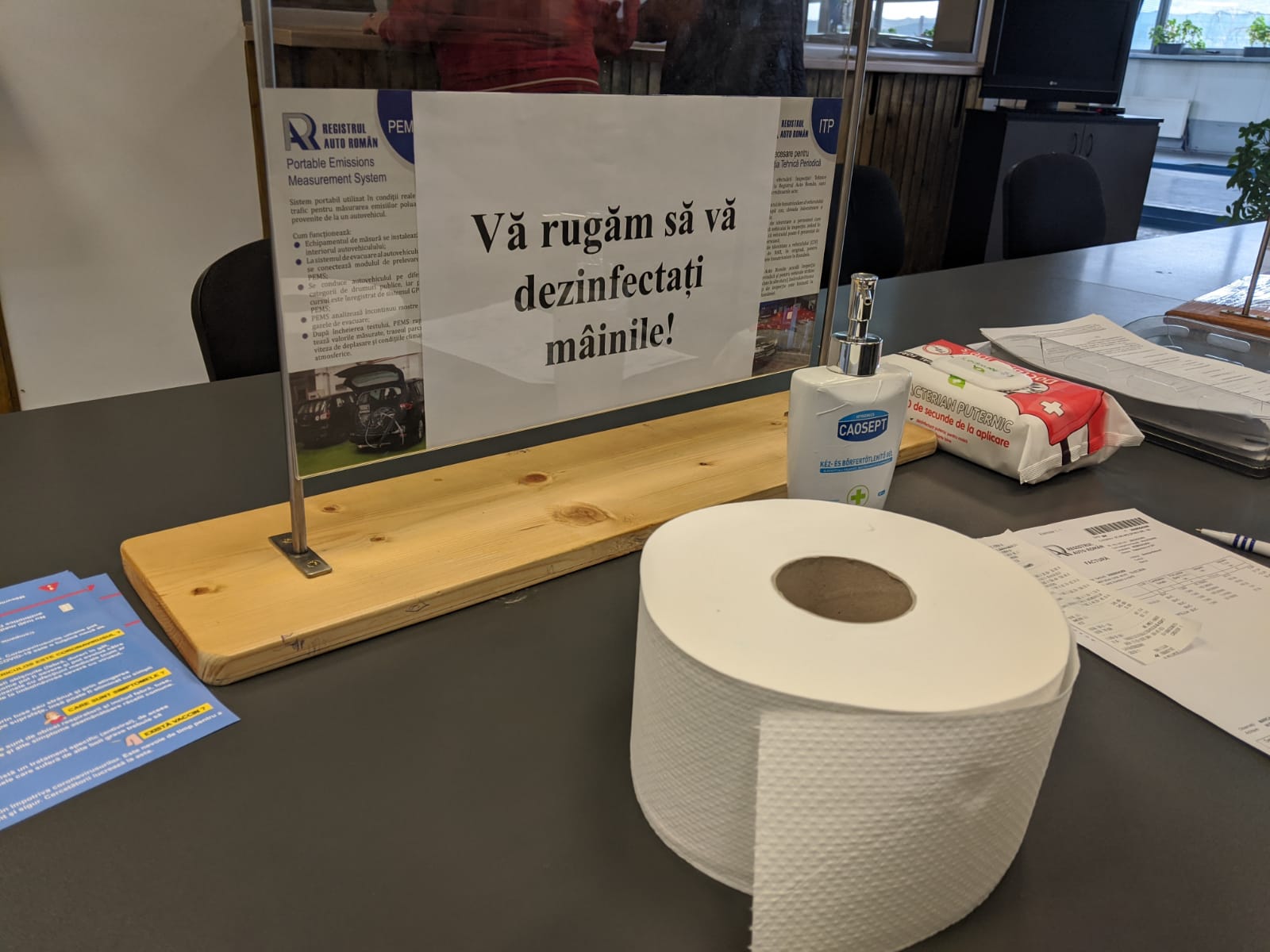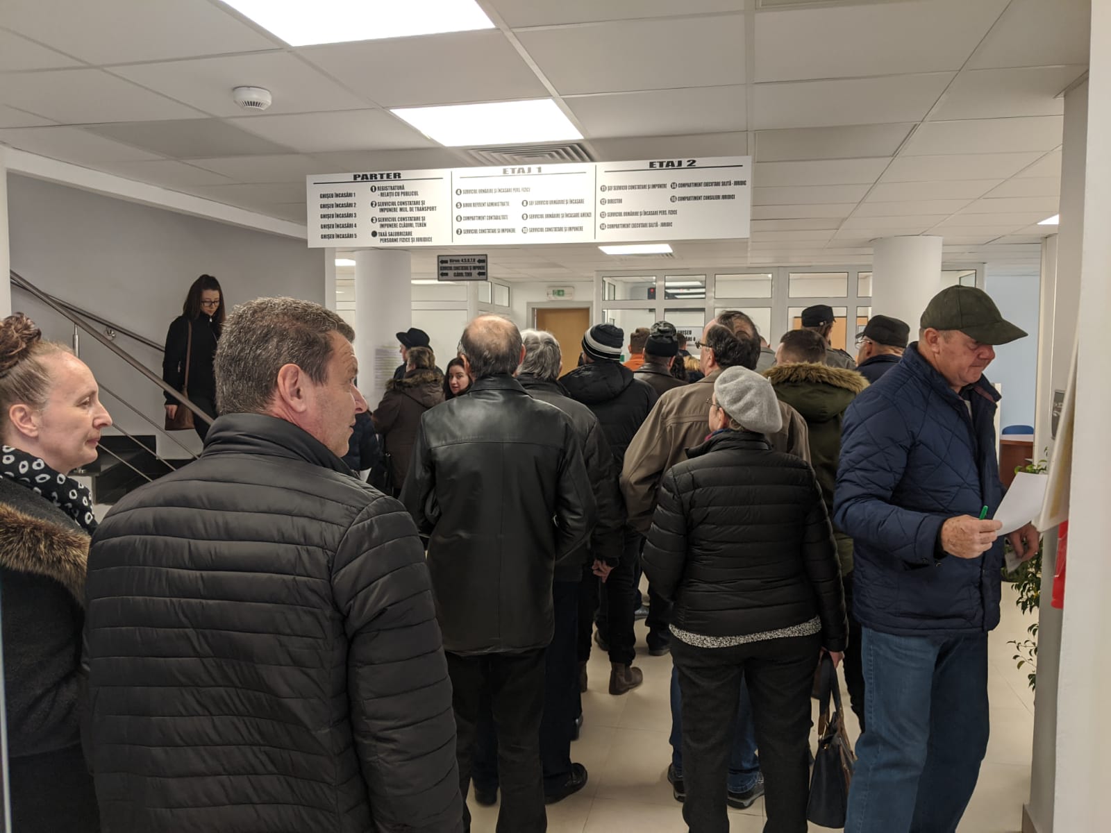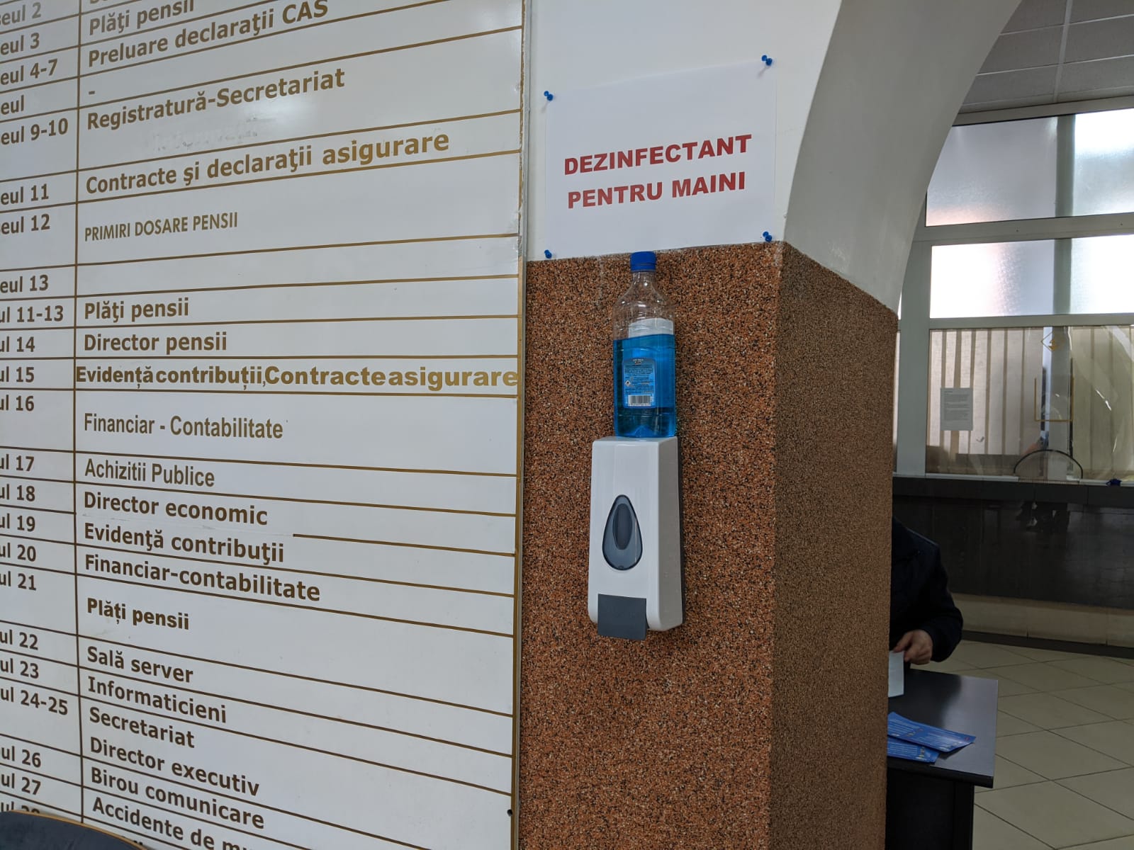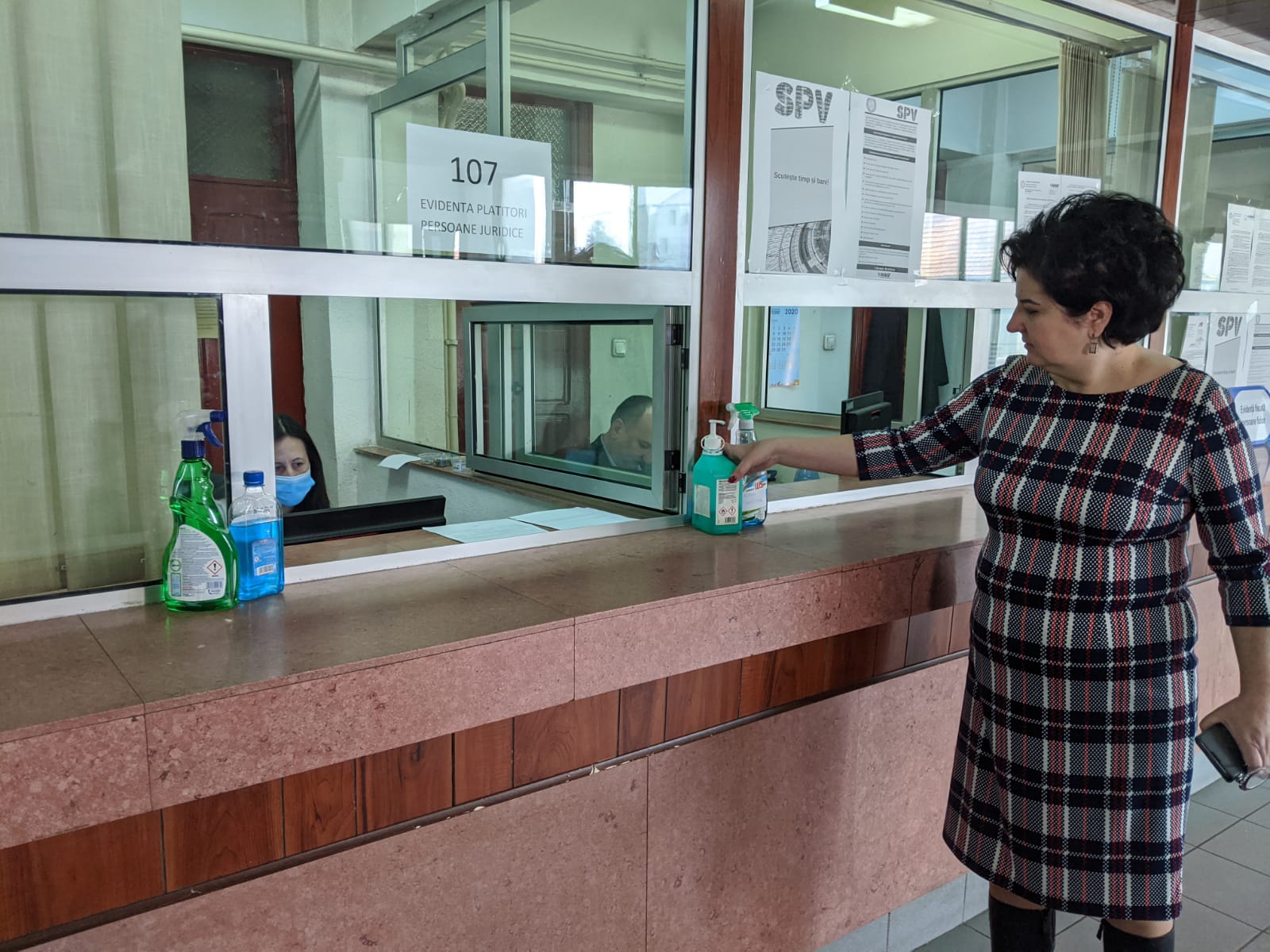 La Taxe și Impozite, cam mulți pe metru pătrat. Au totuși dezinfectant la îndemână: