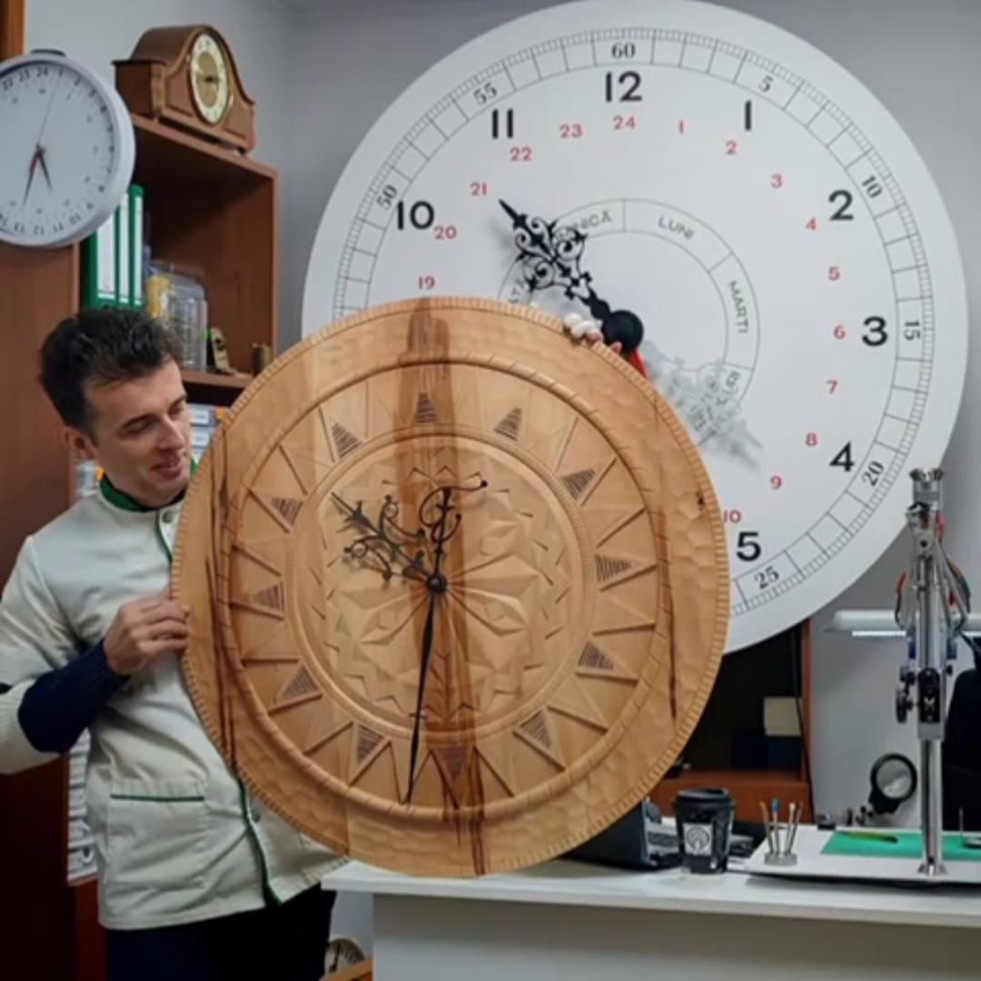 Recent, tot pentru ei a realizat un ceas deosebit, cadranul fiind sculptat în lemn de Ciprian Pop de la Ars Fabrilis.