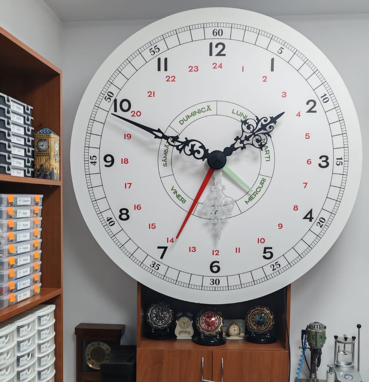 Este unic probabil în țară, prin cele 3 complicații pe care le are, respectiv: 1 – indică 24 ore (arătătorul roșu pe cifrele roșii ale cadranului), 2 – indică zilele săptămânii (arătătorul verde pe zona verde a cadranului) și 3 – indică ora GMT sau UTC (arătătorul alb indică UTC sau GMT sau ora de referință zero dată de meridianul Greenwich – iarna suntem cu două și vara cu trei ore înainte)”, ne-a explicat acesta.
