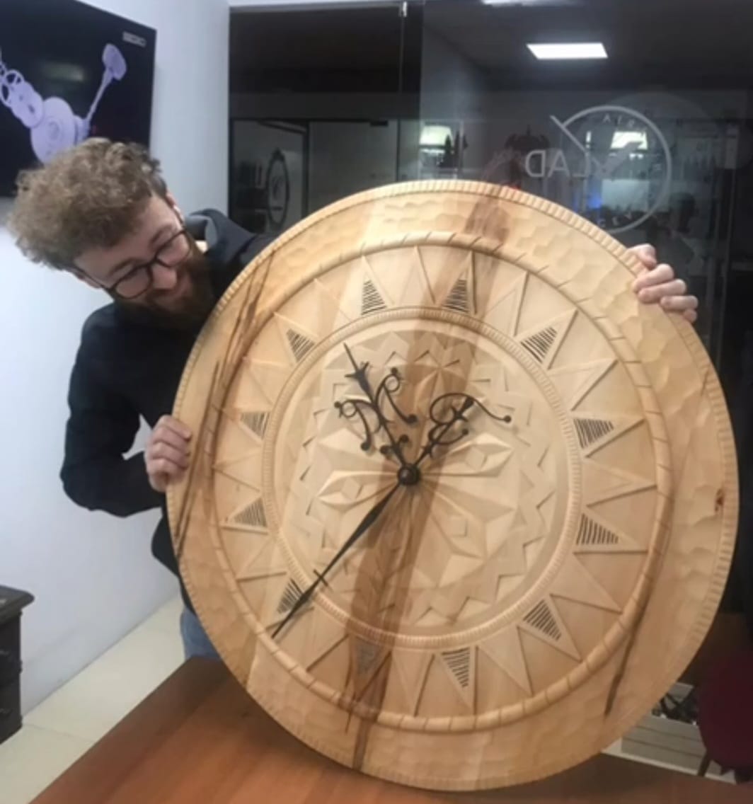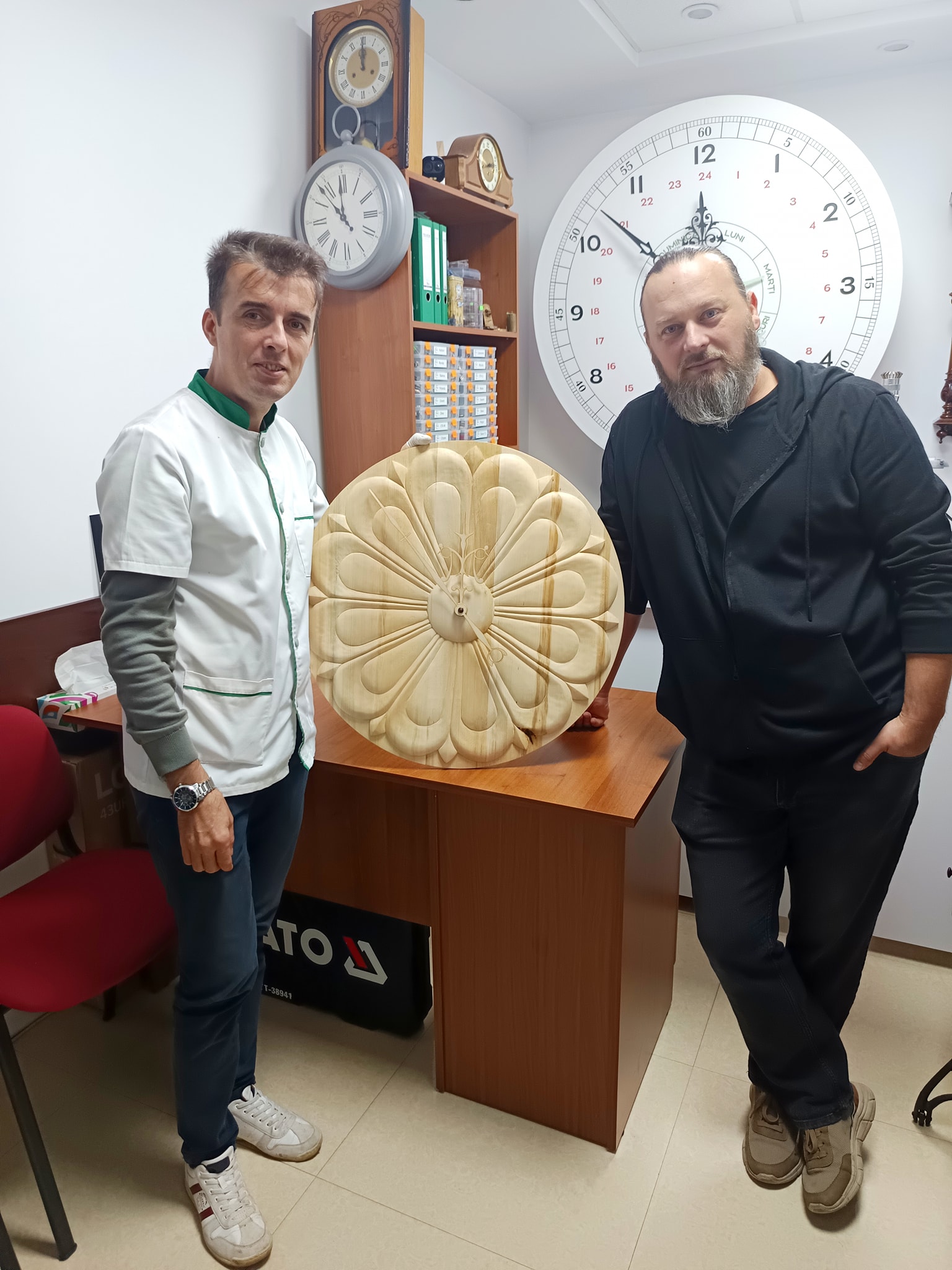 Recent, tot pentru ei a realizat un ceas deosebit, cadranul fiind sculptat în lemn de Ciprian Pop de la Ars Fabrilis.