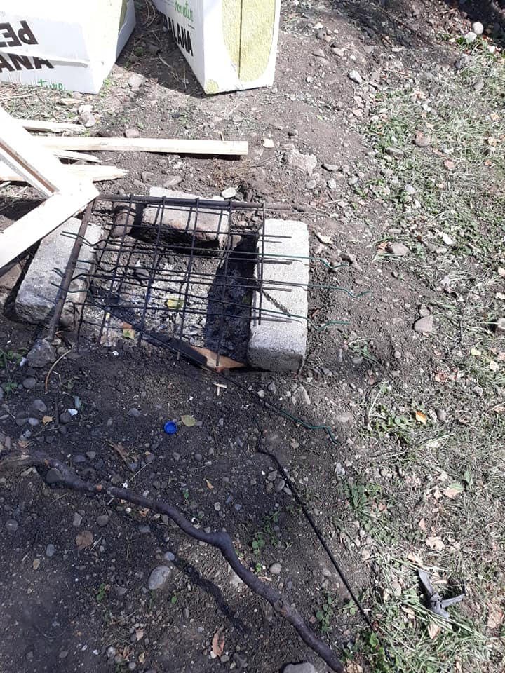 Întrucât nu venise pregătit de acasă pentru o asemenea masă, bărbatul a improvizat și a făcut un grătar din câțiva bolțari și o bucată de gard, care delimita grădina dintre blocuri.