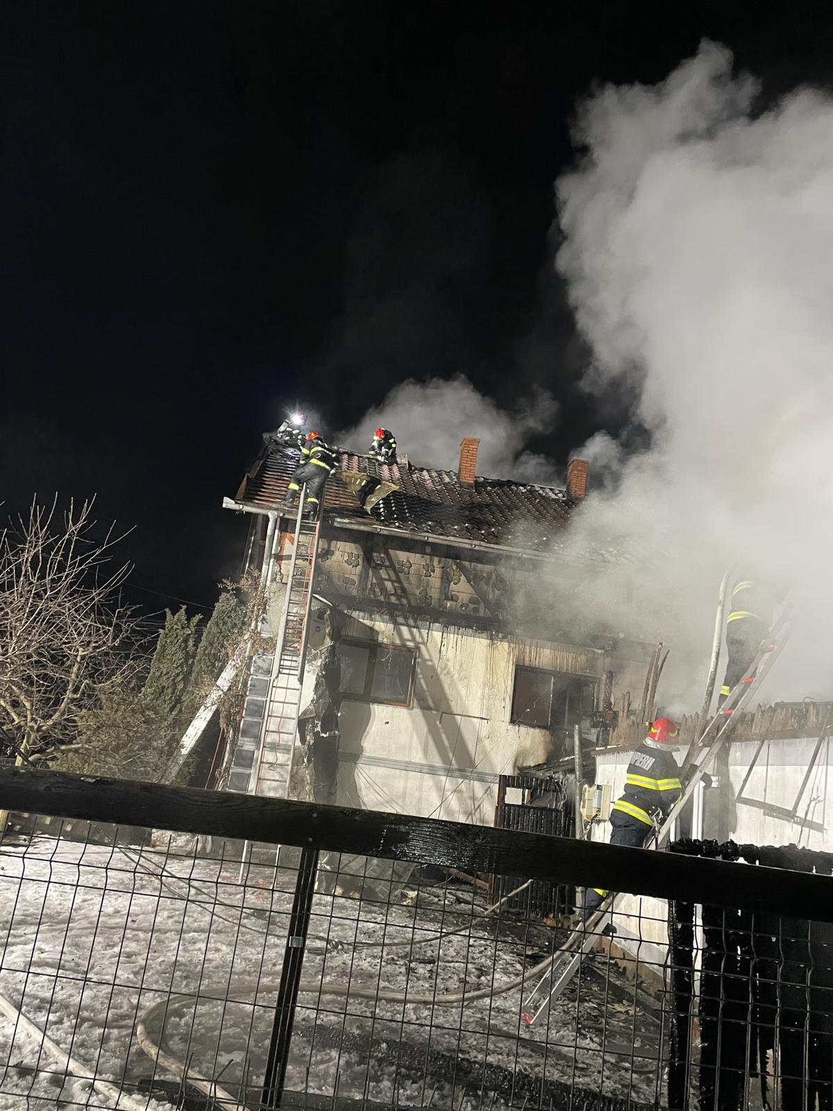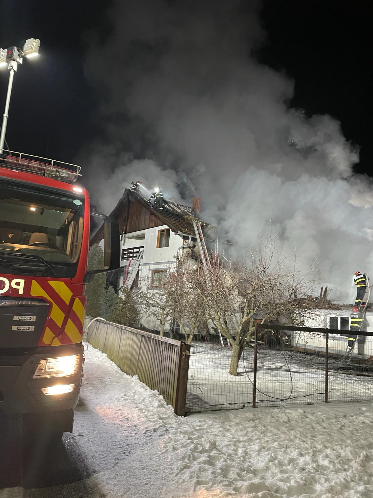 FOTO: Intervenție extremă a pompierilor la Măgura Ilvei! S-au chinuit 5 ore, la -10 grade, să salveze o casă