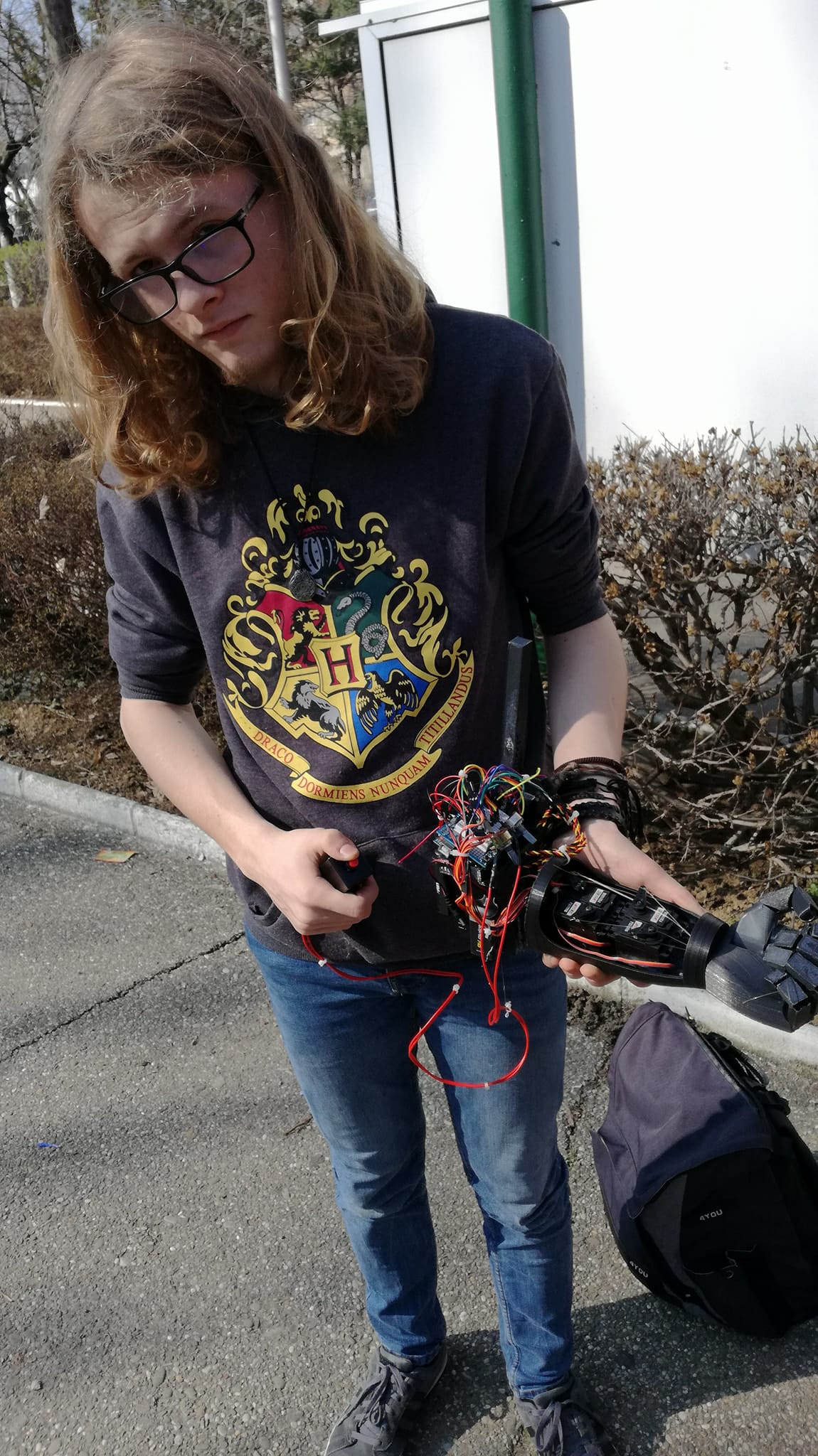 „La acest proiect lucrez din vara lui 2016, când am lucrat ca măcelar în Irlanda ca să strâng bani pentru roboți. Nu am vrut să plătească părinții mei pentru tot. De atunci, brațul a tot avansat, versiune cu versiune. De la un clește, la o palmă asemănătoare unui picior de vultur și până la aspectul uman pe care îl are acum. Cel mai greu lucru a fost proiectarea pentru că aveam nevoie de multe noțiuni pe care nu le-am învățat în școală și a trebuit să le învăț singur de pe Internet sau prin încercări”, povestește James pentru Bistrițeanul.ro.