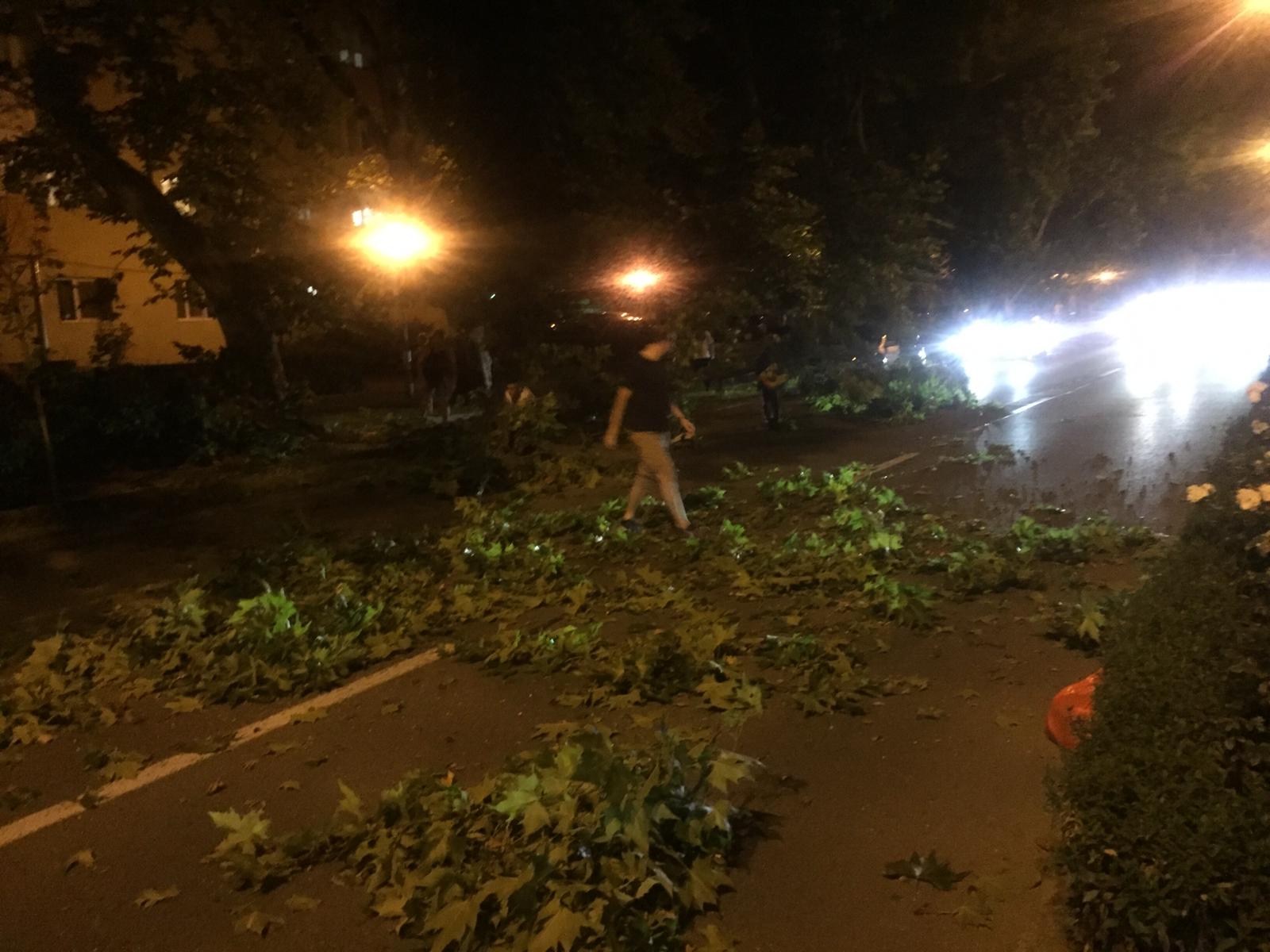 Cititorul nostru ne-a trimis imagini și spune că traficul a fost blocat aproximativ 10 minute, iar șoferii și trecătorii au tras din drum creanga ruptă.