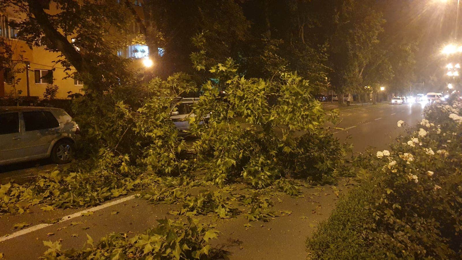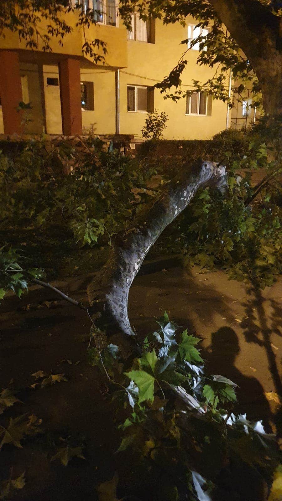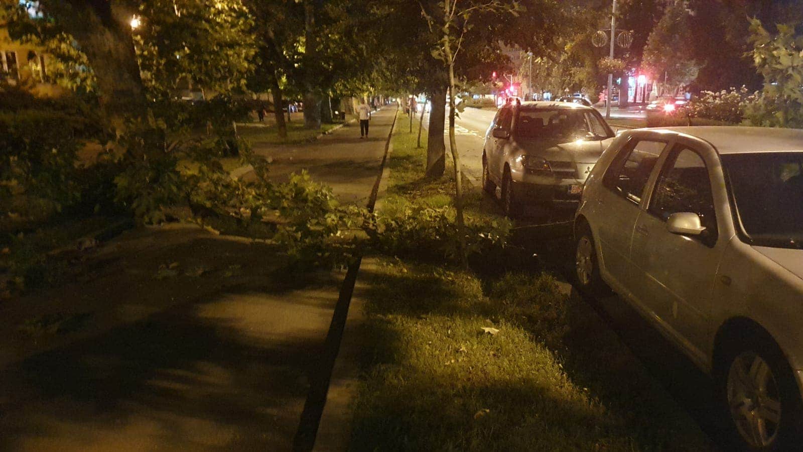 Un bistrițean și-a văzut moartea cu ochii pe Bulevardul Independenței! O creangă s-a rupt dintr-un copac și a căzut pe carosabil, blocând banda care duce înspre Poșta Veche.