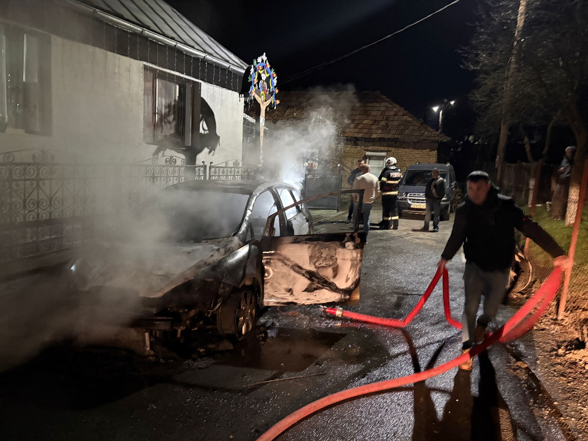 În cursul nopții, în jurul orei 02.30, un echipaj de pompieri, SVSU și un echipaj SAJ au intervenit la un incendiu izbucnit la un autoturism în localitatea Căianu Mic.