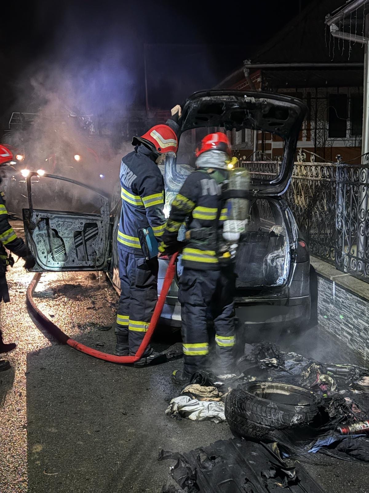 În cursul nopții, în jurul orei 02.30, un echipaj de pompieri, SVSU și un echipaj SAJ au intervenit la un incendiu izbucnit la un autoturism în localitatea Căianu Mic.