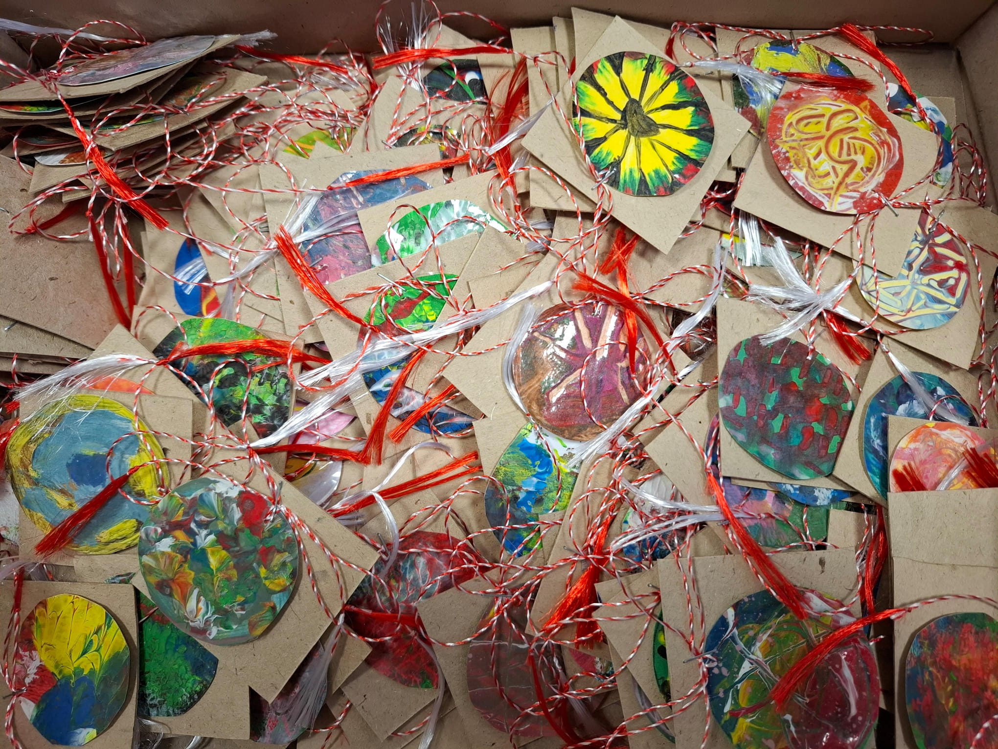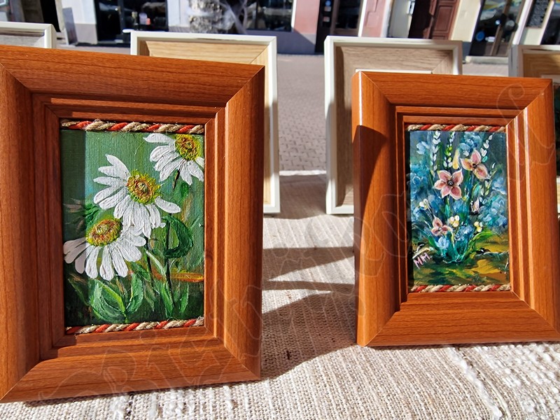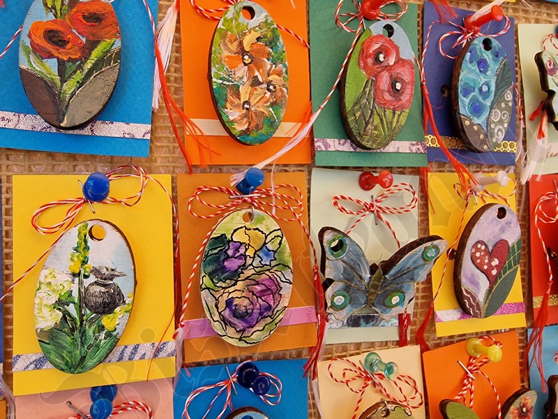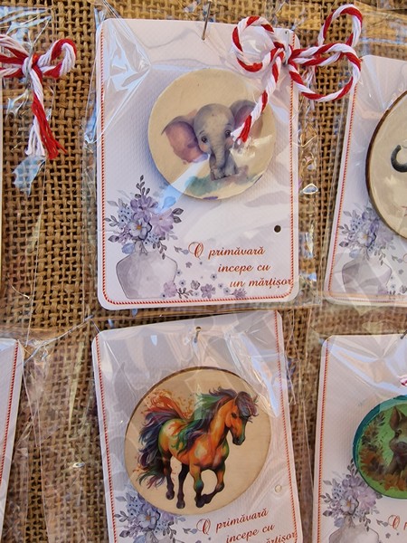 ”Eu am pictat manual fiecare mărțișor. Și cele mai mari, și cele mai mici. Pot fi folosite ca mărțișor, ca broșe, ca lănțișor. Totul e atent lucrat. Iar soțul meu a realizat mărțișoare din coajă de mesteacăn!” a povestit Mărioara.