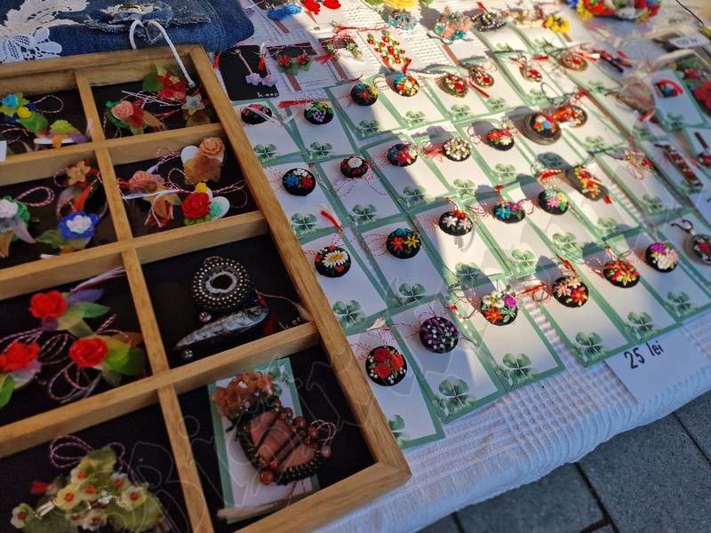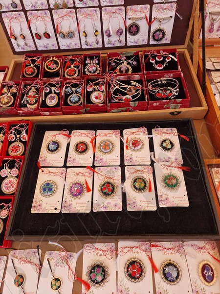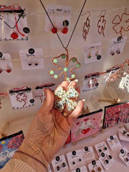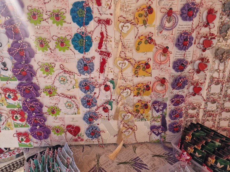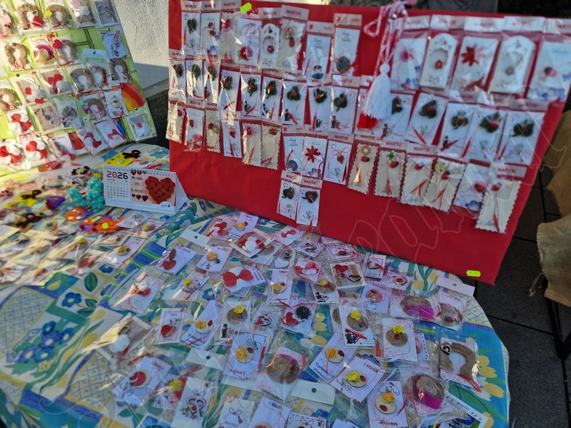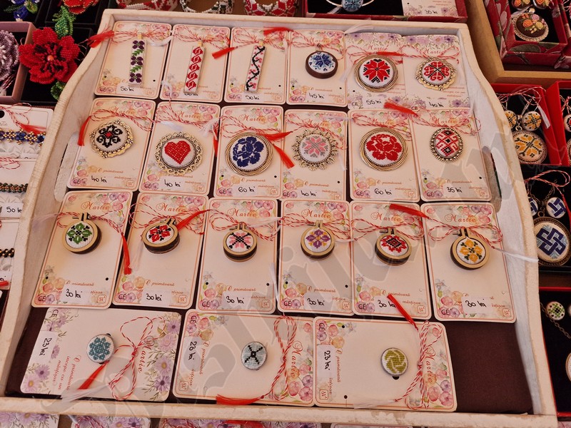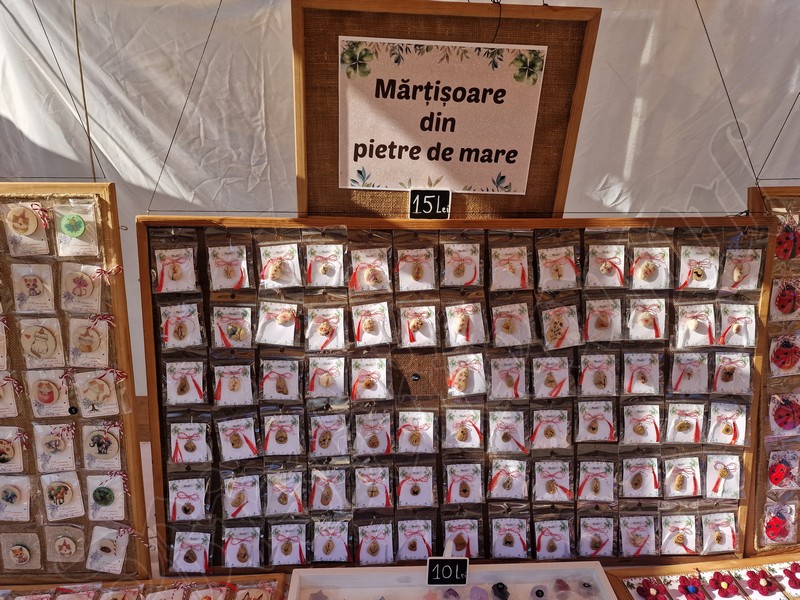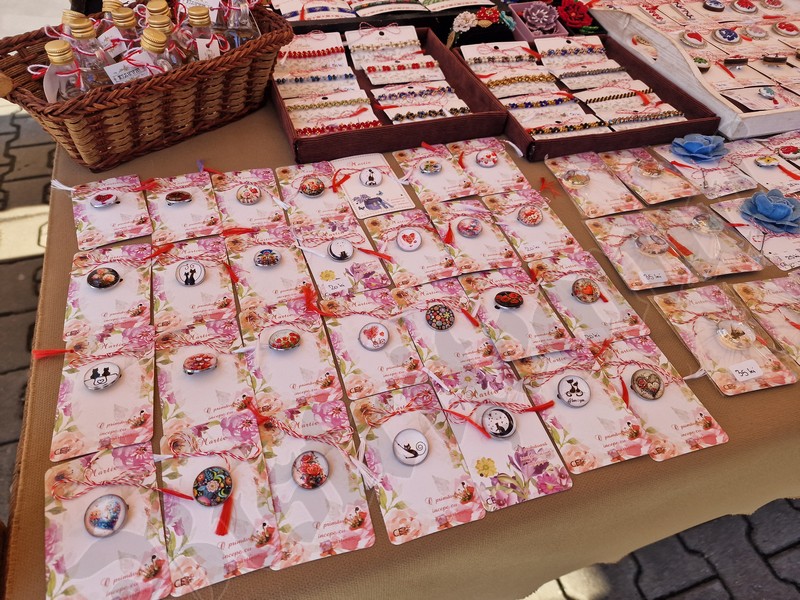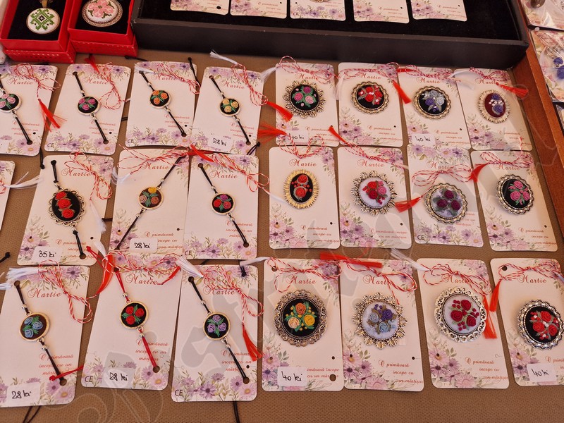 Atât pe pietonal cât și la muzeu găsiți mărțișoare din pietre semiprețioase. Totodată, în ambele locații veți găsi și alte lucruri frumoase, numai bune de cumpărat ca și cadouri de 8 Martie. De la plachete sau plicuri cu mesaje, la buchete de flori, tablouri pictate manual, broșe, lănțișoare, cercei…toate lucrate cu migală și cu suflet.