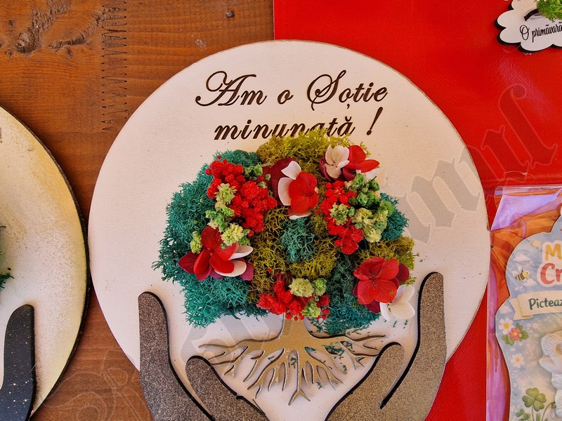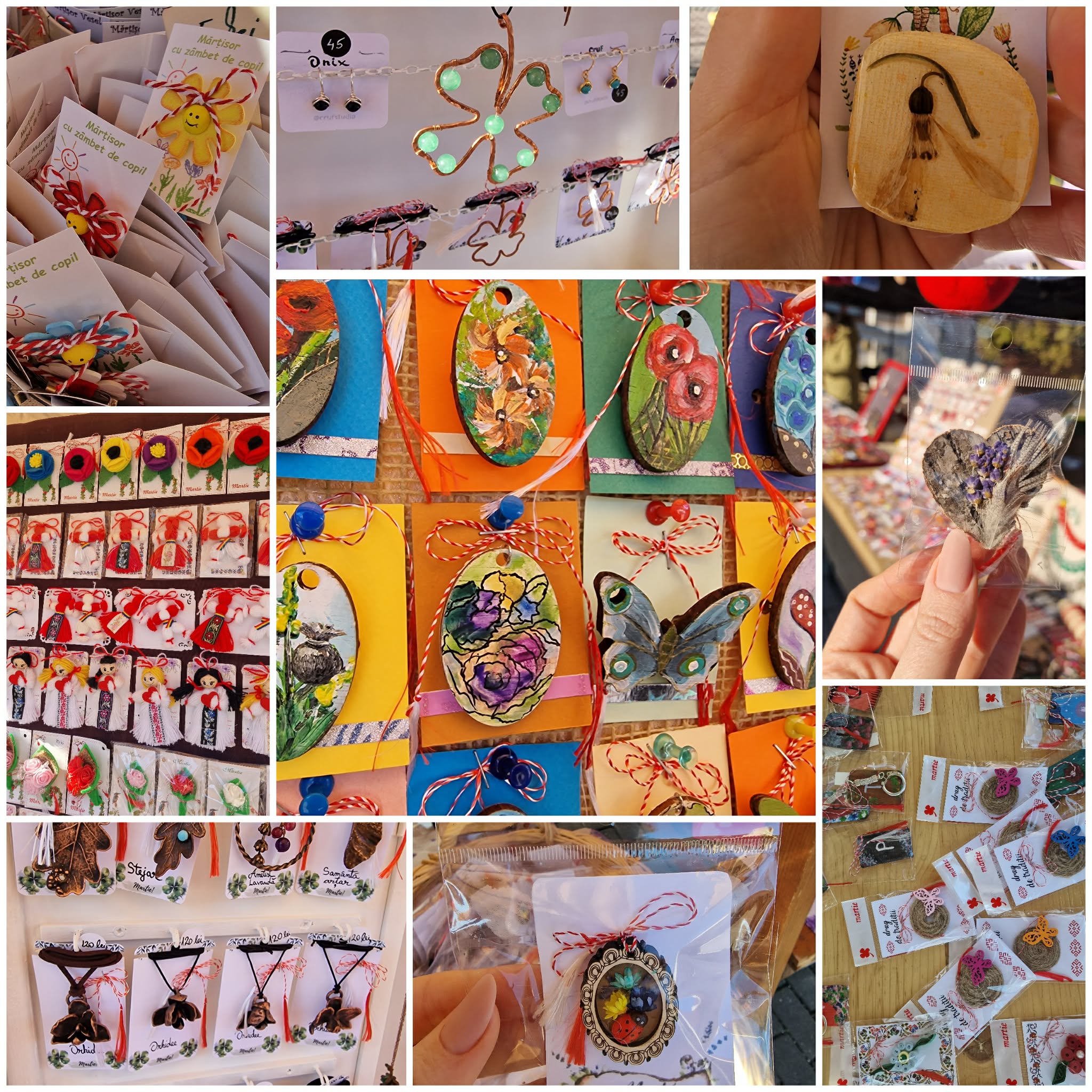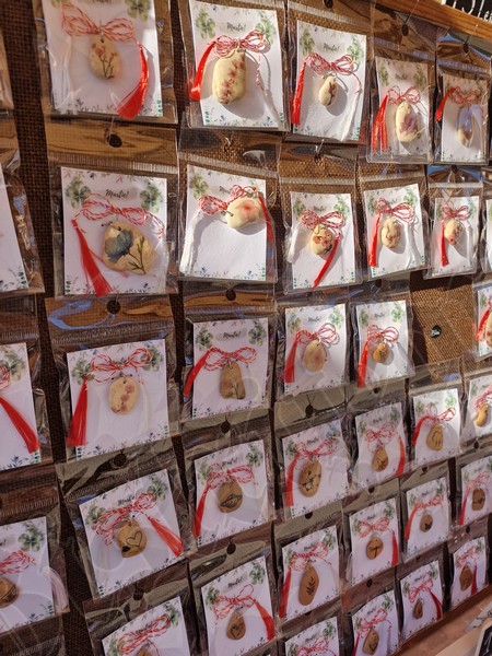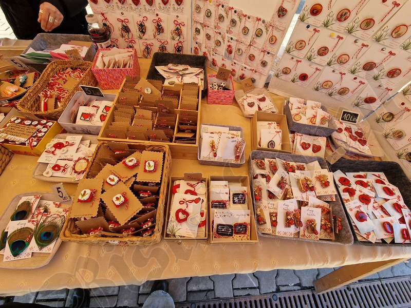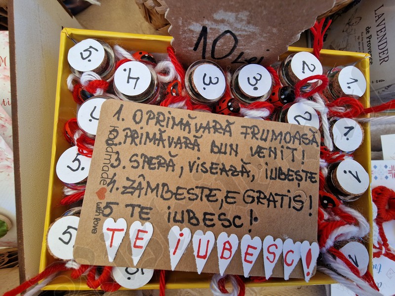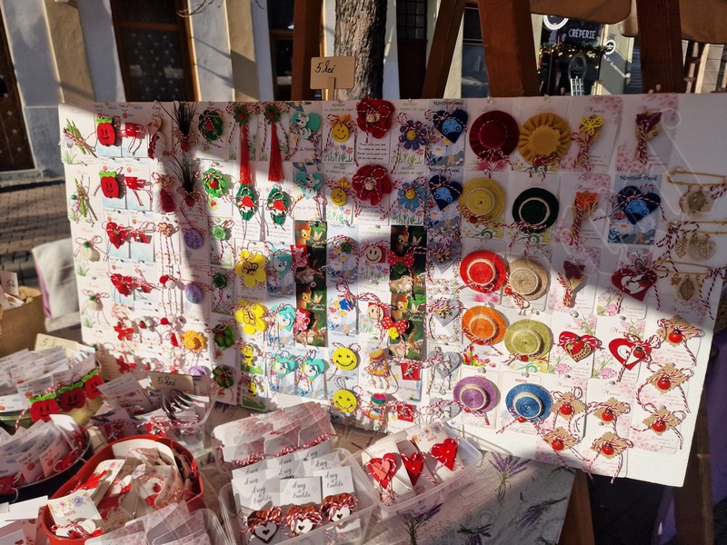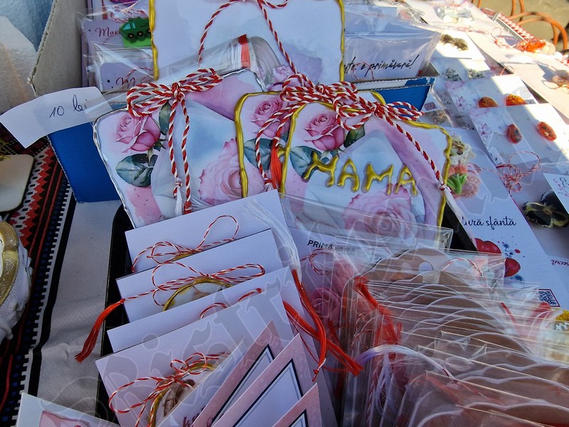 Atât pe pietonal cât și la muzeu găsiți mărțișoare din pietre semiprețioase. Totodată, în ambele locații veți găsi și alte lucruri frumoase, numai bune de cumpărat ca și cadouri de 8 Martie. De la plachete sau plicuri cu mesaje, la buchete de flori, tablouri pictate manual, broșe, lănțișoare, cercei…toate lucrate cu migală și cu suflet.