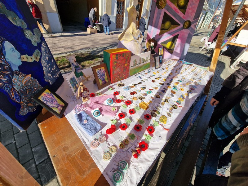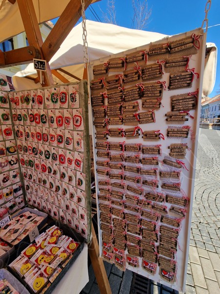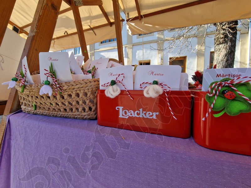 Și în curtea Complexului Muzeal găsiți sute de mărțișoare. De la mărțișoare brodate, flori presate, picturi cu biserica Evanghelică sau mărțișoare lucrate de elevii CSEI nr 1.
