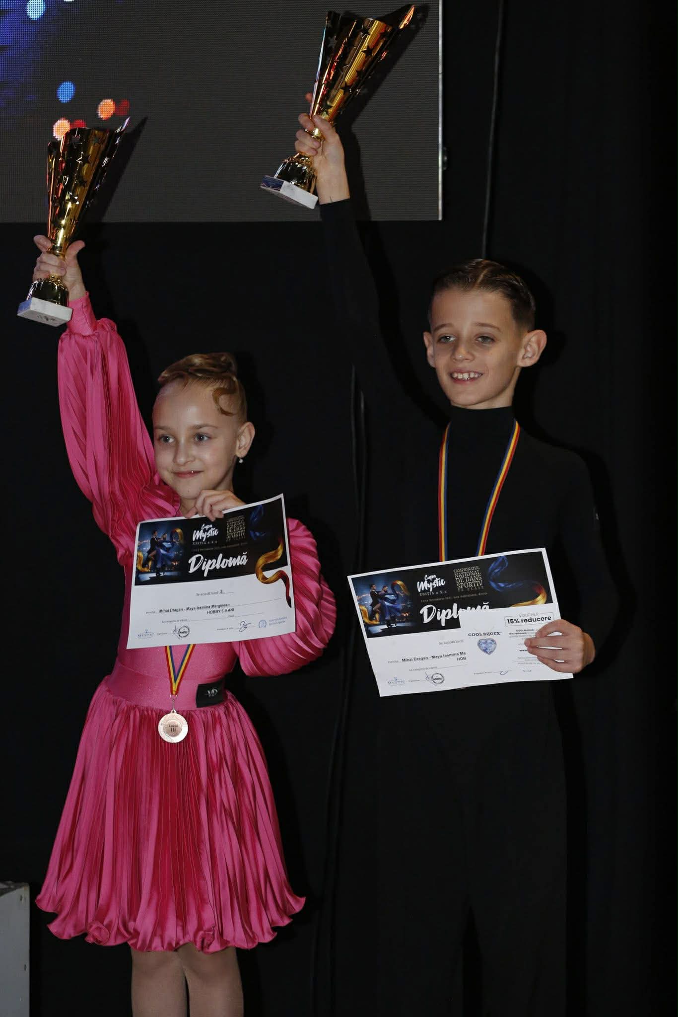 „Perechea Costea Alex – Mărginean Melissa a avut o evoluție excelentă, la categoria de vârstă 4-7 ani, clasându-se pe locul I la Cha-Cha și locul I la Vals, demonstrând eleganță, ritm și o bună pregătire tehnică.