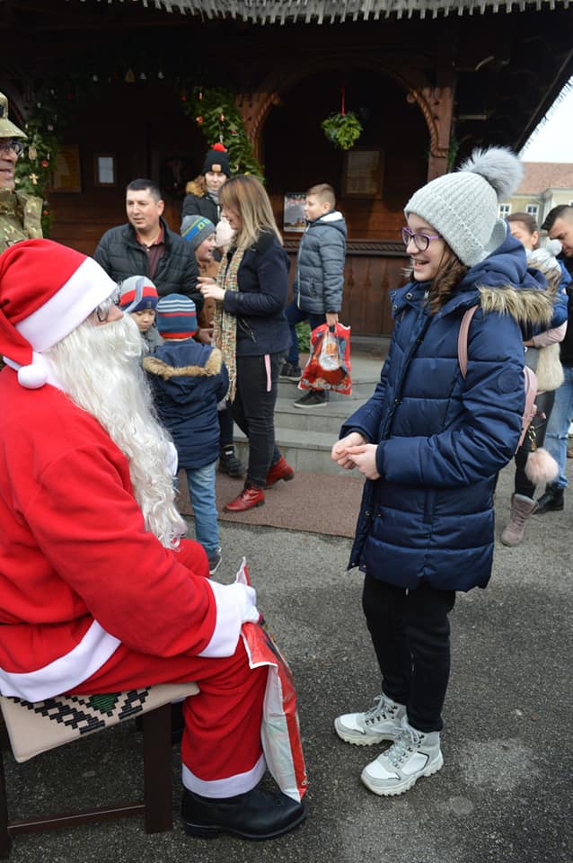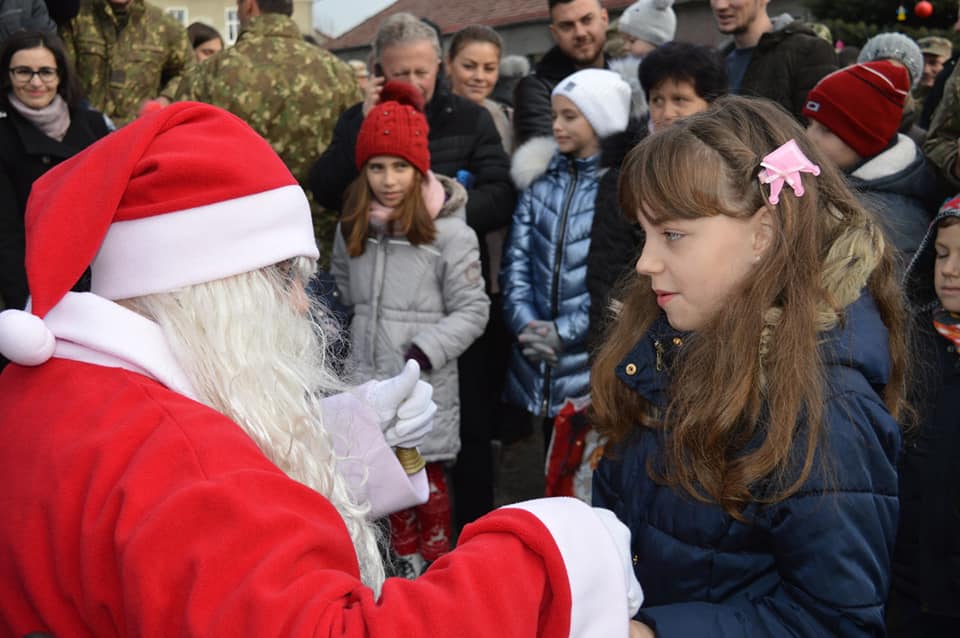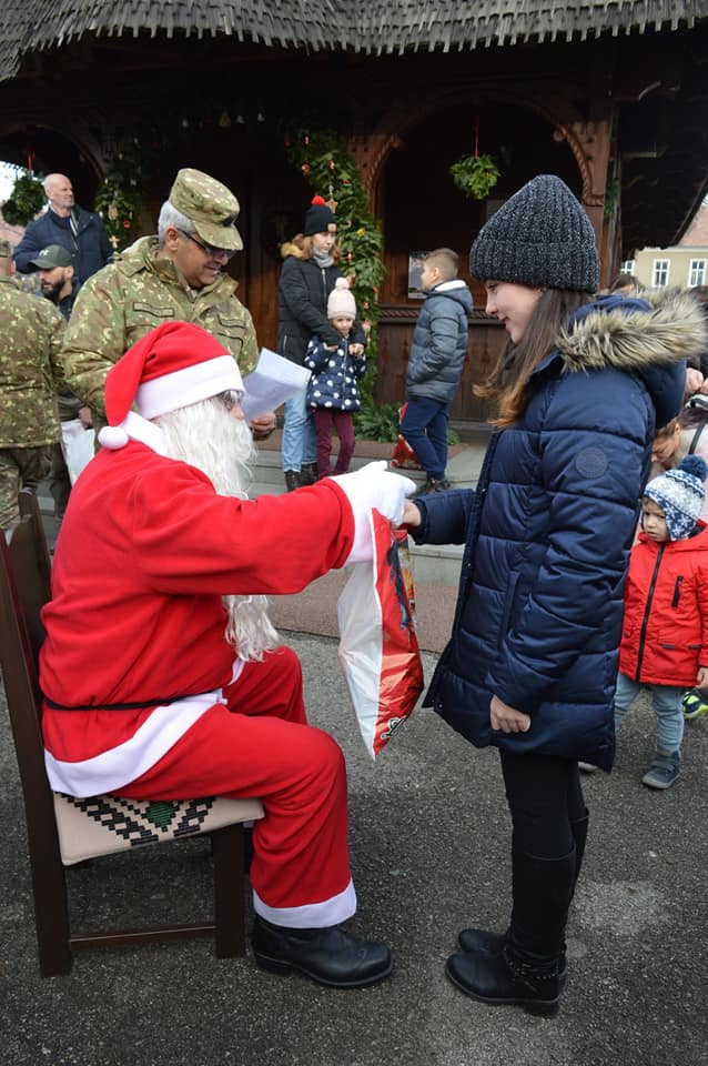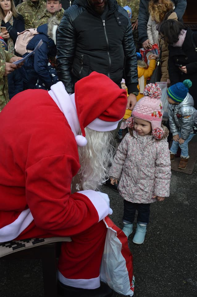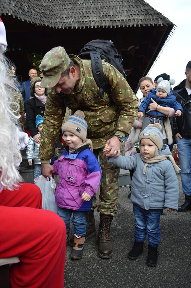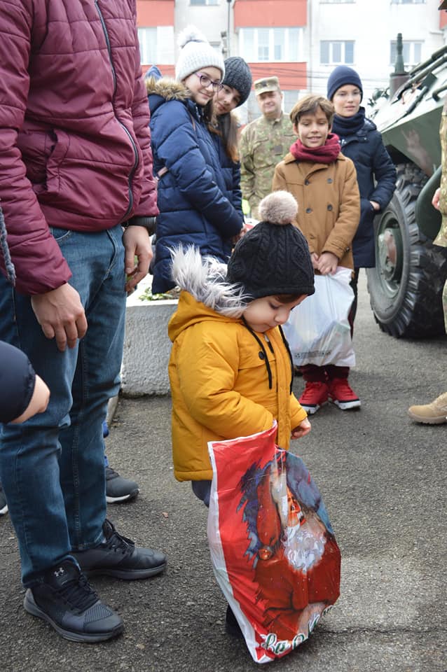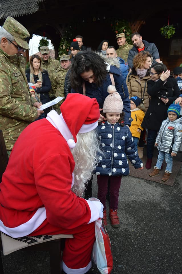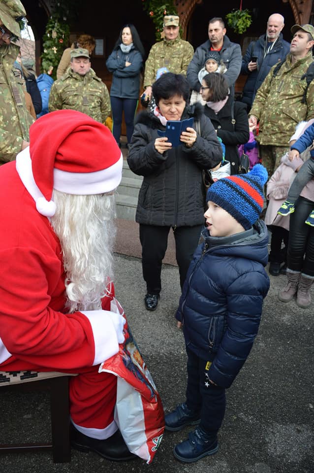 „La Bistrița, Moș Crăciun și-a făcut apariția cu un transportor amfibiu blindat, încărcat cu bucurii, cadouri și jucării. Personajul magic a fost întâmpinat cu entuziasm și emoții de copiii personalului, iar pentru darurile oferite a fost răsplătit cu o mulțime de colinde și poezii, care mai de care mai frumoase! Vă dorim Crăciun Fericit, cu lumină și bucurie în suflet”, au scris cei de la Brigada 81 Mecanizată „General Grigore Bălan” pe Facebook.