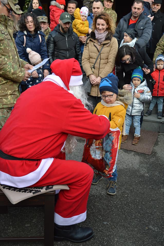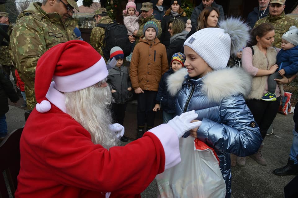 Moș Crăciun nu i-a uitat pe copiii militarilor. Micuții l-au așteptat pe „bătrânelul darnic” în curtea instituției.