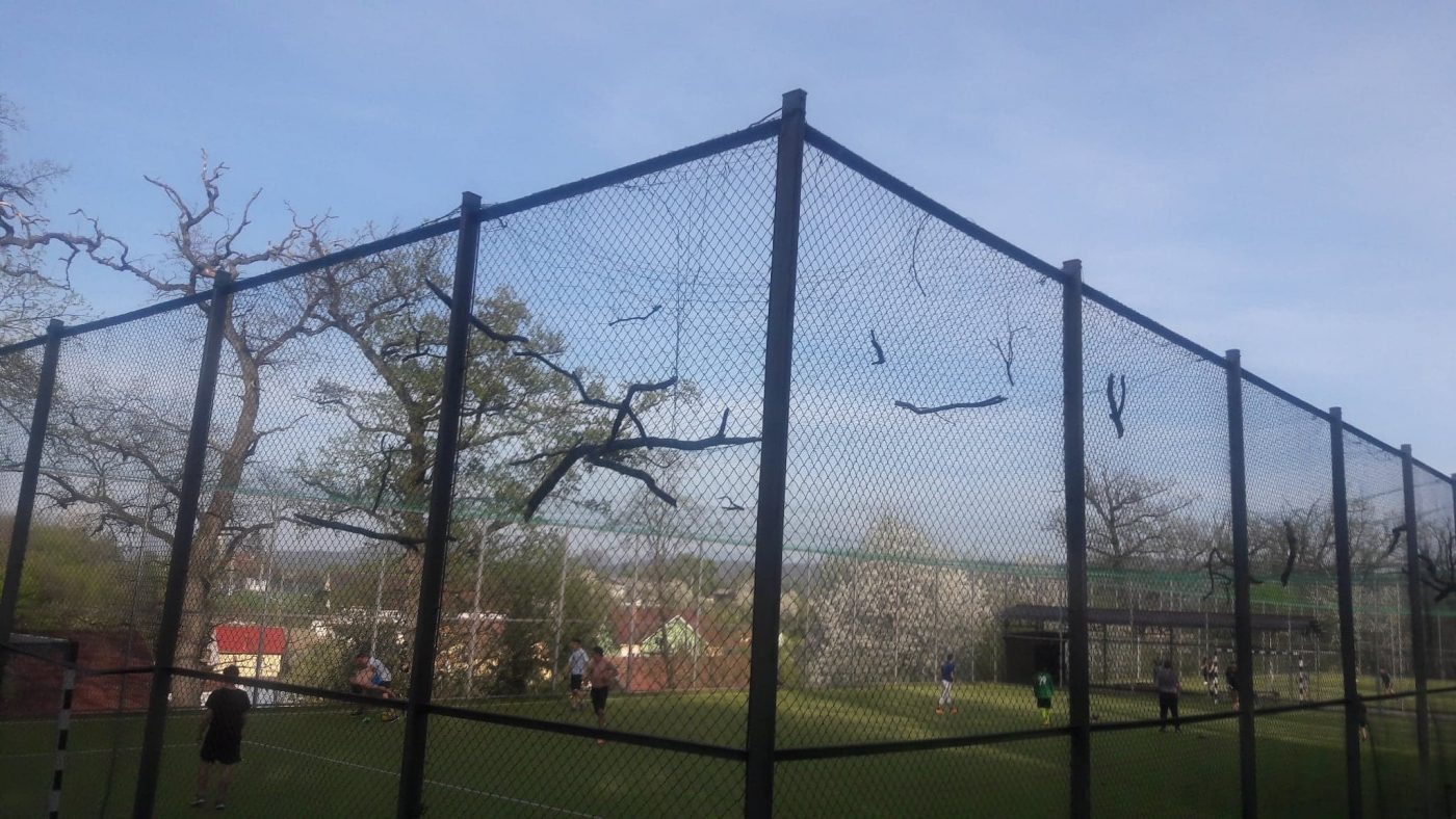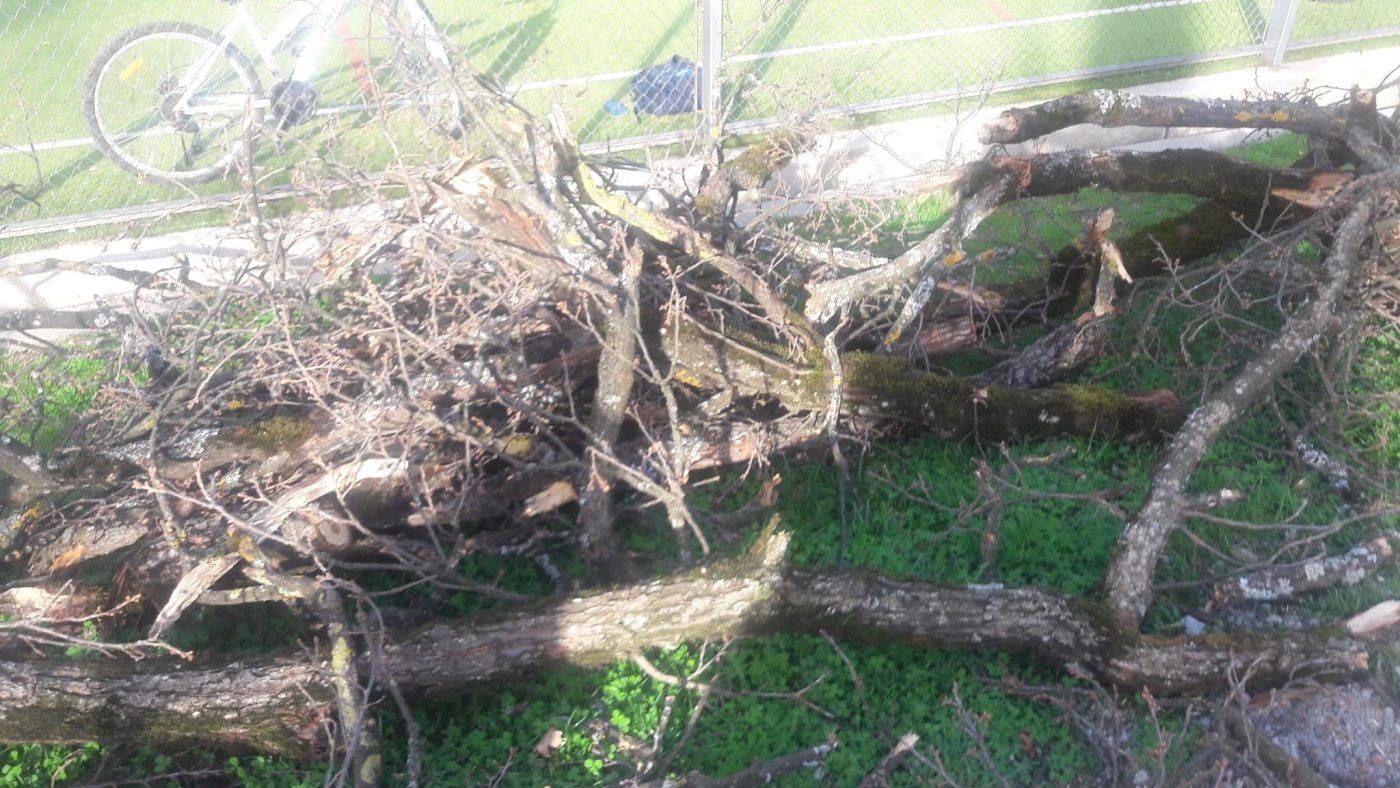Chiar și pe plasa ce acoperă terenul de sport, crengile stăteau atârnate.