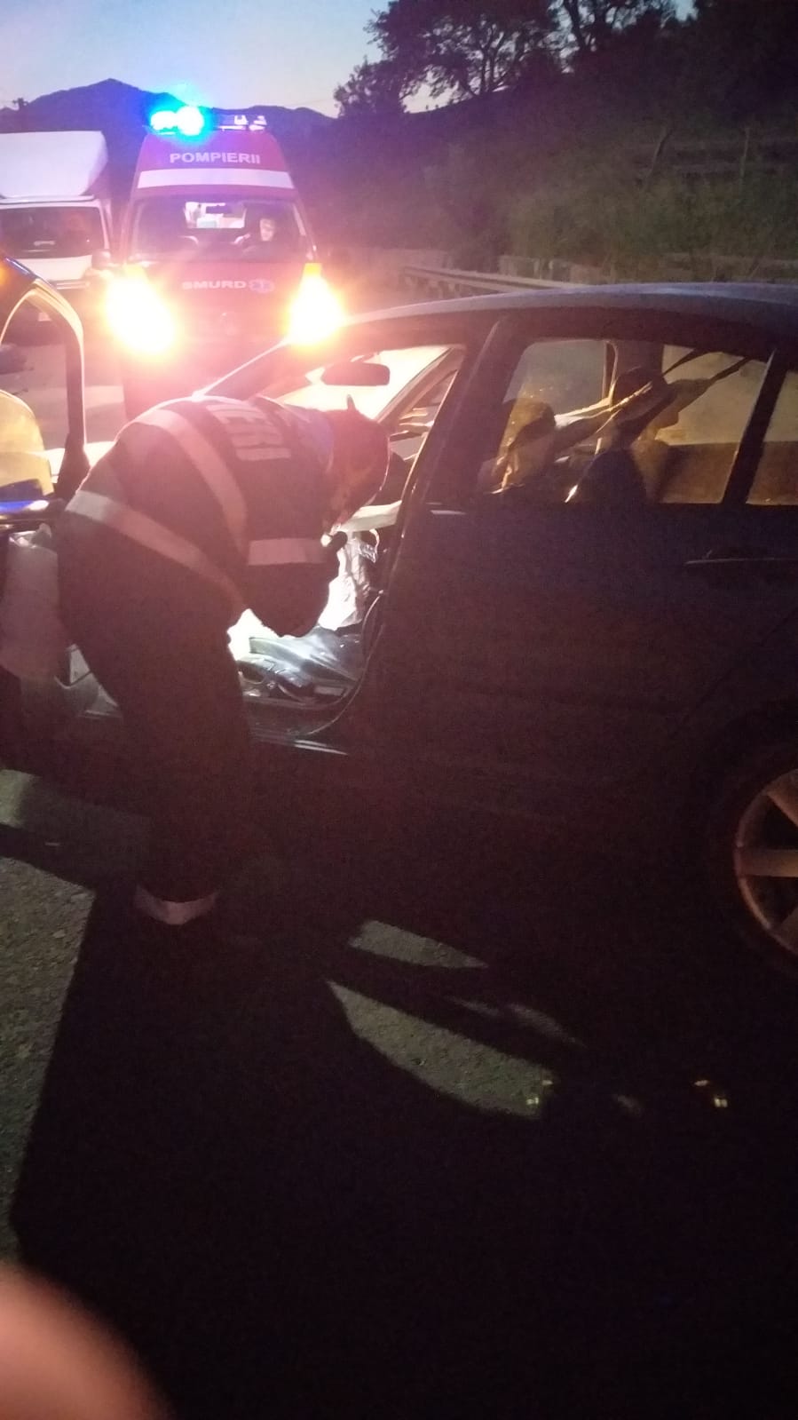 Șoferul vinovat de producerea accidentului și-a continuat drumul după ce a lovit camioneta, însă după aproximativ un kilometru șoferul a pierdut controlul mașinii pe care o conducea și a lovit un parapet de pe marginea drumului.