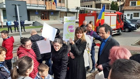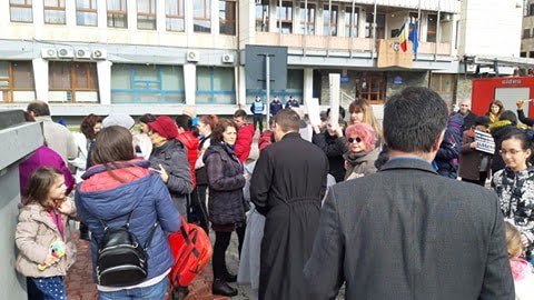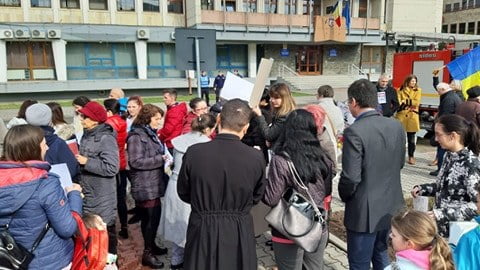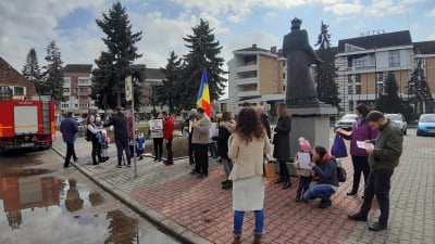 Și la Bistrița, în Piața Petru Rareș, în fața Prefecturii, s-au adunat zeci de oameni. Alături de ei a fost și subprefectul Eugen Curtean, dar și fețe bisericești.