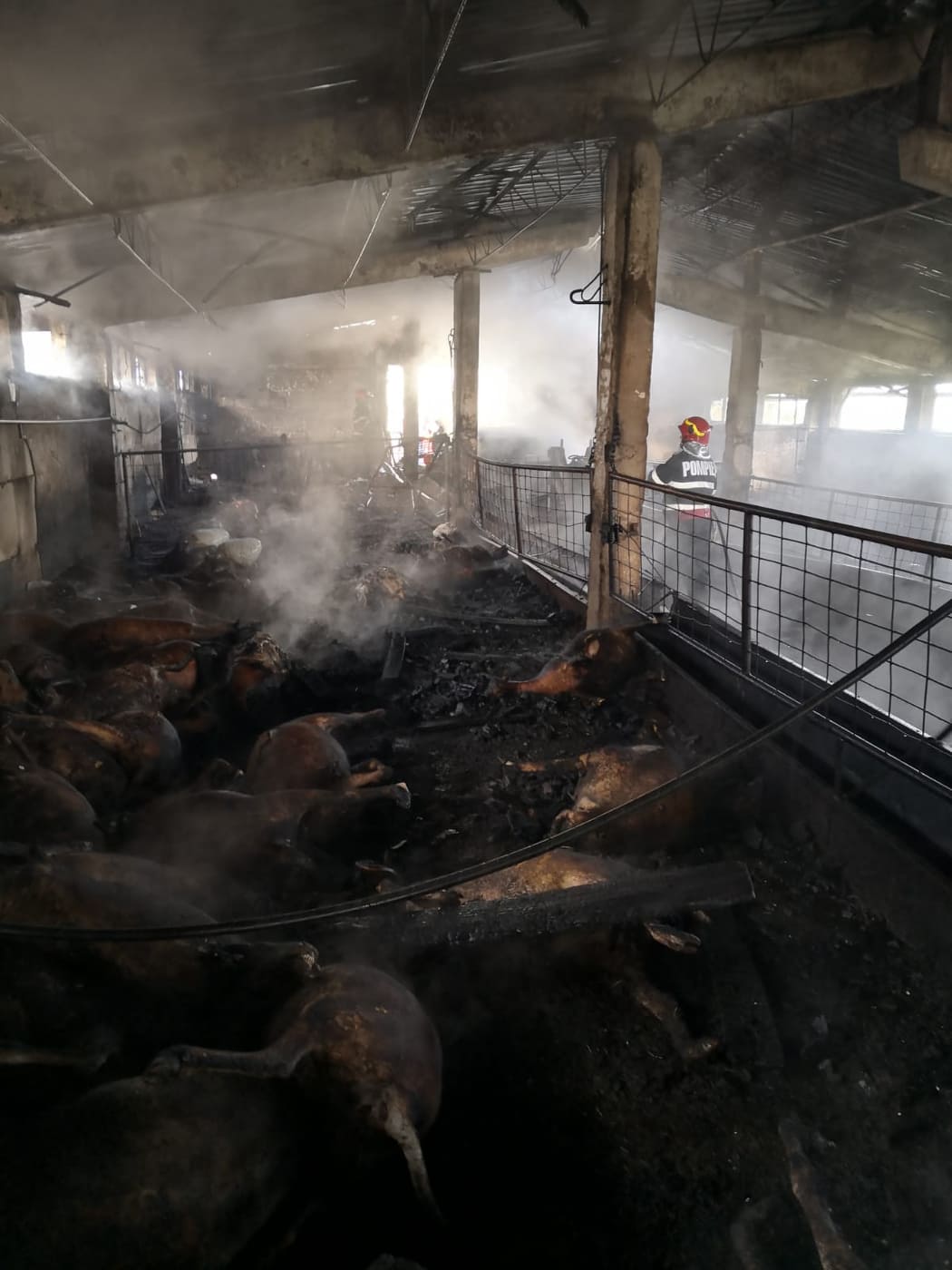 Incendiul s-a extins la o hală cu structură metalică pe o suprafață de aproximativ 150 mp. În hală se aflau miei, au fost evacuați, dar nu în totalitate. Au fost suplimentate forțele cu încă patru ASAS, autoplatforma și EPA”, au anunțat pompierii la scurt timp după ce au ajuns la locul intervenției.