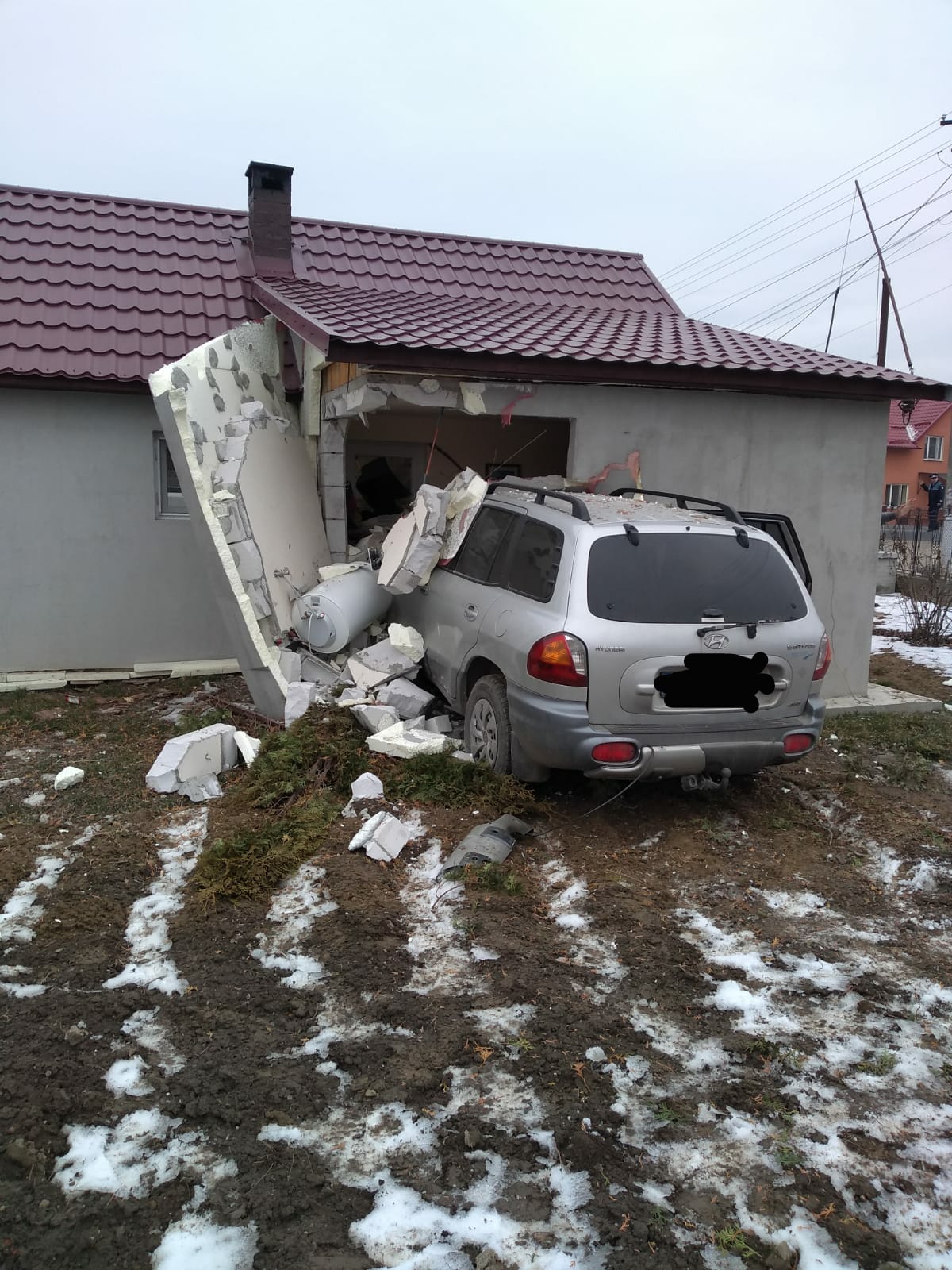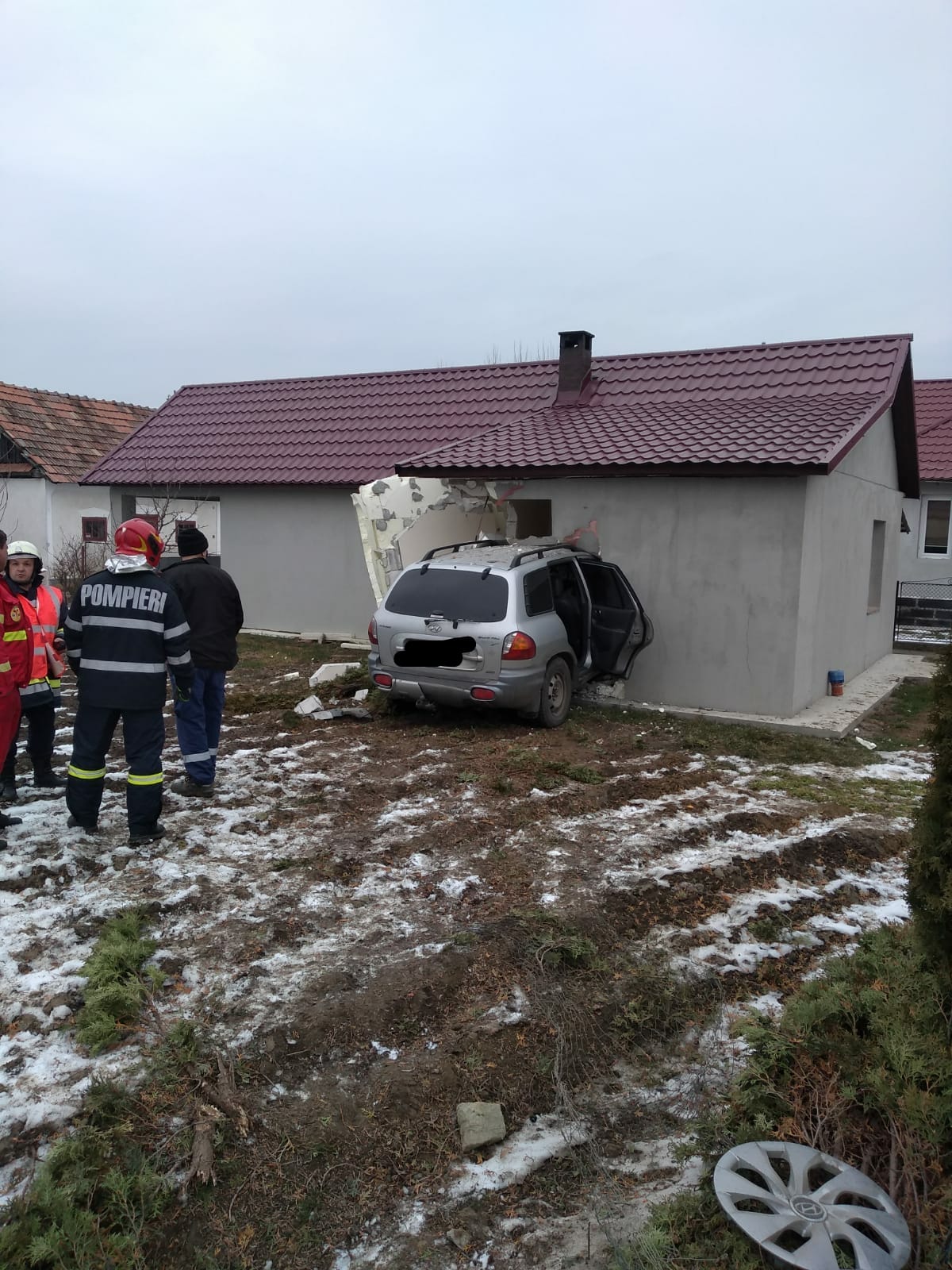Un autoturism a ajuns într-o grădină și apoi în peretele unei case, dărâmându-l. Mașina era condusă de o tânără de 18 ani.