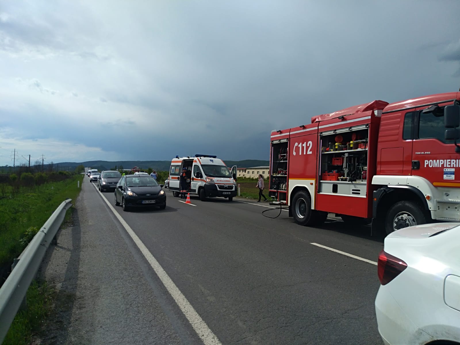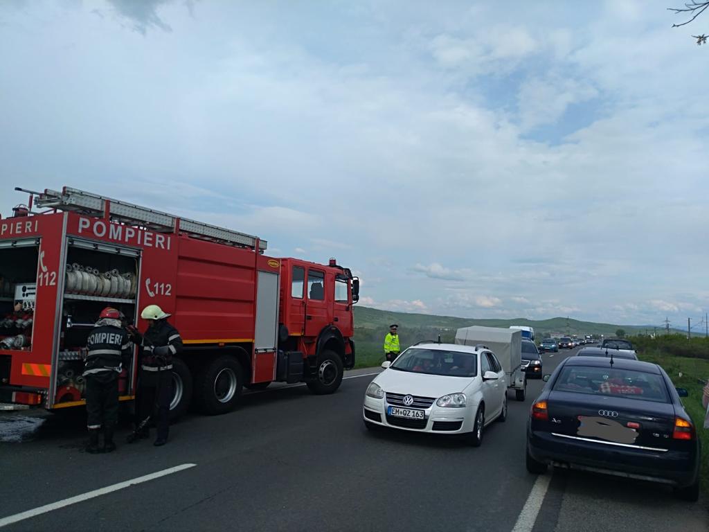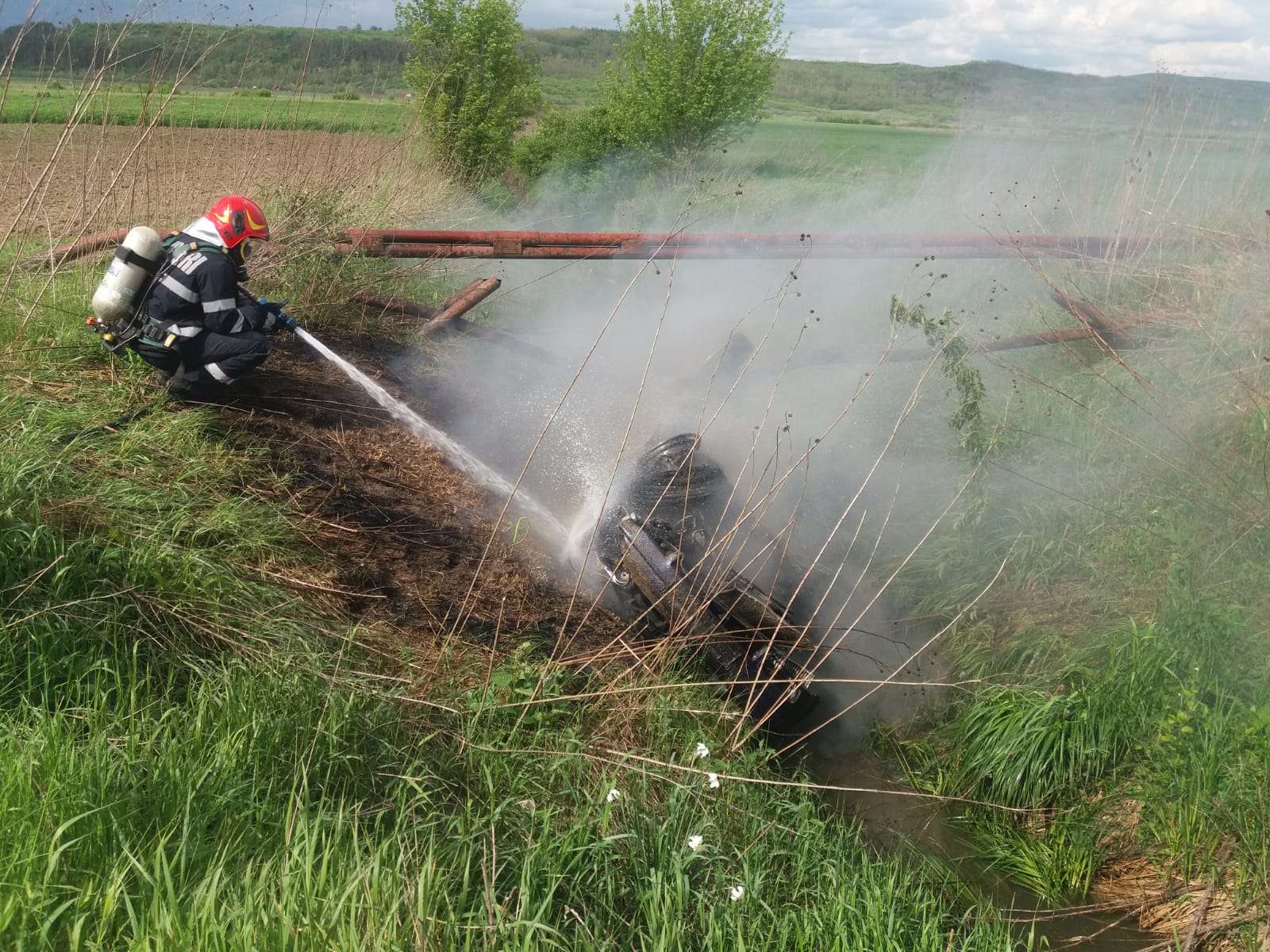 La scurt timp după producerea accidentului, autoturismul a fost cuprins de flăcări.