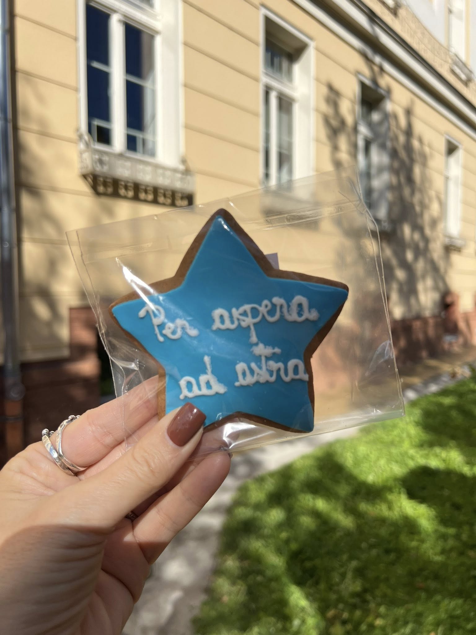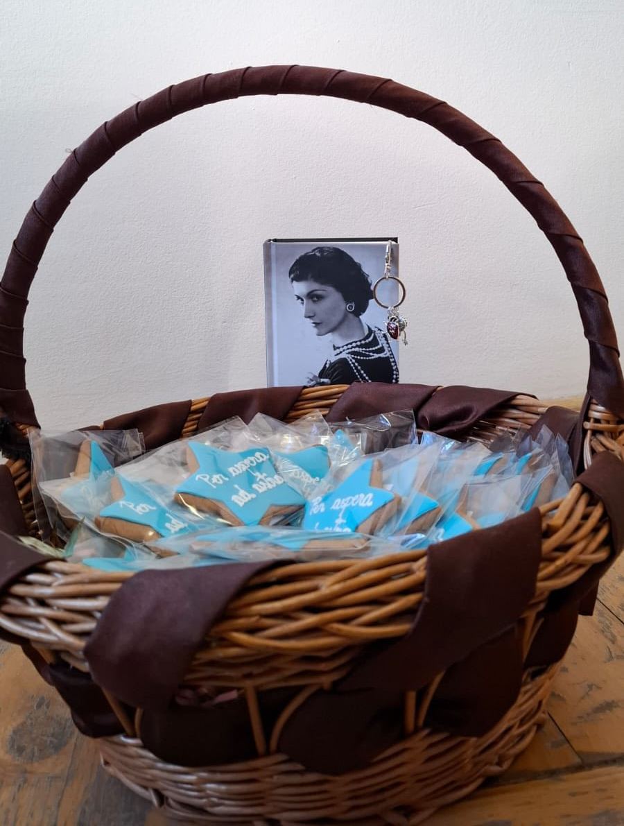 Am primit o stea de turtă dulce cu motto-ul școlii. Și un breloc cu inimă, neuron, creier și formula chimică a cofeinei… Eu am primit și o carte despre viața celebrei Coco Chanel, dar și mici mostre de parfum (ca să fim Vogue ready).
