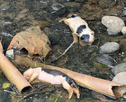 FOTO – ORIBIL: Cățeluși abandonați în râu, la Livezile. Poliția Animalelor a deschis dosar penal, iar vinovatul poate face închisoare până la 7 ani