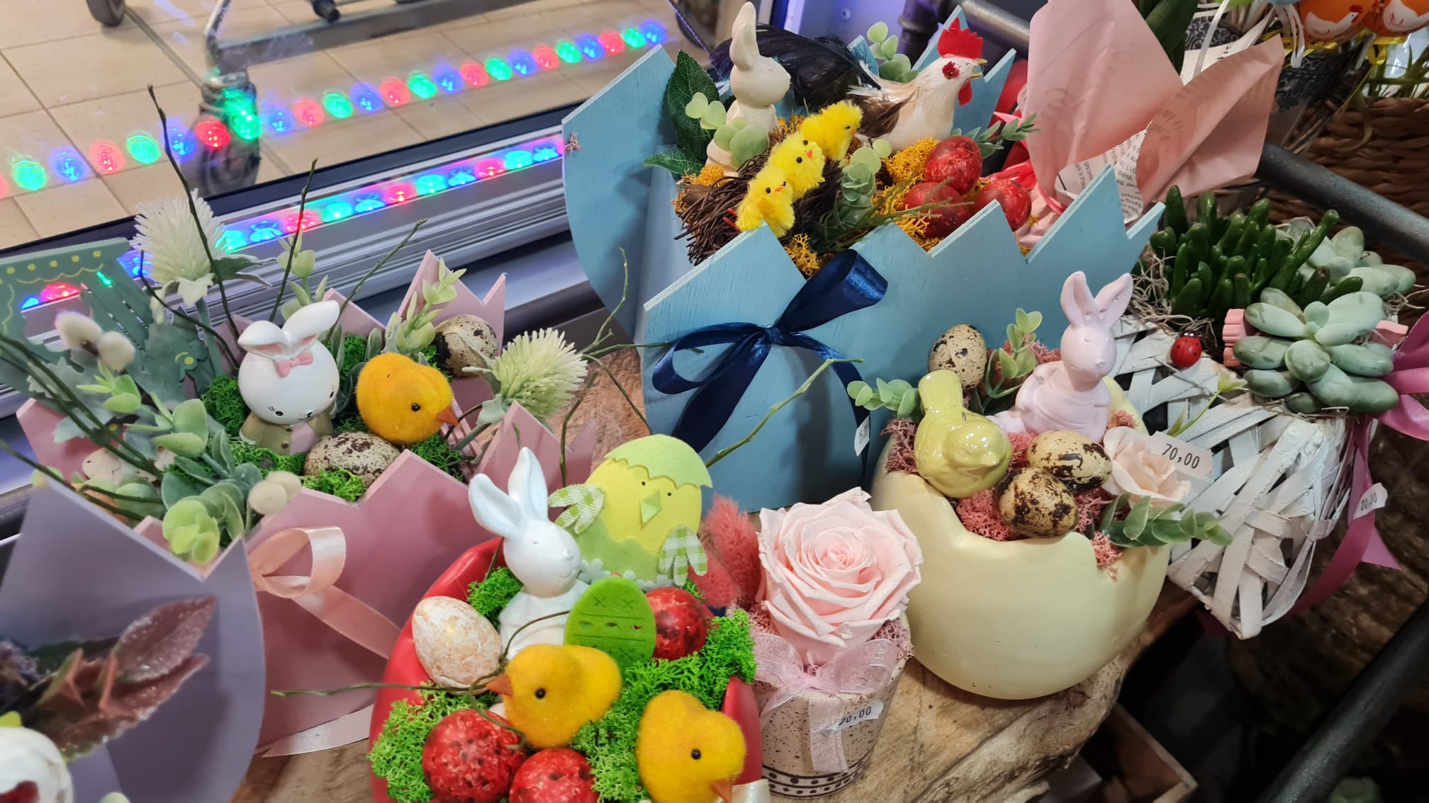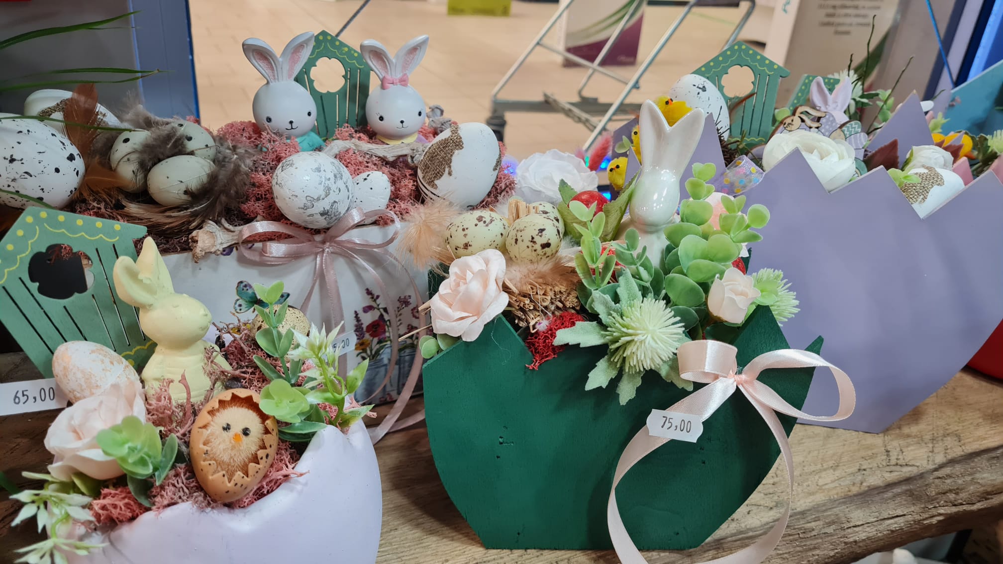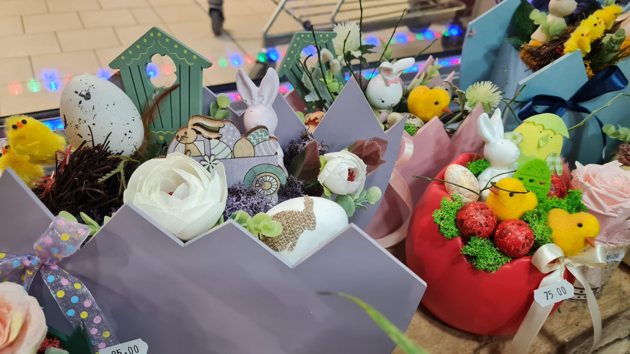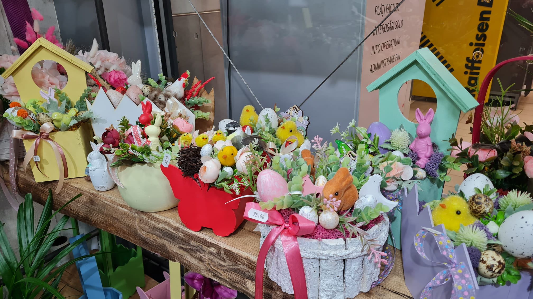 Coșulețe vesele cu puișori și iepurași, care se odihnesc printre flori gingașe. Așa așteaptă sărbătorile pascale Euforia Floral Boutique. Coșulețele și cutiile sunt nelipsite din oferta florăriei, fiind folosite și pentru decorațiunile de Paște, după ce au făcut senzație de 8 Martie și de Crăciun.