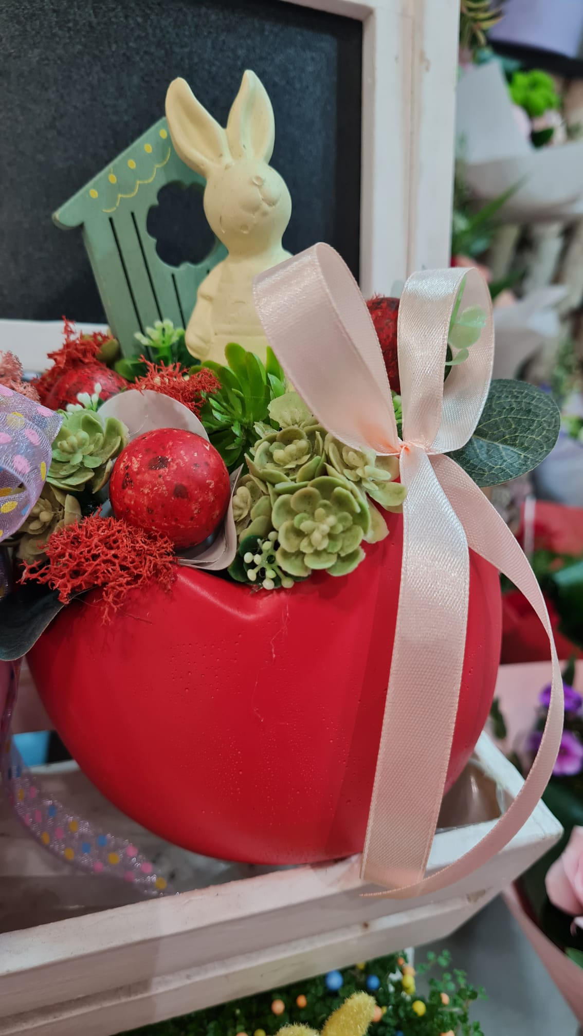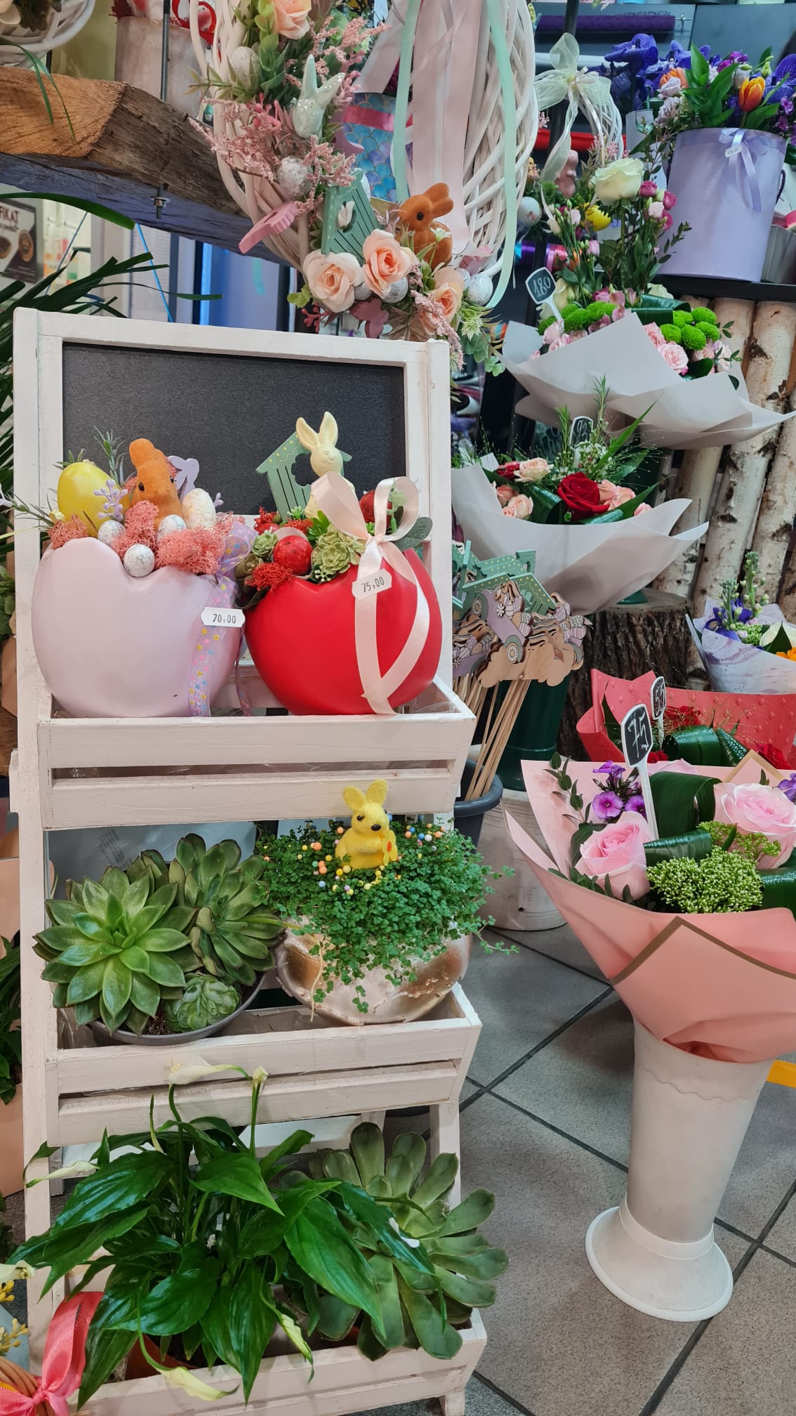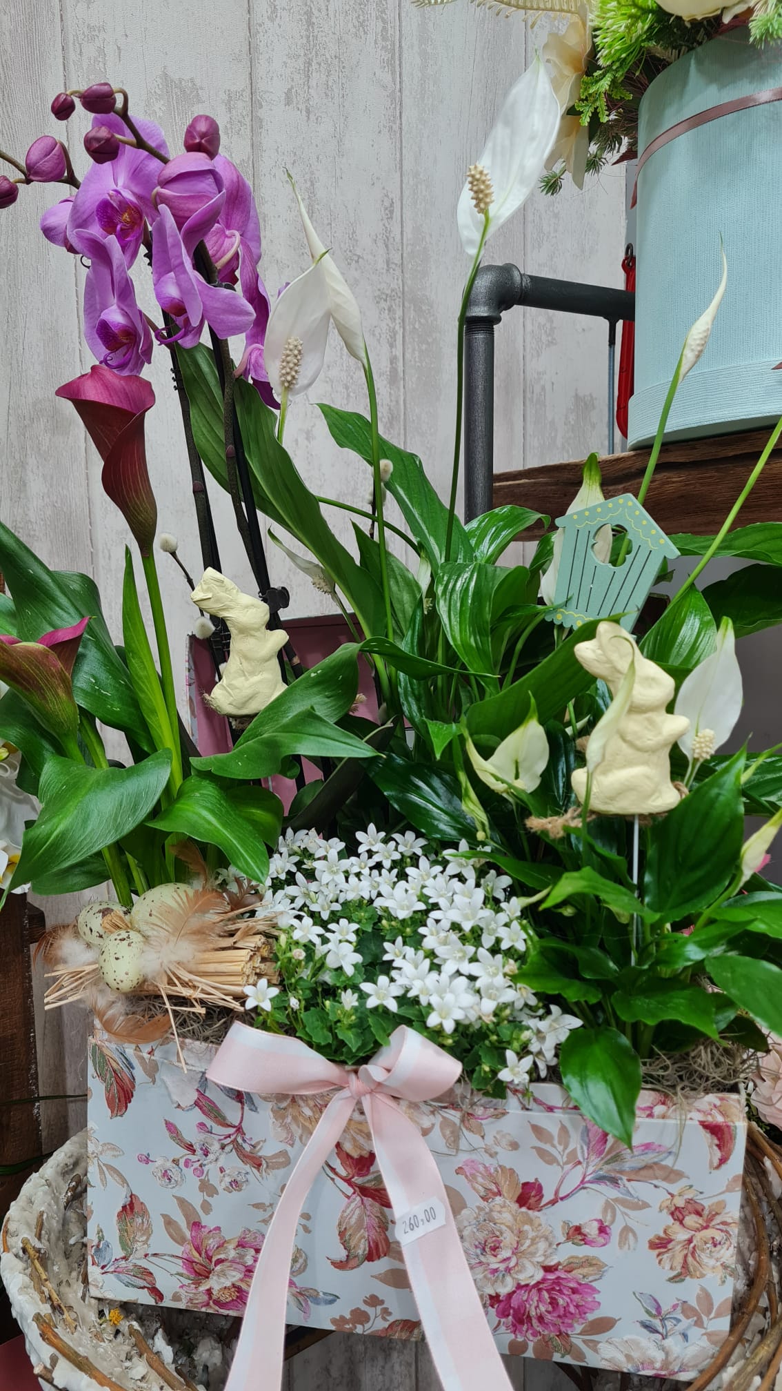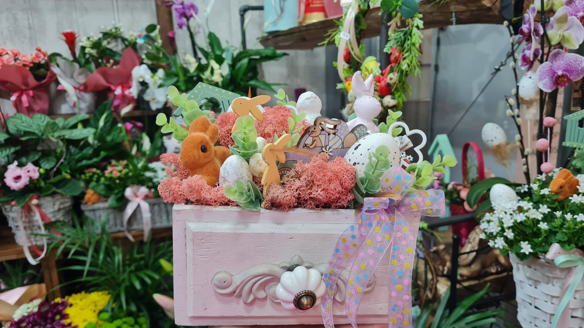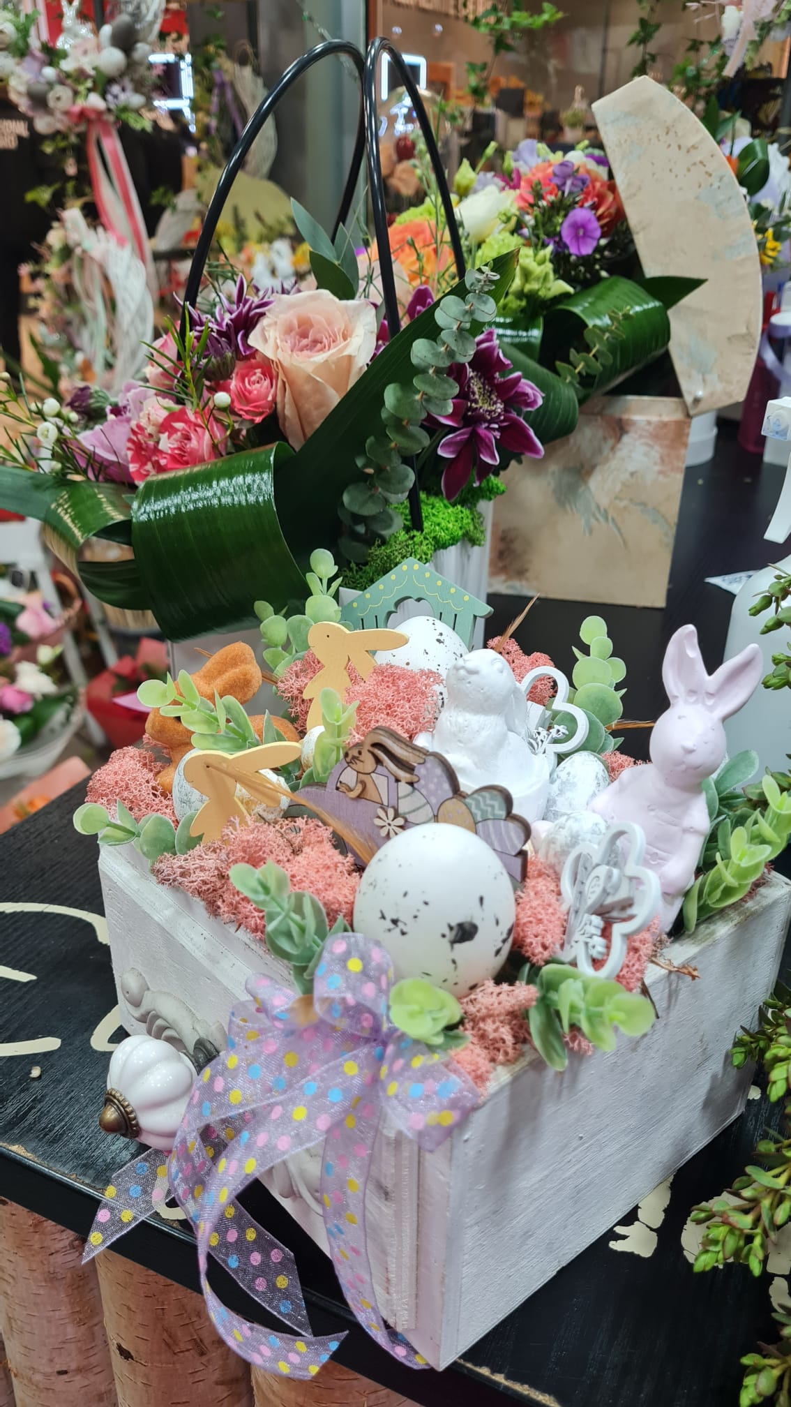 Coșulețe vesele cu puișori și iepurași, care se odihnesc printre flori gingașe. Așa așteaptă sărbătorile pascale Euforia Floral Boutique. Coșulețele și cutiile sunt nelipsite din oferta florăriei, fiind folosite și pentru decorațiunile de Paște, după ce au făcut senzație de 8 Martie și de Crăciun.
