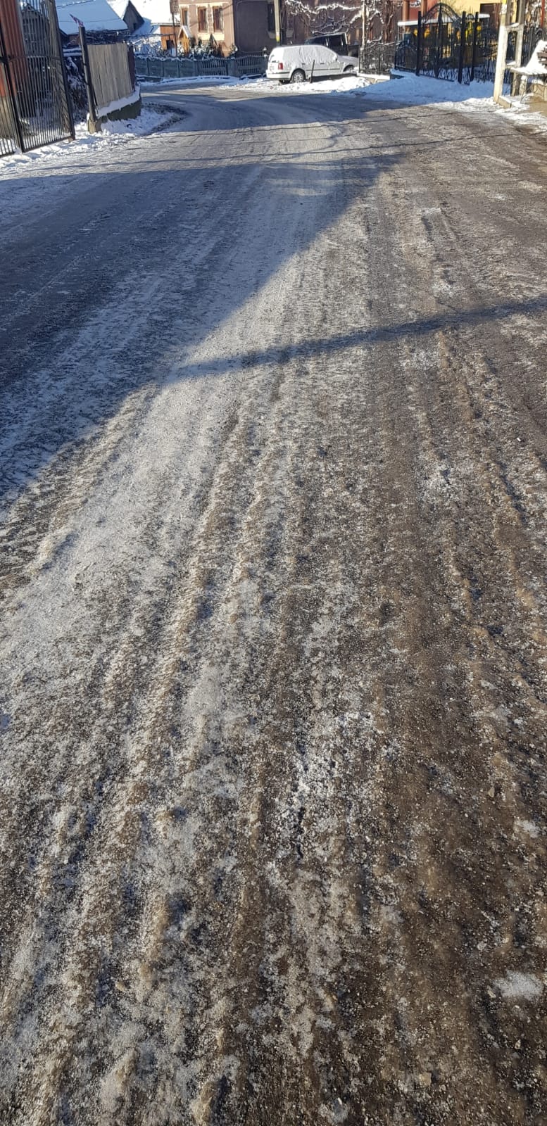 Ninsoarea s-a oprit și temperaturile au scăzut bine de tot, făcând ca zăpada să înghețe. Unele zone s-au transformat în patinoar. Din nefericire, chiar și carosabilul. Este și situația de pe Valea Șieului.
