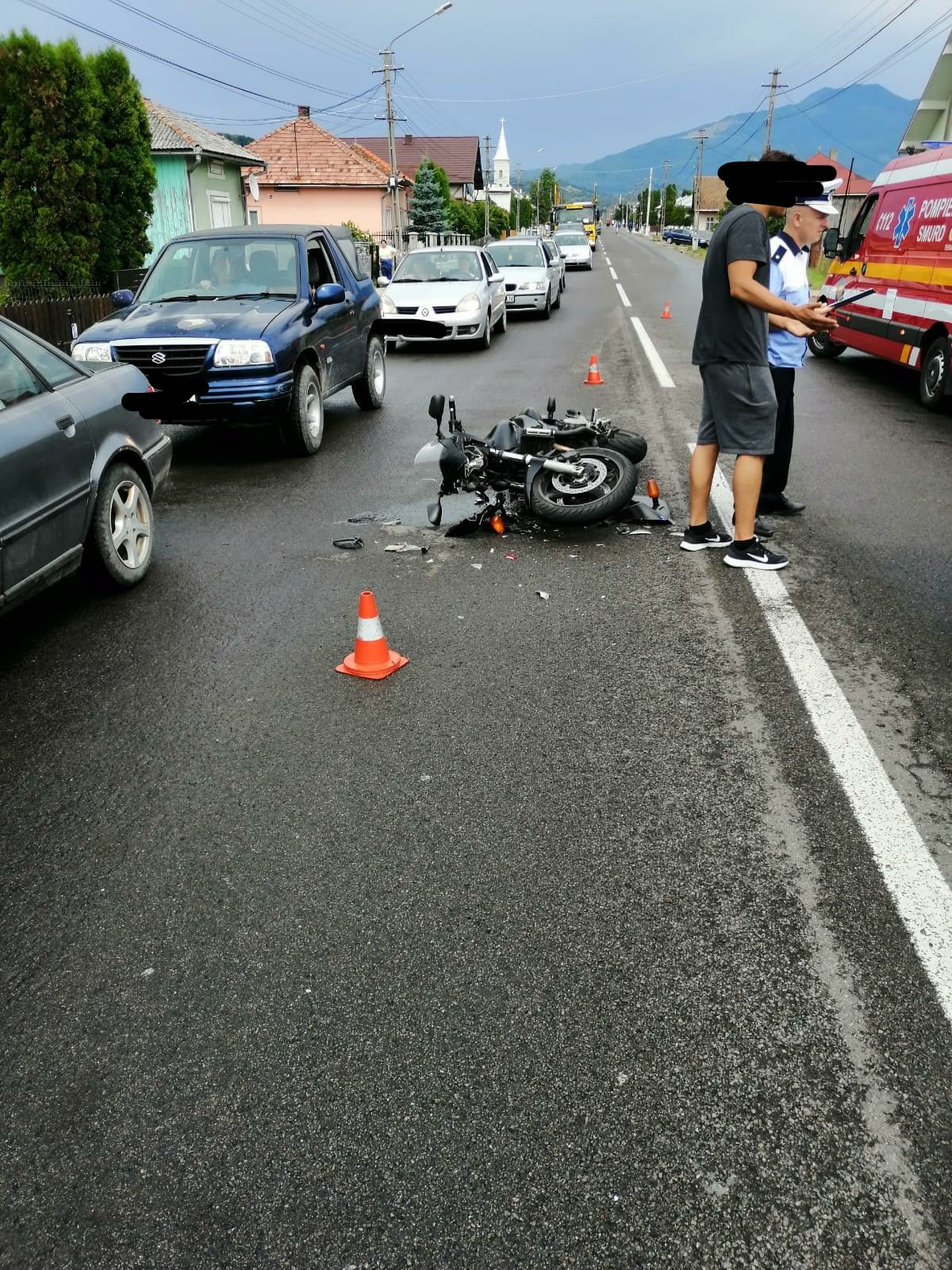 Alte două motociclete au fost implicate într-un accident în urmă cu câteva minute în localitatea Tiha Bârgăului. Din primele informații de la fața locului reiese că cele două motociclete au intrat în coliziune cu un autoturism care circula pe direcția Vatra Dornei – Bistrița și care era oprit pentru efectuarea unui viraj la stânga. Victimele implicate în accident sunt conștiente.