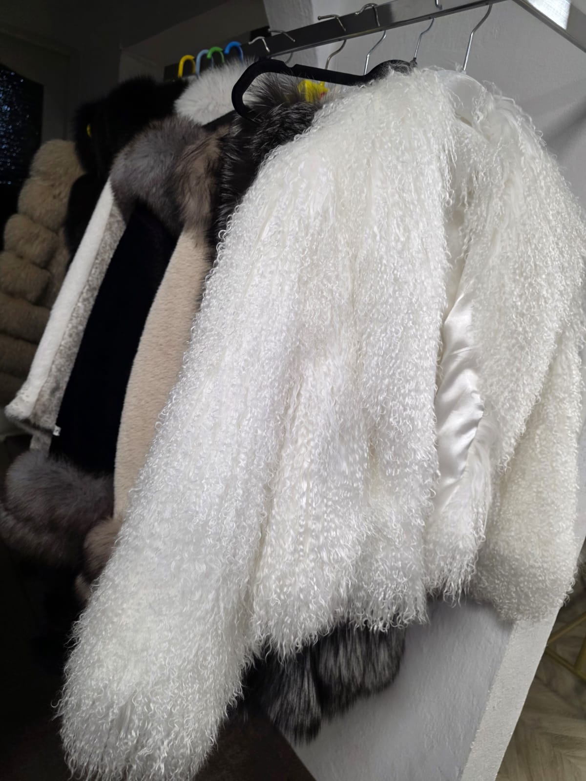 Printre tinere sunt la modă de ceva vreme hainele de blană scurte, în diferite culori și modele. Le găsiți pe toate tot la ei. Și pentru că de ceva vreme sunt la mare modă hainele de blană din miel tibetan (cu fir lung, creț – haina albă din foto) evident că nu putea să lipsească din oferta lor.
