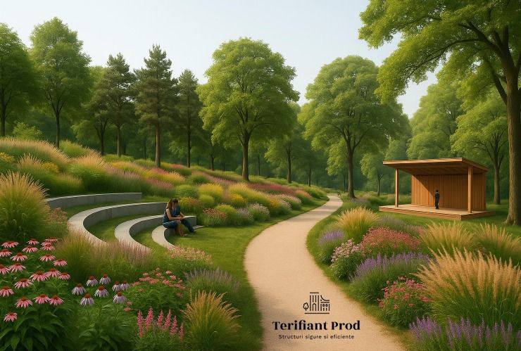 Va fi amenajată inclusiv o parcare cu 250–300 locuri. Proiectul prevede și o centrală fotovoltaică (~100 kW), rețea electrică proprie, dimensionată pentru funcționare eficientă, precum și utilizarea responsabilă a resurselor locale de apă.