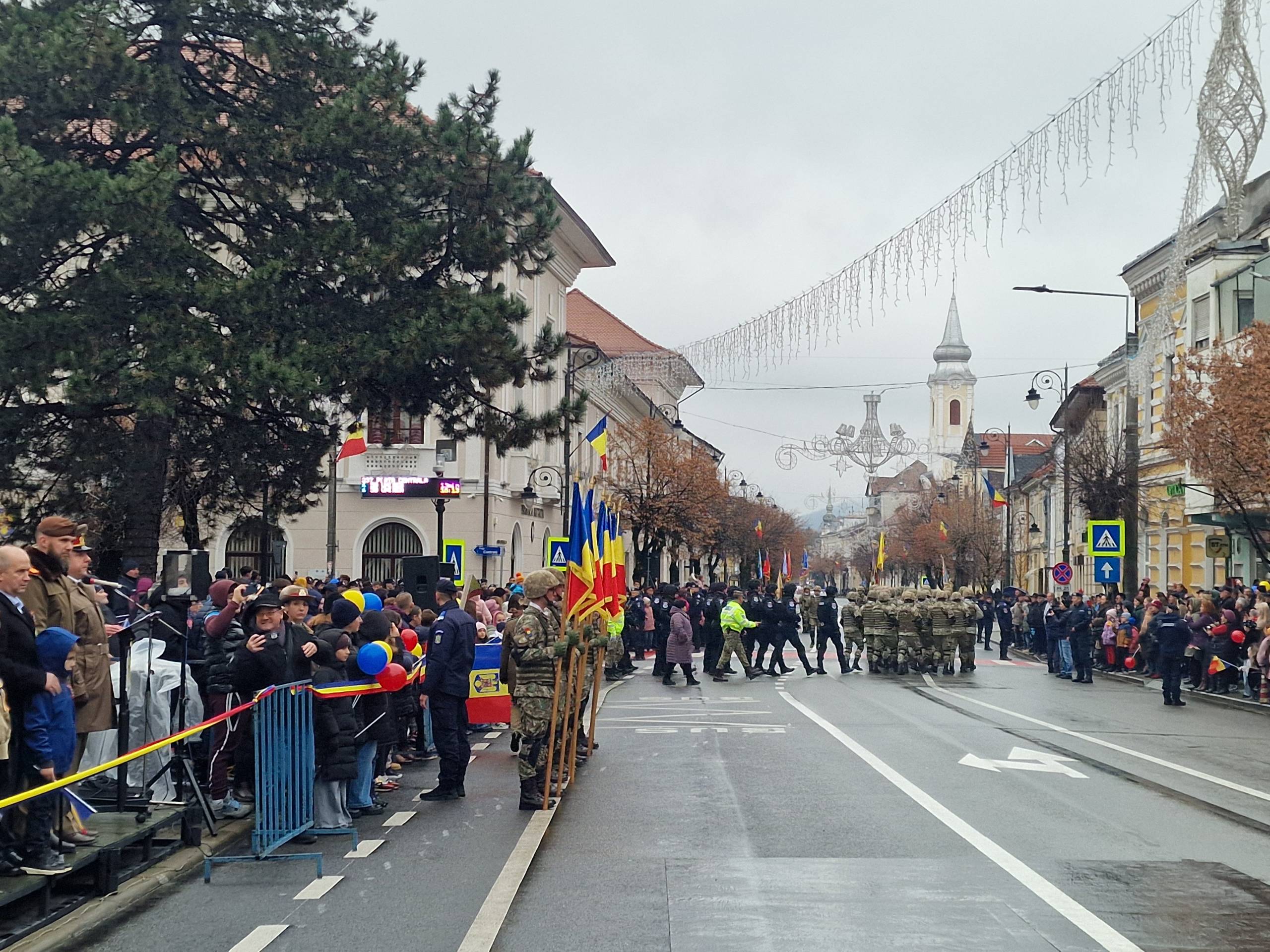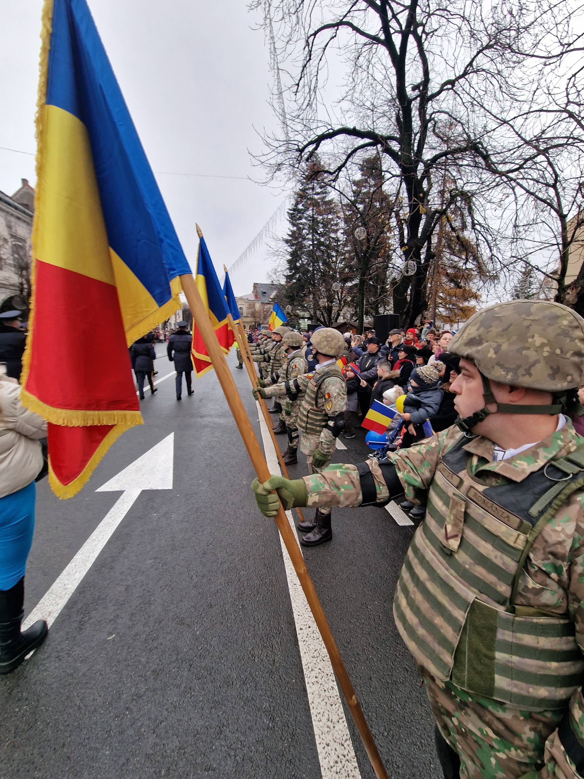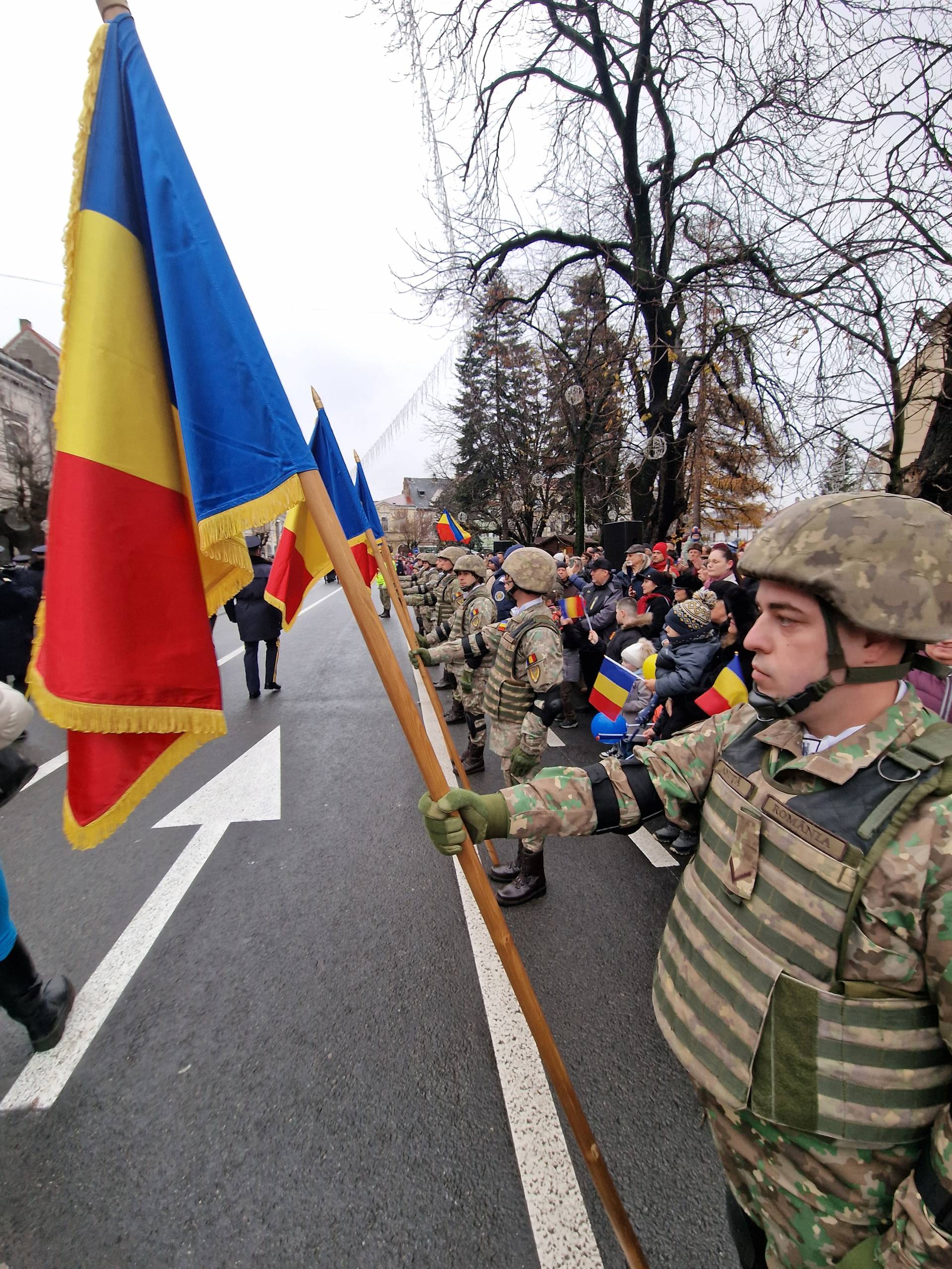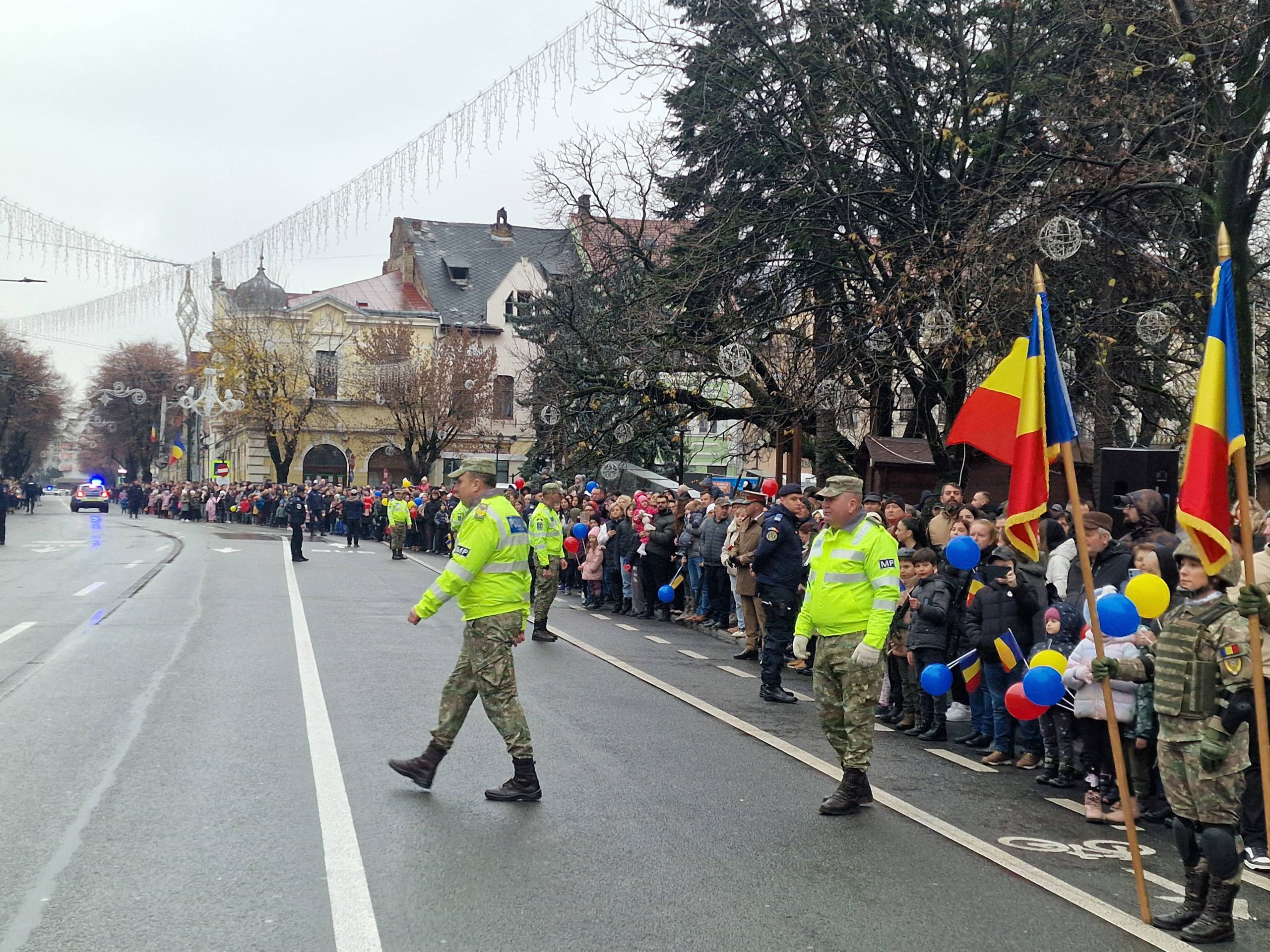 FOTO – REPORTAJ: Picurii de ploaie nu au speriat sutele de bistrițeni veniți să vadă parada de 1 Decembrie