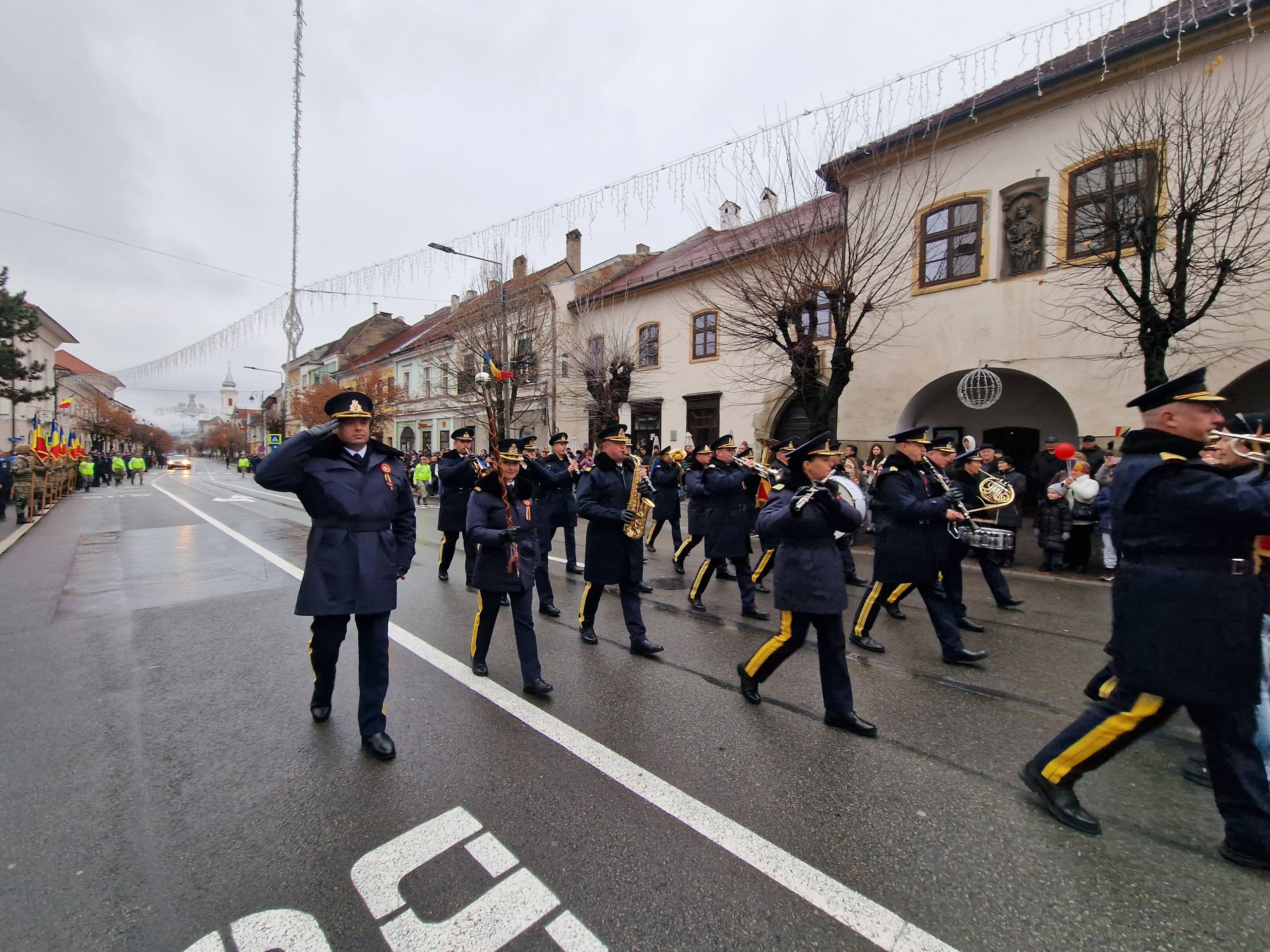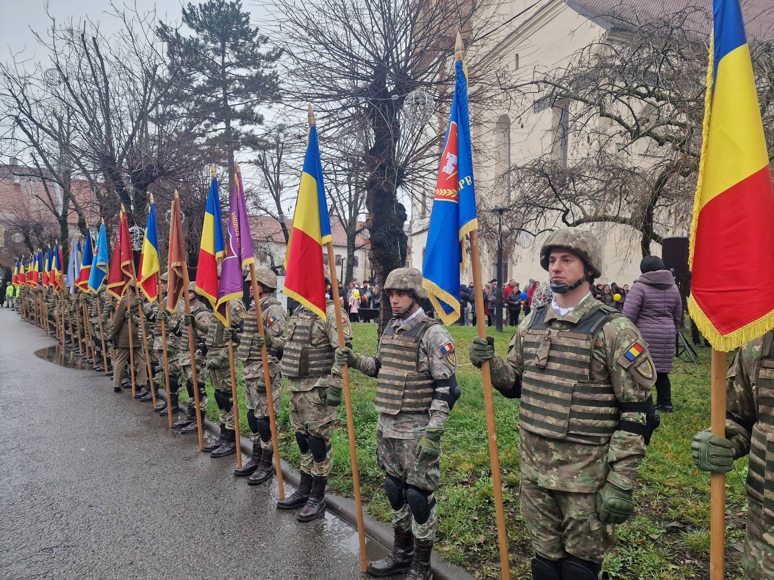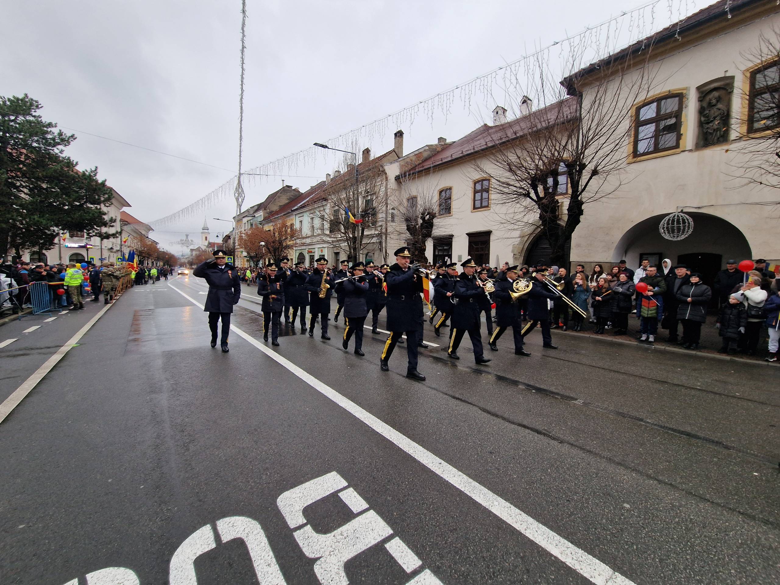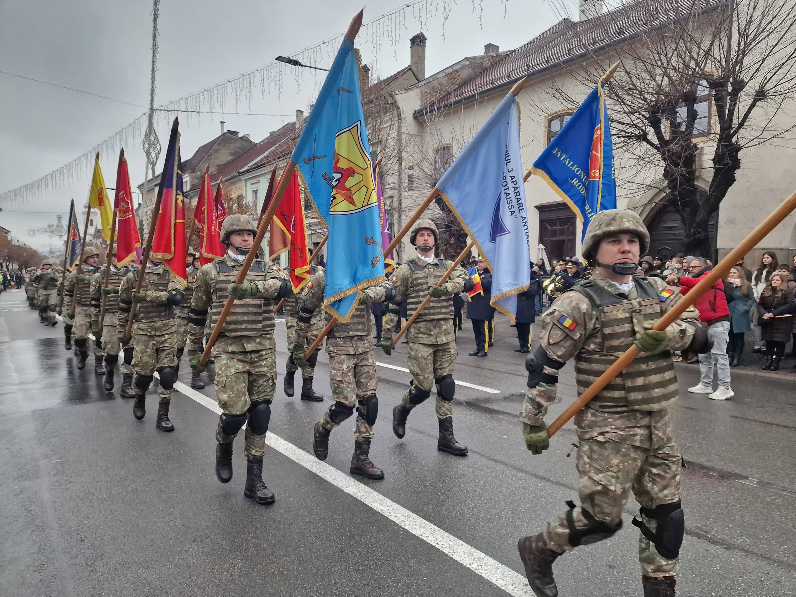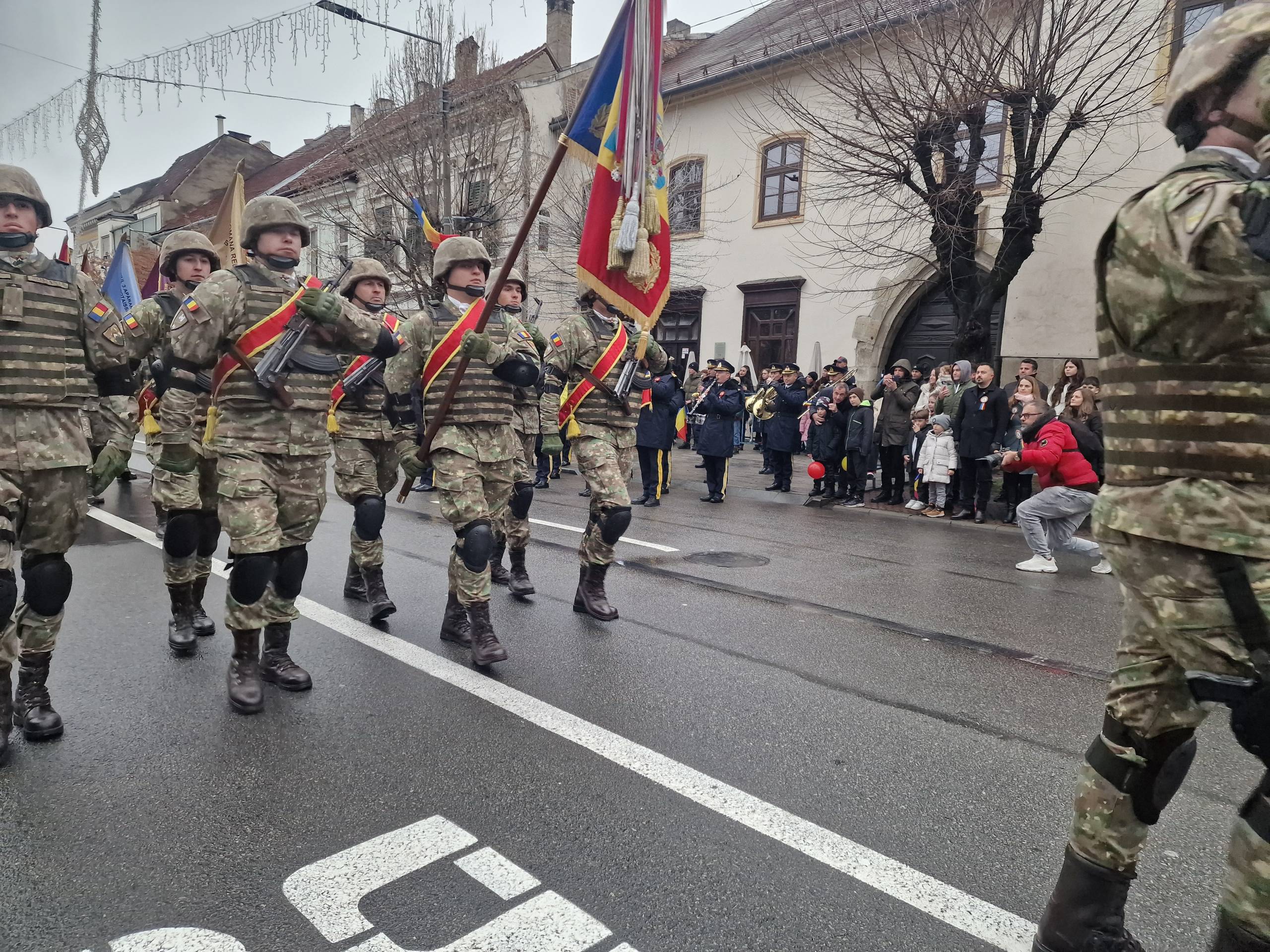 FOTO – REPORTAJ: Picurii de ploaie nu au speriat sutele de bistrițeni veniți să vadă parada de 1 Decembrie