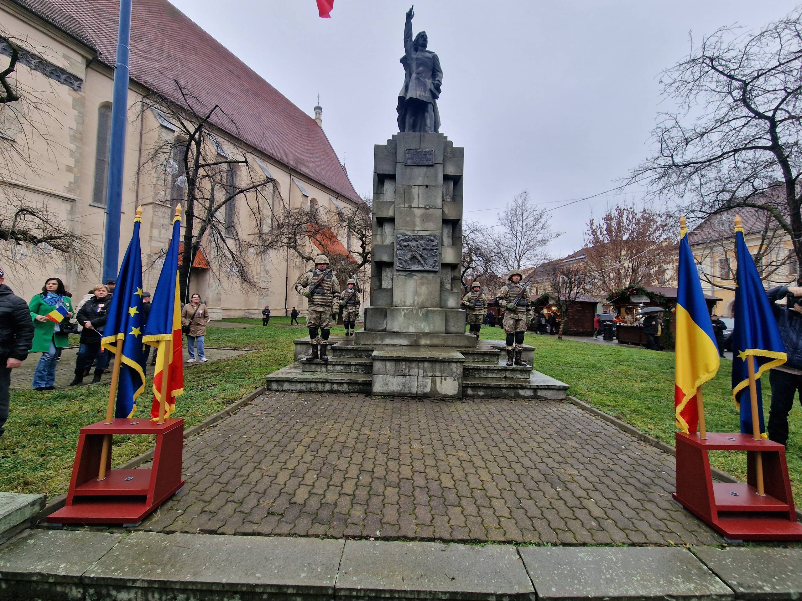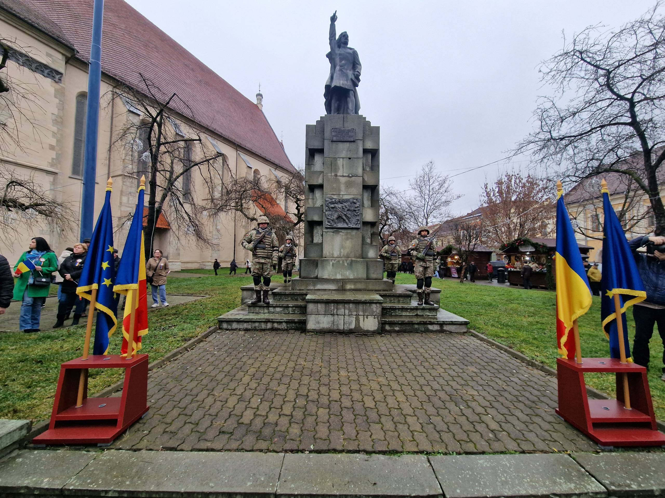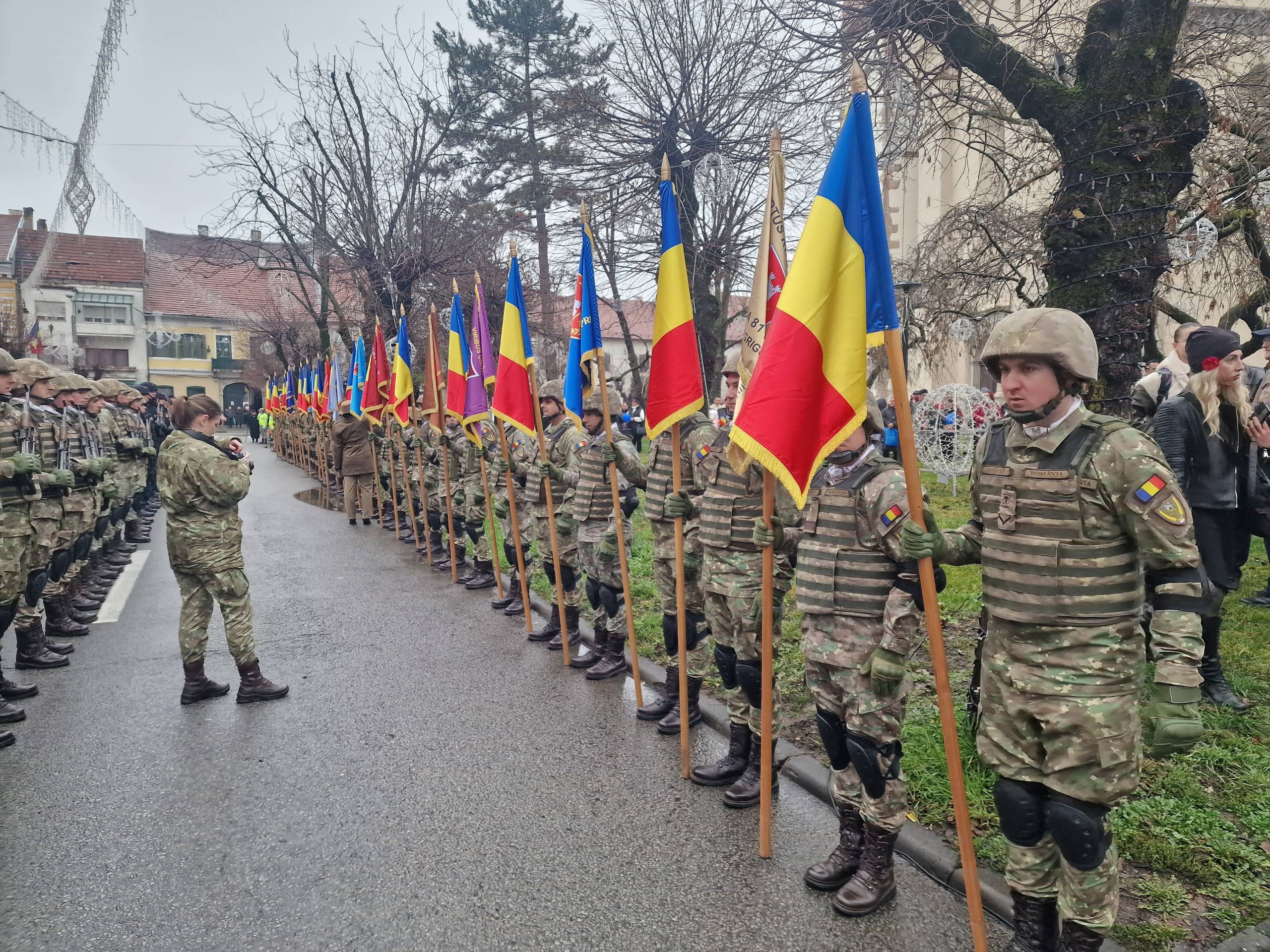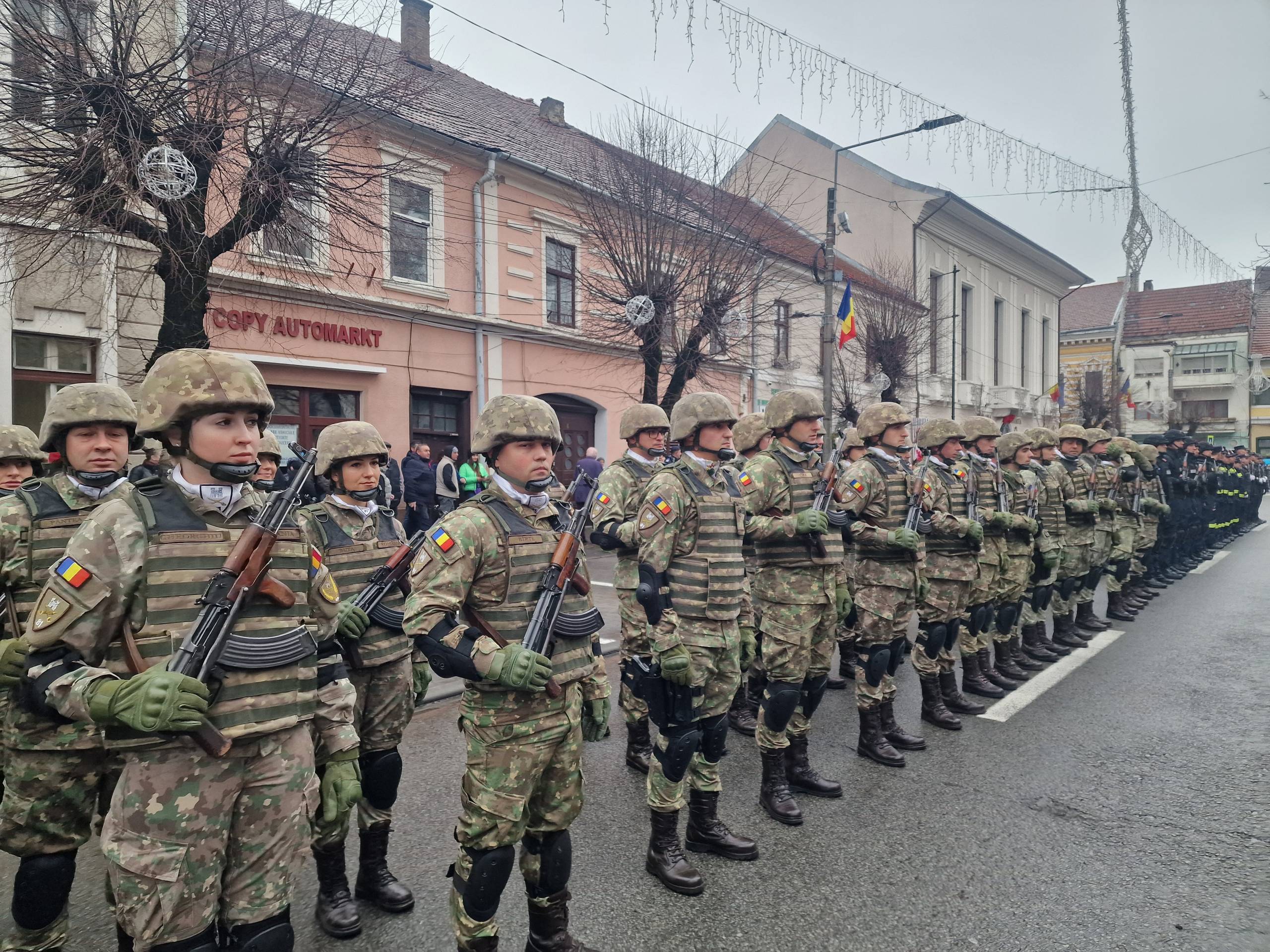 FOTO – REPORTAJ: Picurii de ploaie nu au speriat sutele de bistrițeni veniți să vadă parada de 1 Decembrie