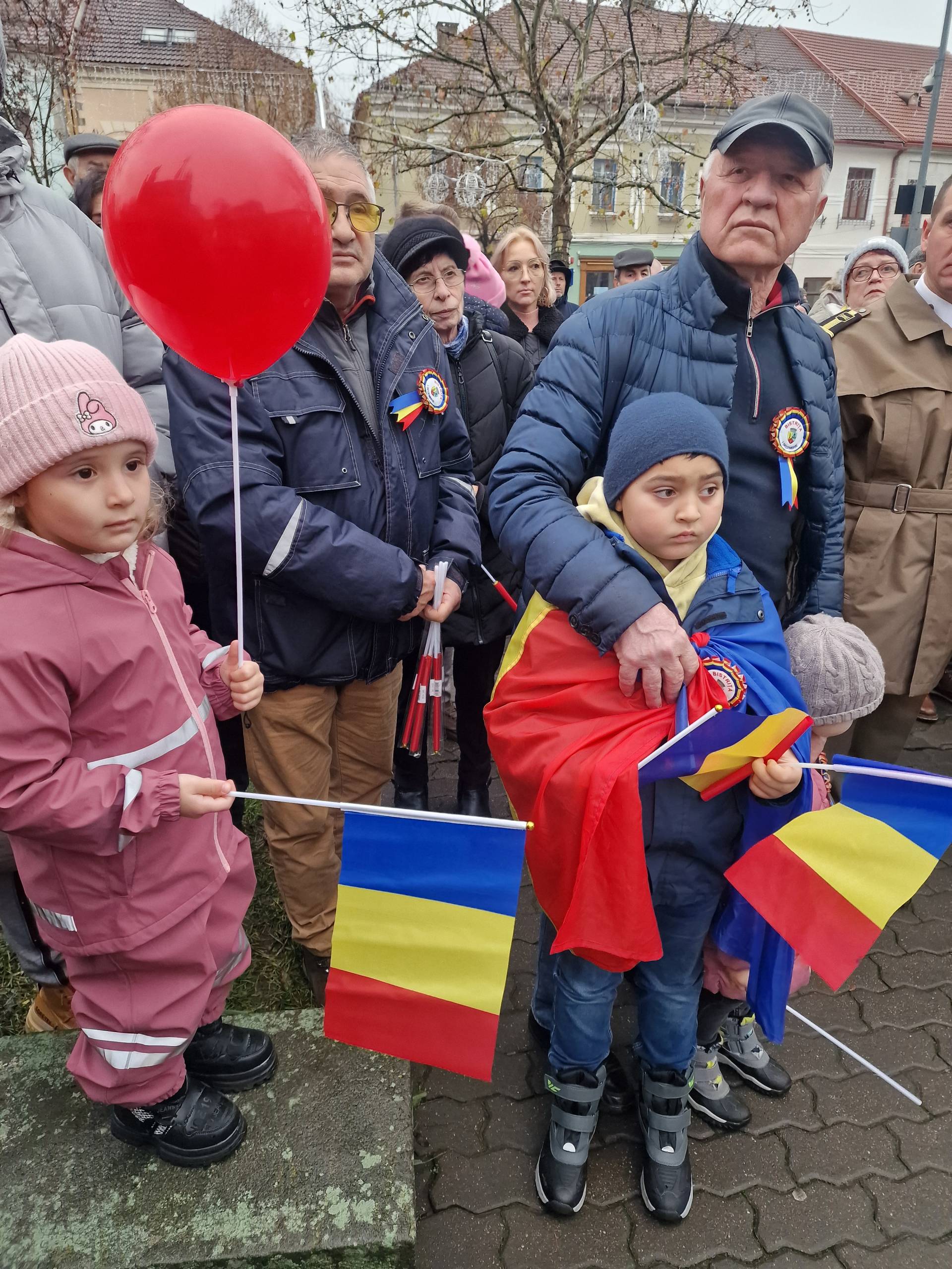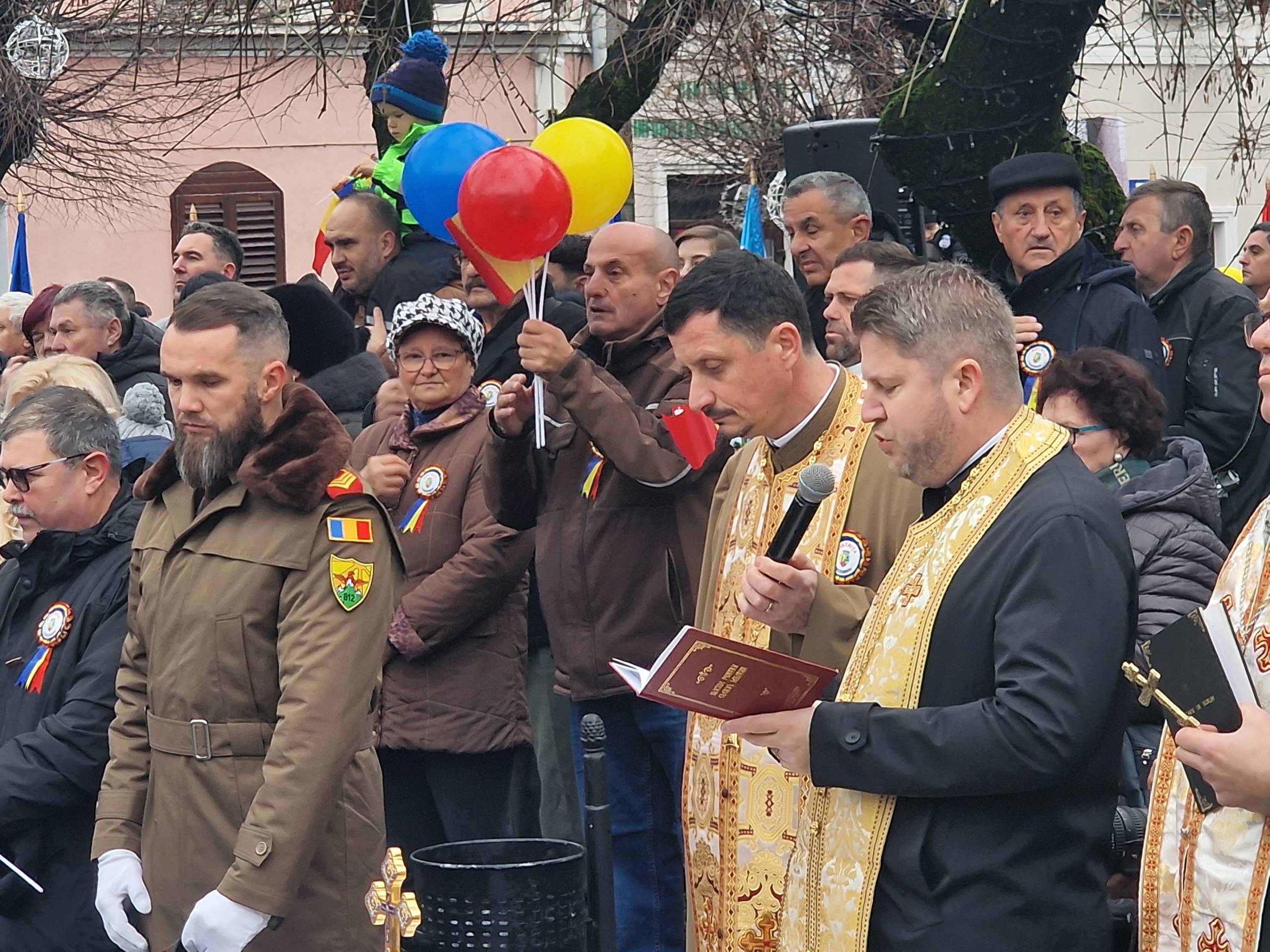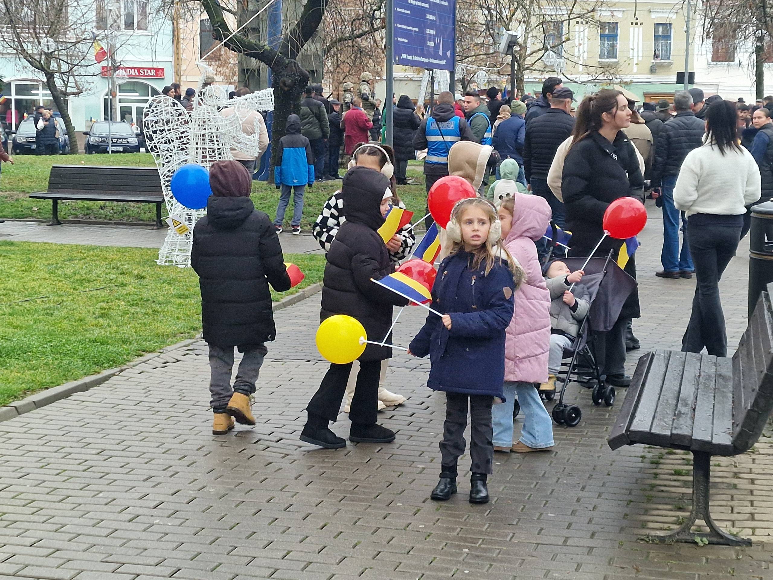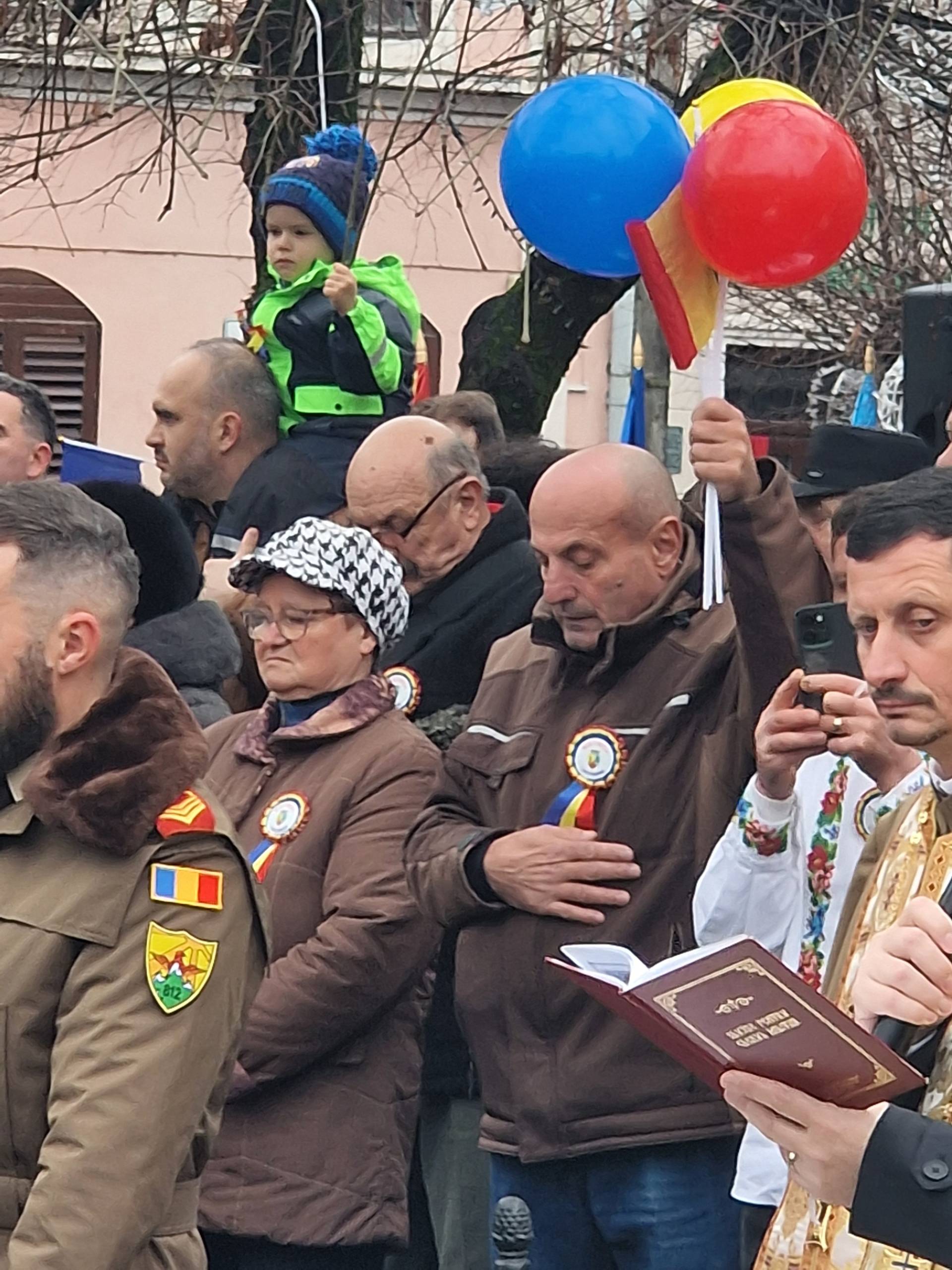 Cu mic, cu mare, purtând tricolorul în piept, pe căciulă, înfășurat în jurul gâtului, în baloane sau stegulețe, copii, adulți și bătrâni s-au bucurat de ocazia de a sărbători împreună. Au fost atenți la momentul când s-a dat onorul, au intonat imnul României, s-au rugat pentru țară, au ascultat mesajele din partea premierului Ilie Bolojan, transmis prin prefectul Teofil Cioarbă și mesajul ministrului Energiei, Bogdan Ivan.