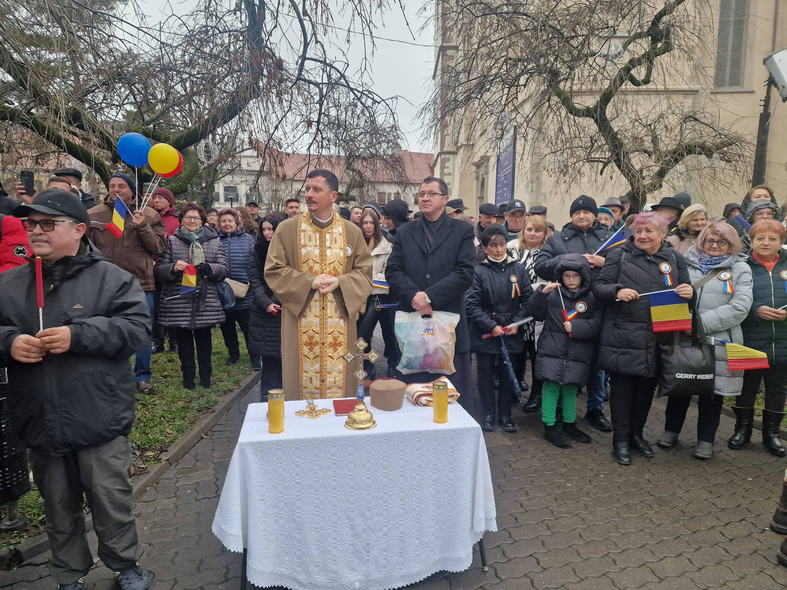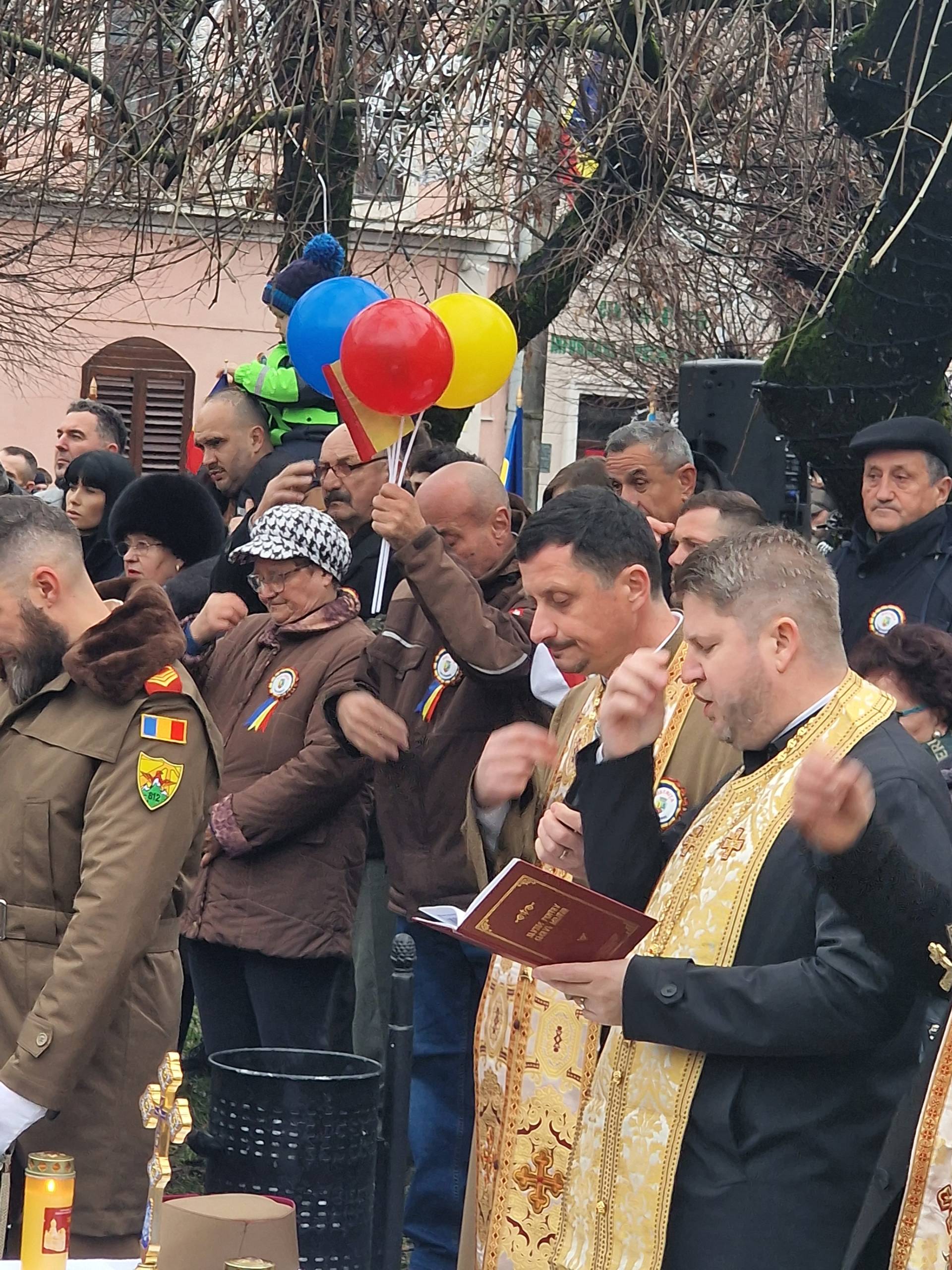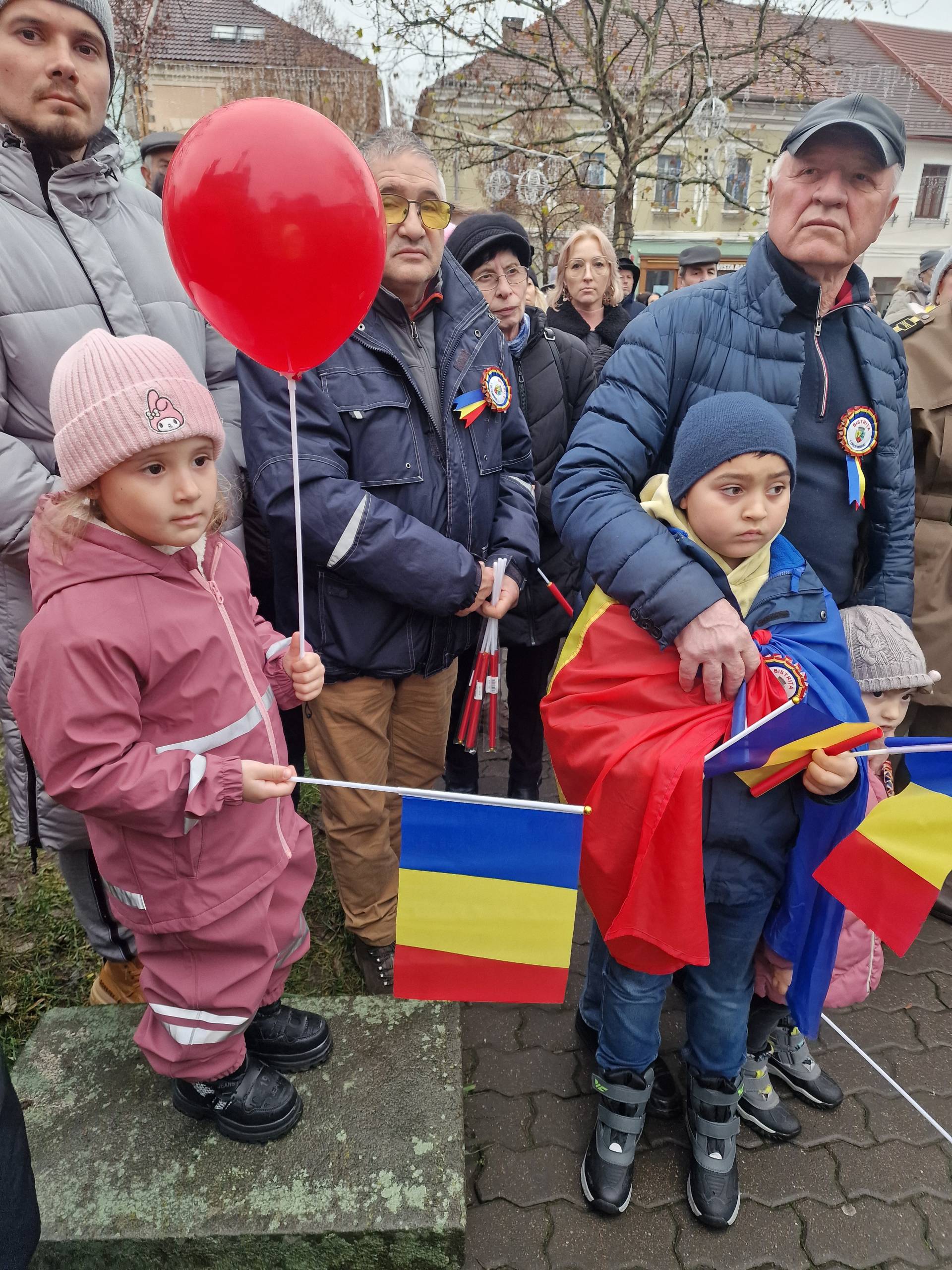 Cu mic, cu mare, purtând tricolorul în piept, pe căciulă, înfășurat în jurul gâtului, în baloane sau stegulețe, copii, adulți și bătrâni s-au bucurat de ocazia de a sărbători împreună. Au fost atenți la momentul când s-a dat onorul, au intonat imnul României, s-au rugat pentru țară, au ascultat mesajele din partea premierului Ilie Bolojan, transmis prin prefectul Teofil Cioarbă și mesajul ministrului Energiei, Bogdan Ivan.