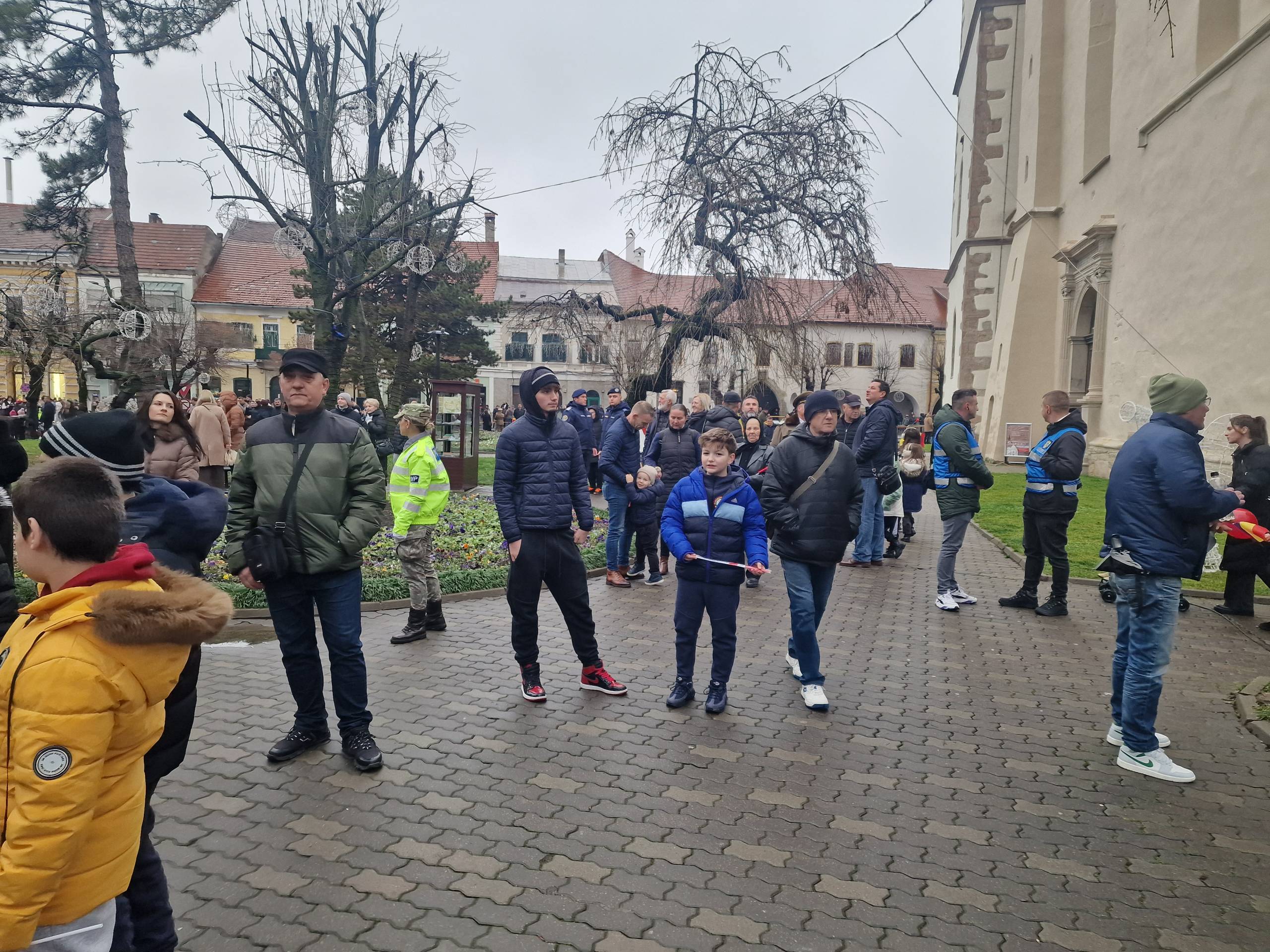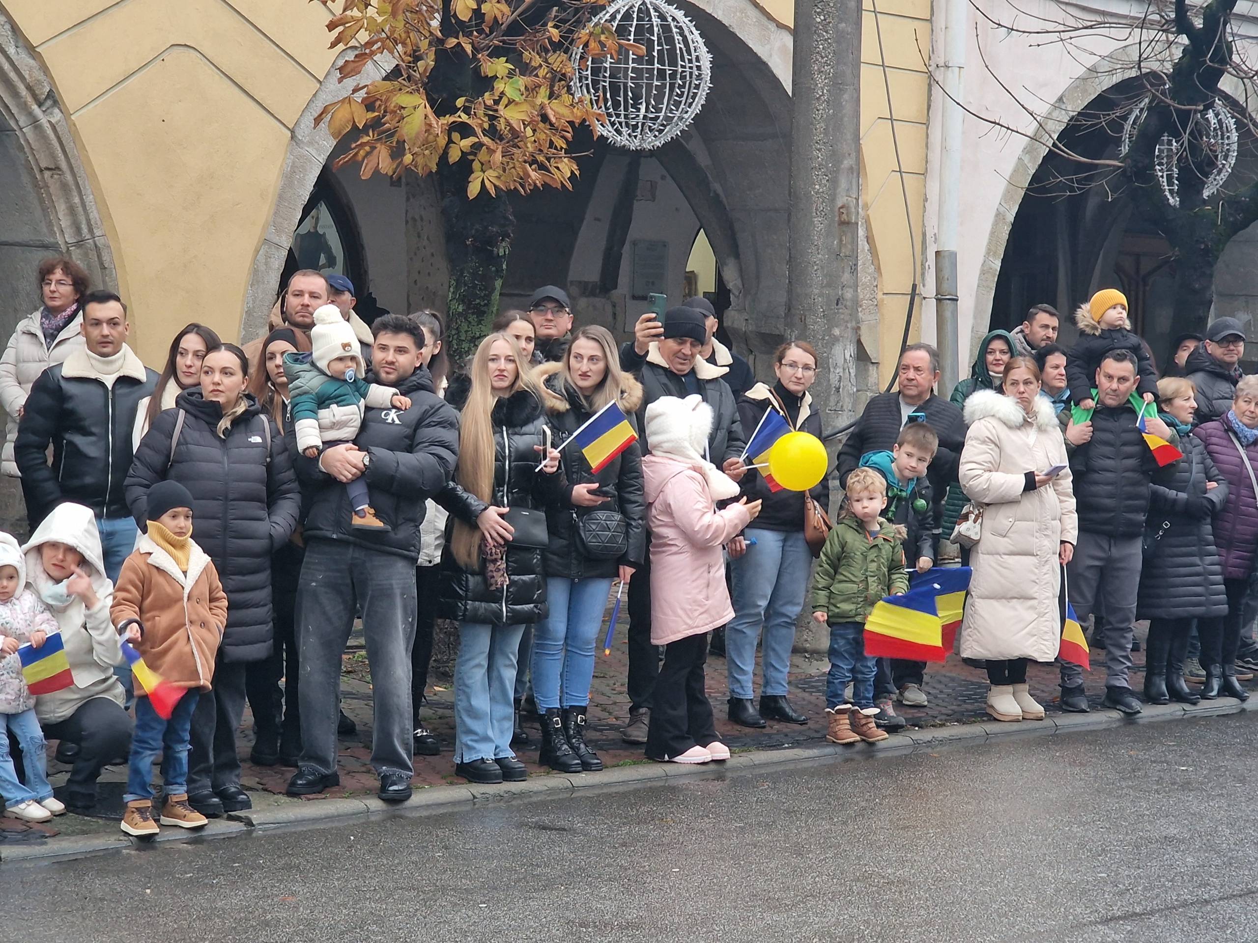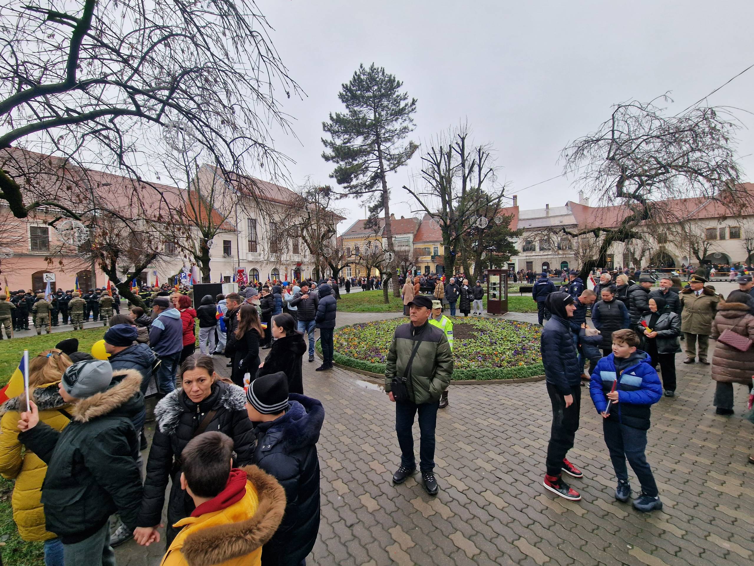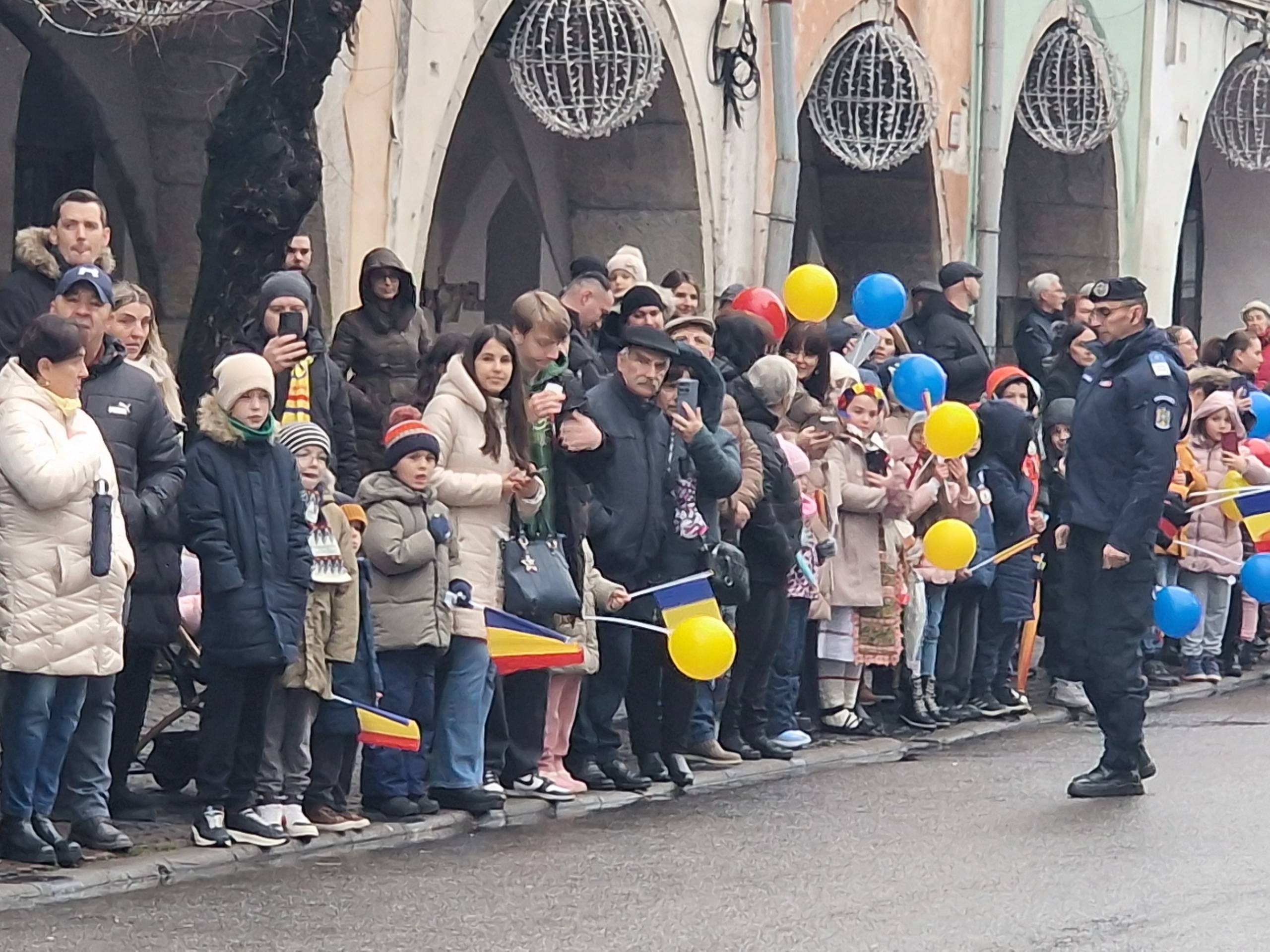 Cu mic, cu mare, purtând tricolorul în piept, pe căciulă, înfășurat în jurul gâtului, în baloane sau stegulețe, copii, adulți și bătrâni s-au bucurat de ocazia de a sărbători împreună. Au fost atenți la momentul când s-a dat onorul, au intonat imnul României, s-au rugat pentru țară, au ascultat mesajele din partea premierului Ilie Bolojan, transmis prin prefectul Teofil Cioarbă și mesajul ministrului Energiei, Bogdan Ivan.