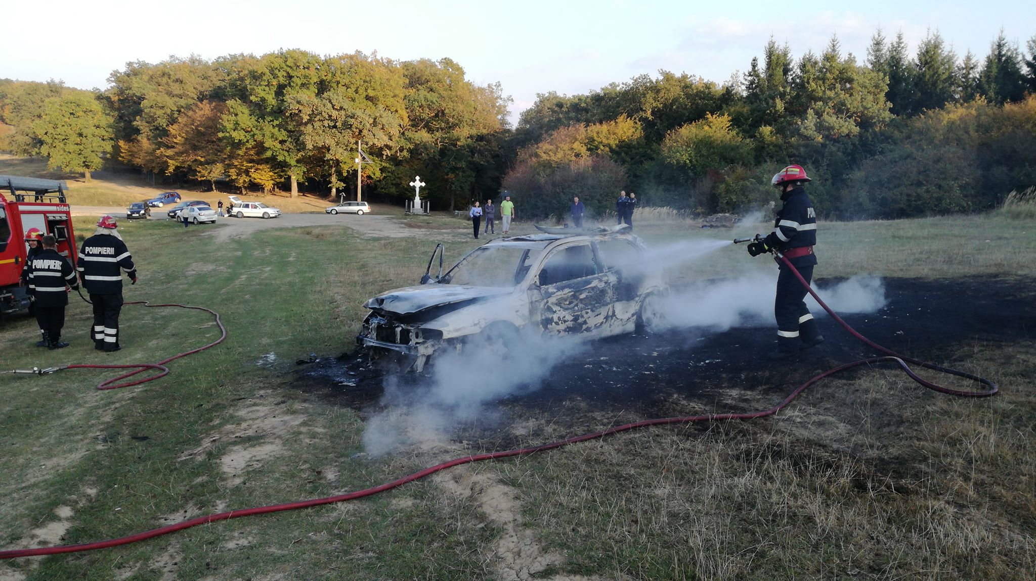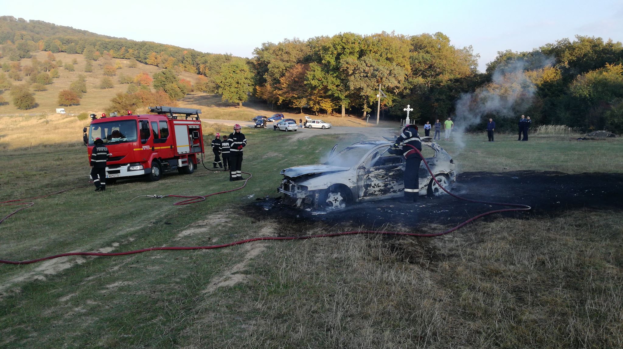 Cum nu a ajuns la niciun consens cu tânăra, șoferul a dus mașina la câțiva zeci de metri depărtare, a luat o canistră cu benzină din portbagaj și a dat foc mașinii. Aceasta a ars ca o torță, având nevoie de intervenția pompierilor.