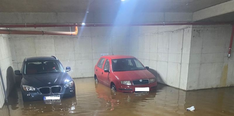 Parcarea din Ștefan cel Mare, de pe Aleea Pandurilor, pentru care administrația Turc a plătit aproape un milion de euro, a fost inundată! Oamenii din zonă au semnalat pentru ziarul local Bistrițeanul.ro că în subsol s-ar fi spart un hidrant.