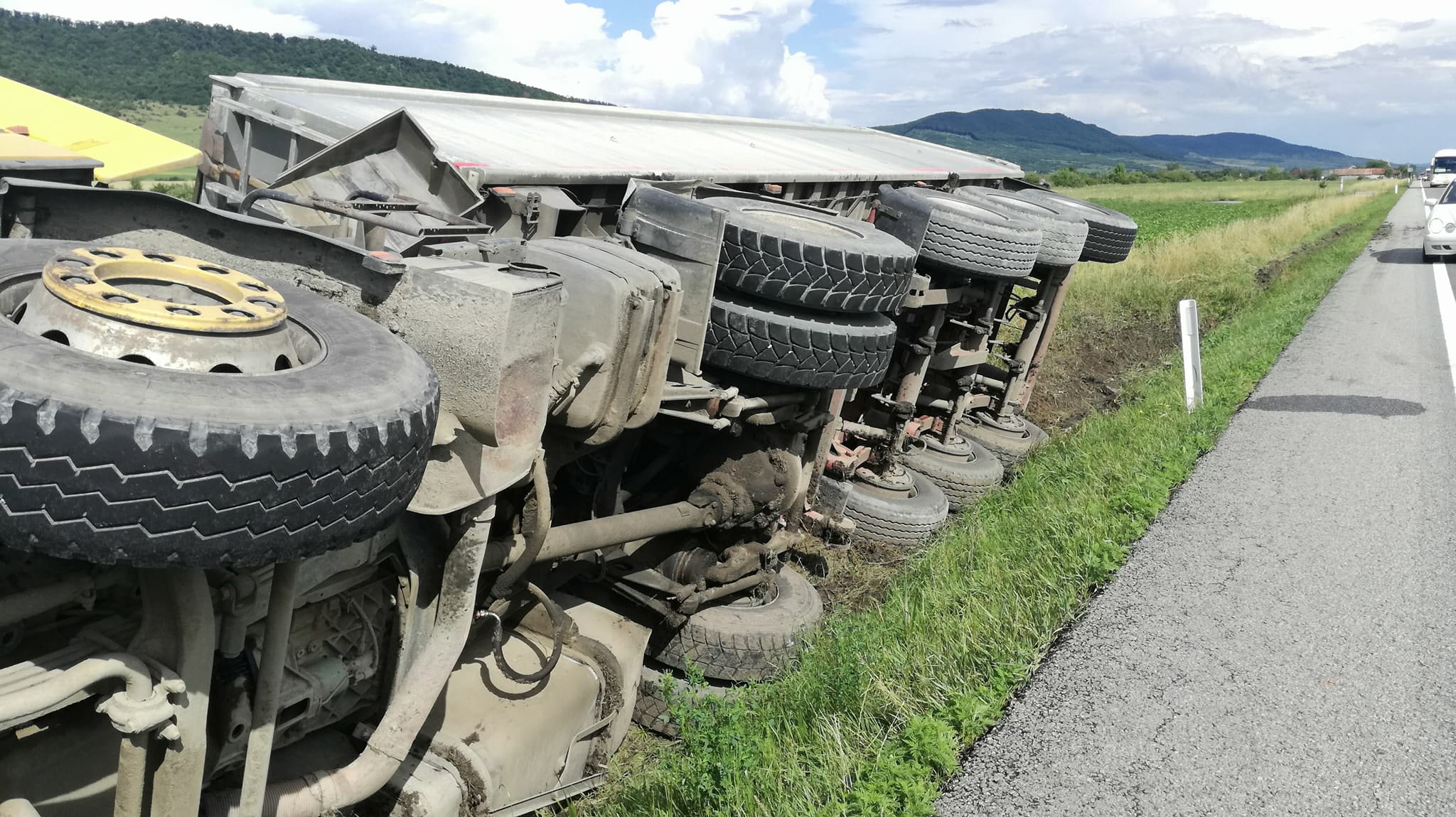 Un autocamion care tocmai descărcase materiale de construcție în Șieu- Măgheruș s-a răsturnat pe DN17, în localitatea Podirei. Autocamionul a ajuns pe o parte, în șanțul de pe marginea drumului.
